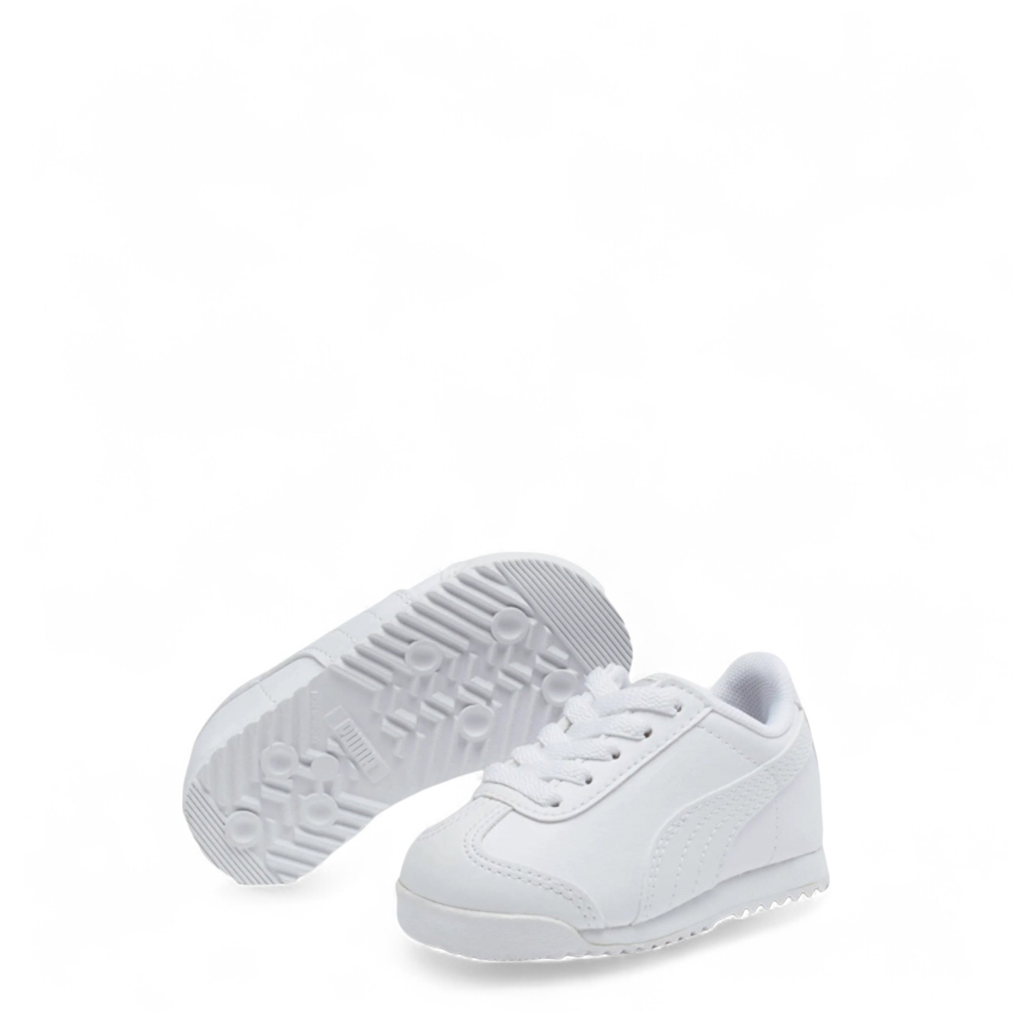 The Roma is the stuff of PUMA Archive legend with its sport-turned-street style. The original, which debuted in 1968, was geared for sprints, hurdles, and sweatbands with its padded nylon-suede styling and knack for collecting medals. It's reissued here, in all its glory (less the tube socks) and is fully equipped with a padded tongue and arch support. Done in a durable allover synthetic leather, this one is sized down for young legends-in-the-making.