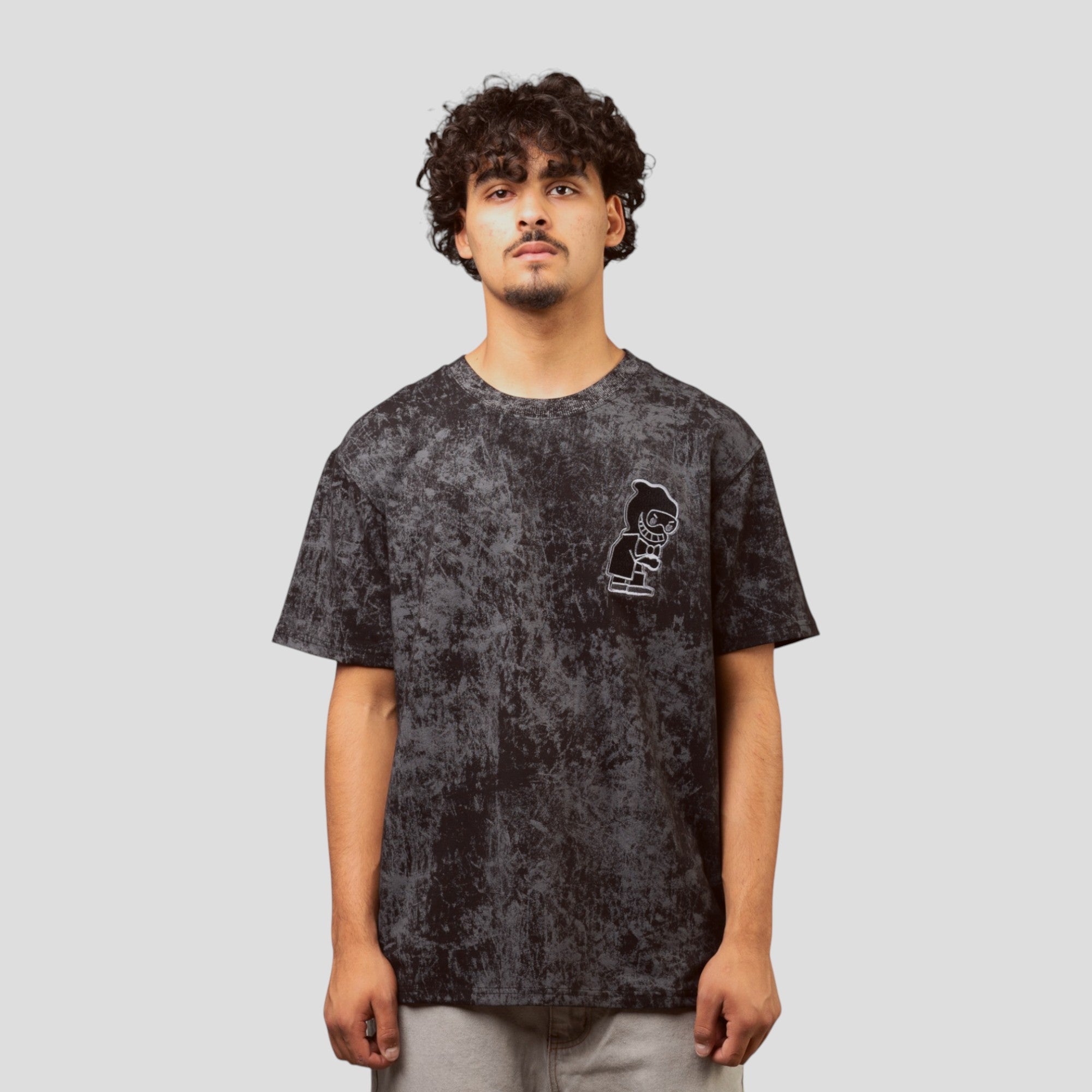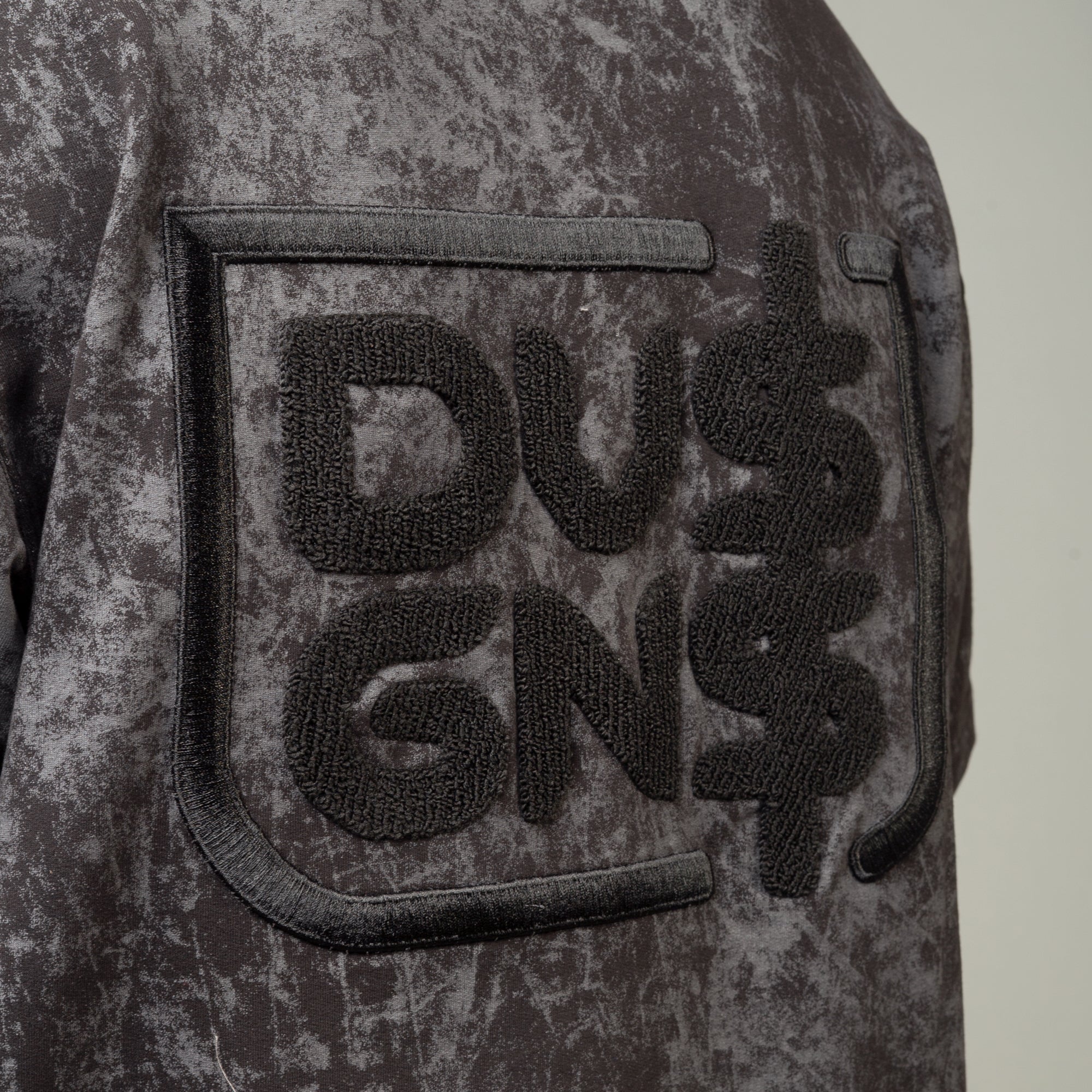 The front features a detailed embroidered DG character logo, offering personality and premium craftsmanship. The back showcases a bold chenille and embroidered logo, adding standout texture and unmistakable DG branding. The washed black finish gives the shirt a rugged, vintage-inspired vibe perfect for pairing with cargos, denim, or sweats.