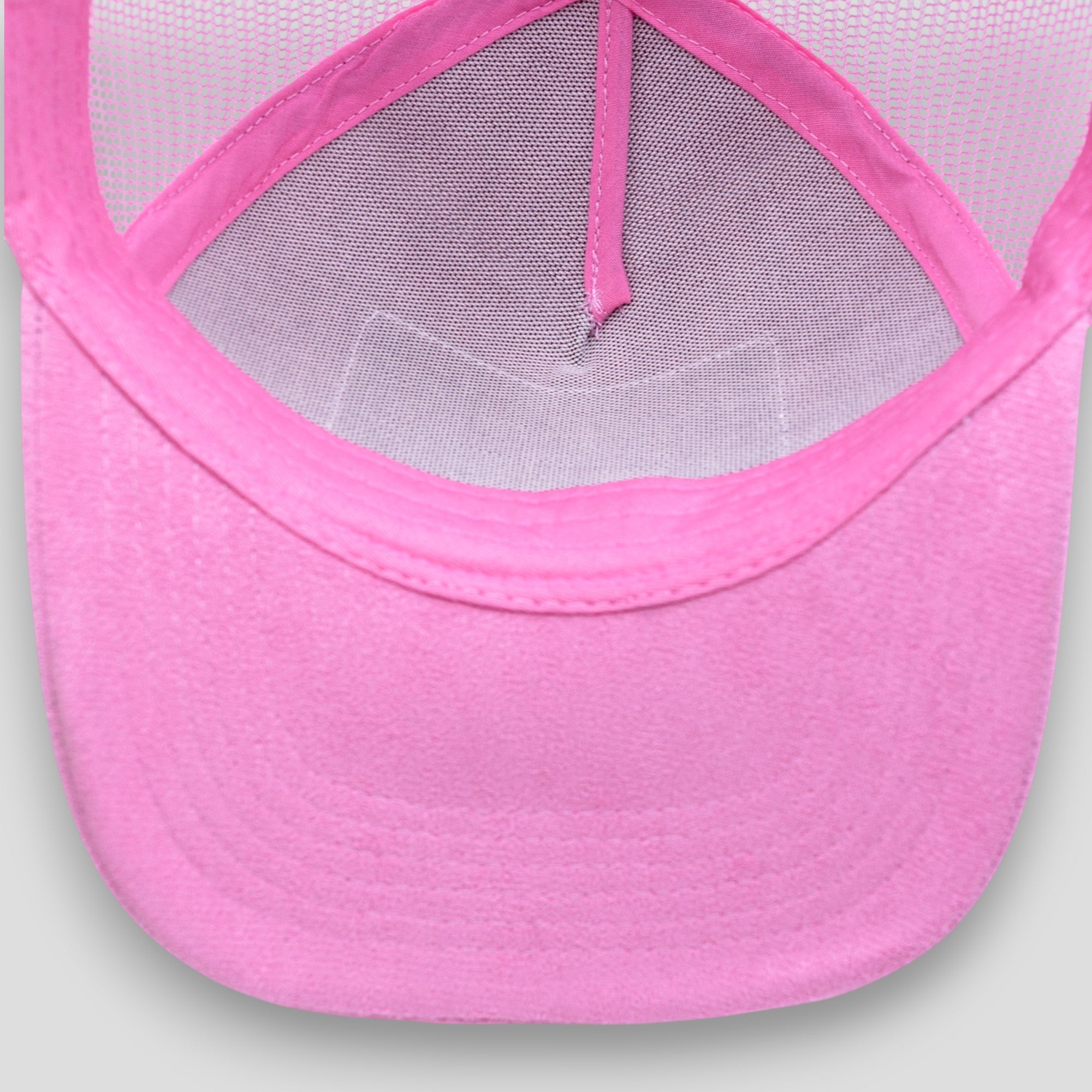 Devious Genius Patch Logo Trucker Hat — Pink Suede