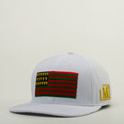 On June 19th, 1865 the last slaves in the state of Texas were declared free. This unique flat brim cap pays homage to the historic and impactful day with imagery inspired by its significance. This tribute features an embroidered flag with nineteen gold fists and six red and green stripes. On the left side there is the iconic embroidered Maison de Bouchard "M" logo as well as "Maison de Bouchard" embroidered on the back.