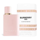 - Burberry Her Elixir de Parfum: a bold and sensual fragrance for women. Moving beyond the adventurous spirit of the Burberry Her Eau de Parfum, the scent is the latest chapter in the intensifying story of Burberry Her. Designed for women who dare to explore the unknown, the Elixir is for the free-spirited woman seeking the excitement of her next adventure. Sensual, irresistible and not held back by boundaries, she possesses an addictive persona.