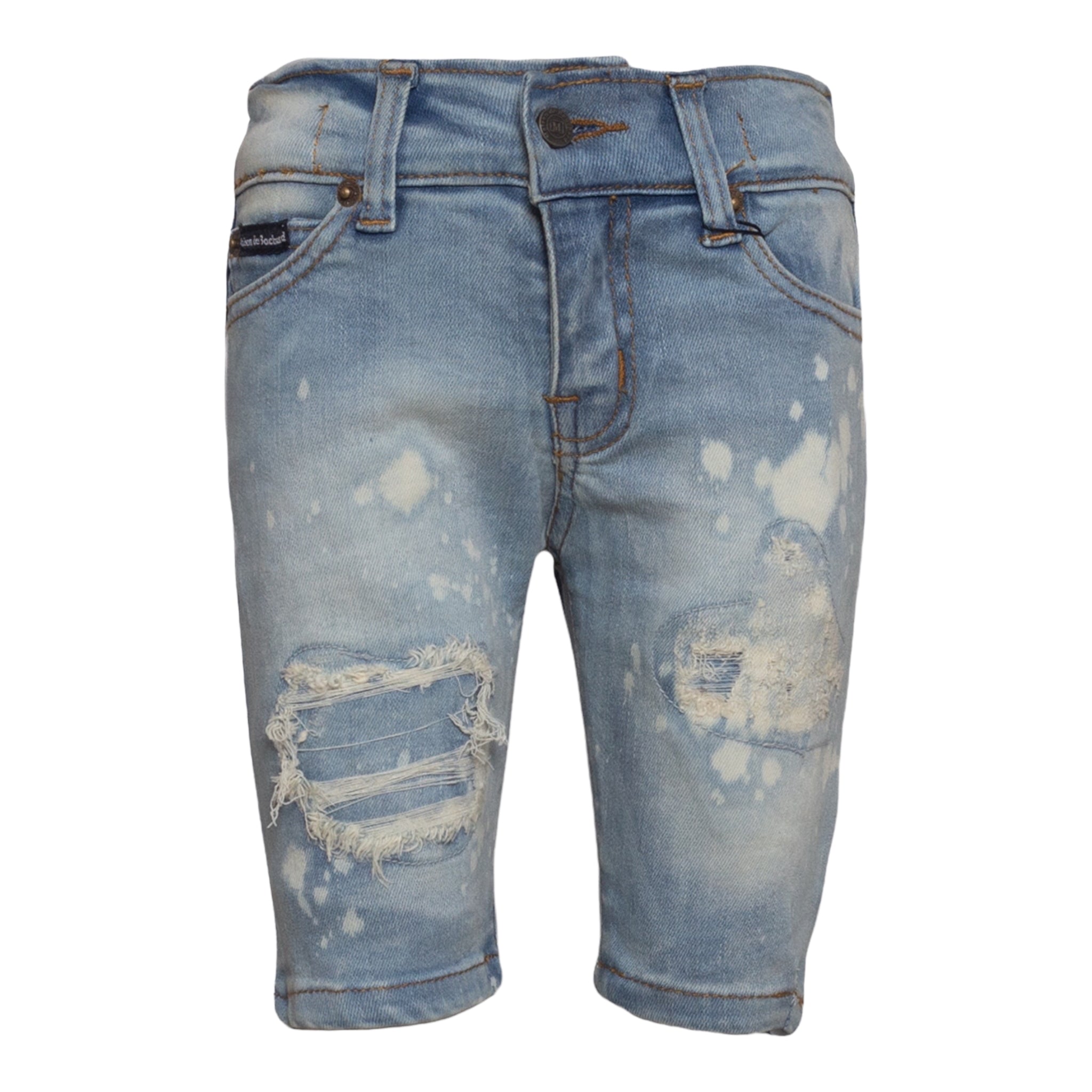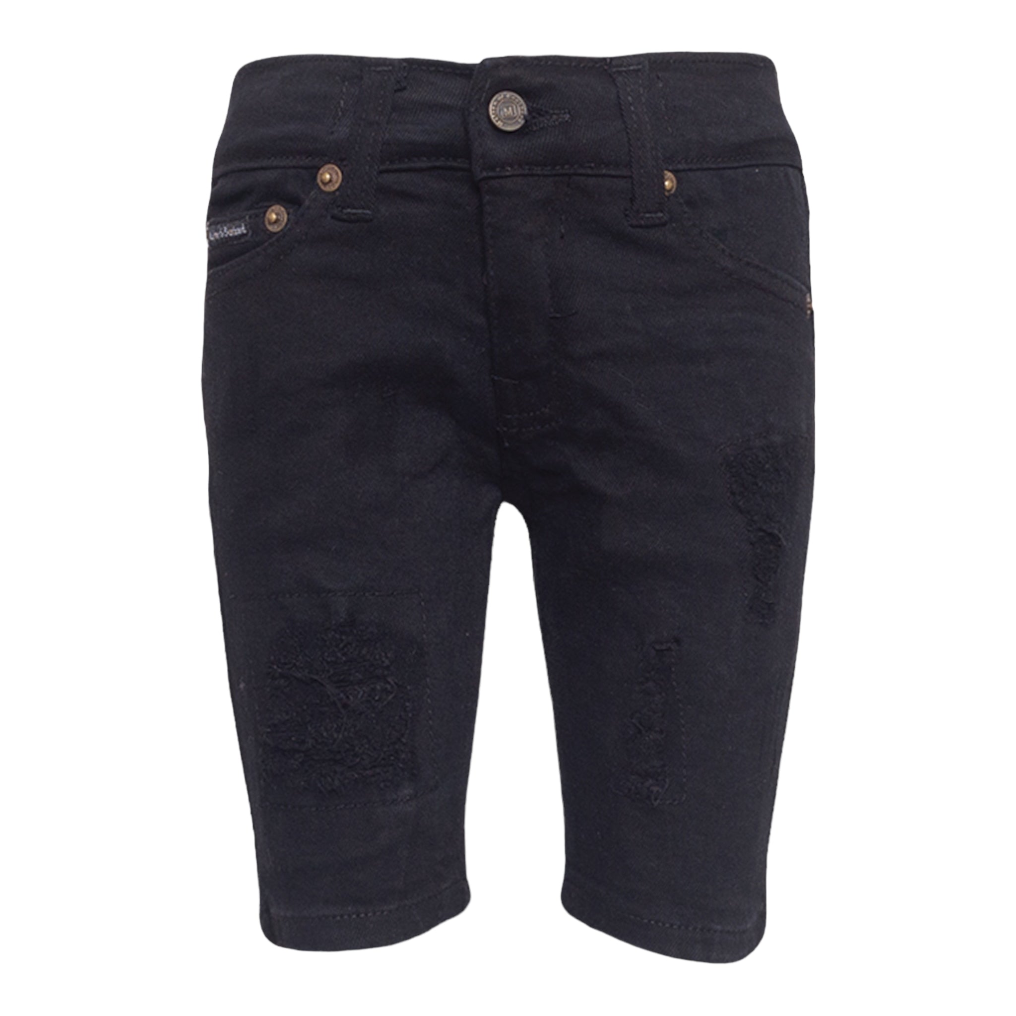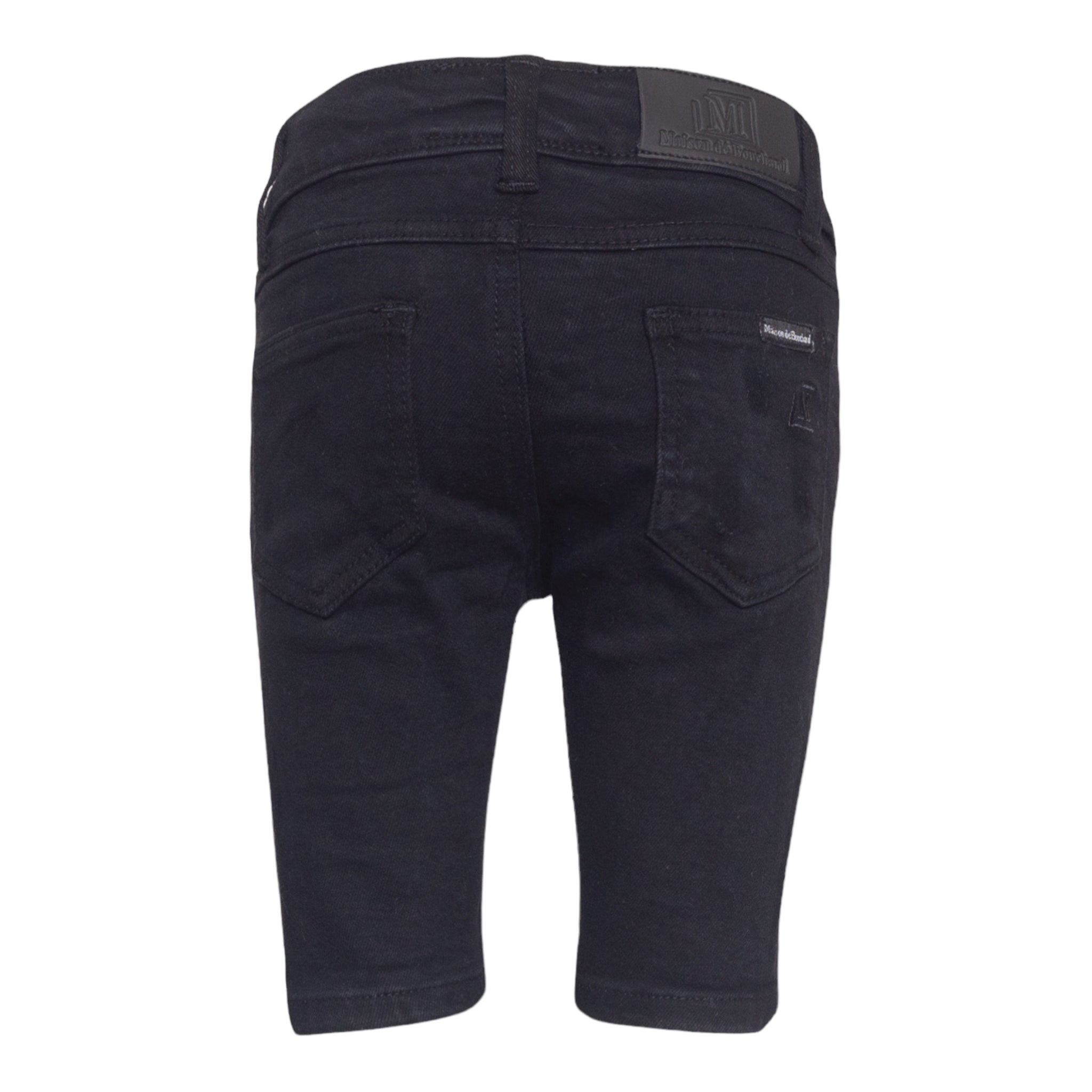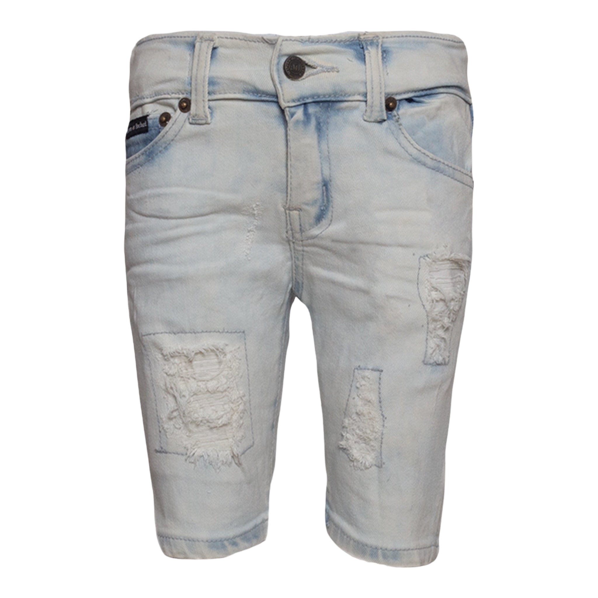 New Denim Shorts by MDB Brand, for kids! Stylish and trendy, these denim shorts each feature tasteful rips as well as interesting patterns. The MDB logo can be found embroidered on the back left pocket.