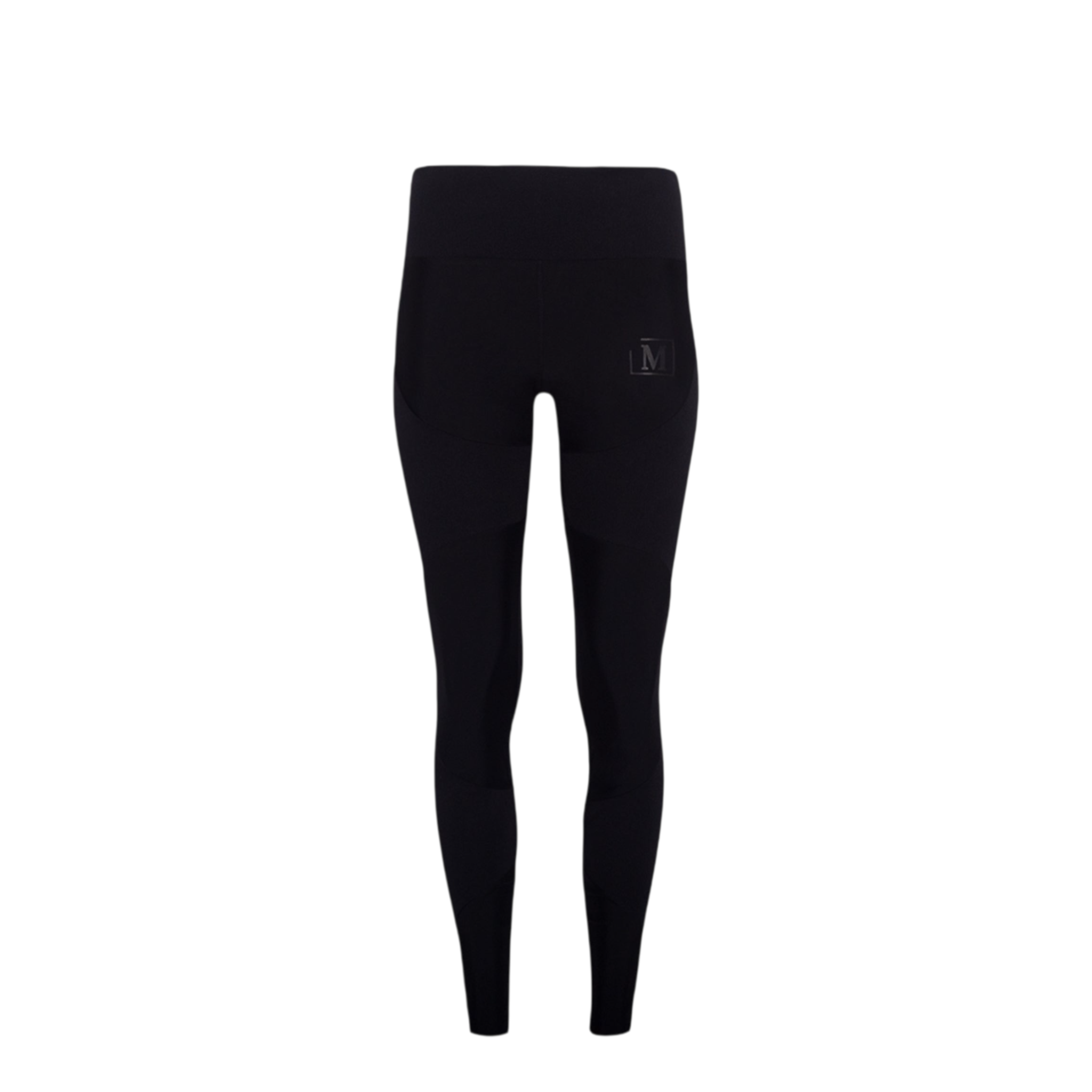 Classic leggings featuring a panel design and the Maison de Bouchard classic M logo printed on the left thigh. Available in various colors.