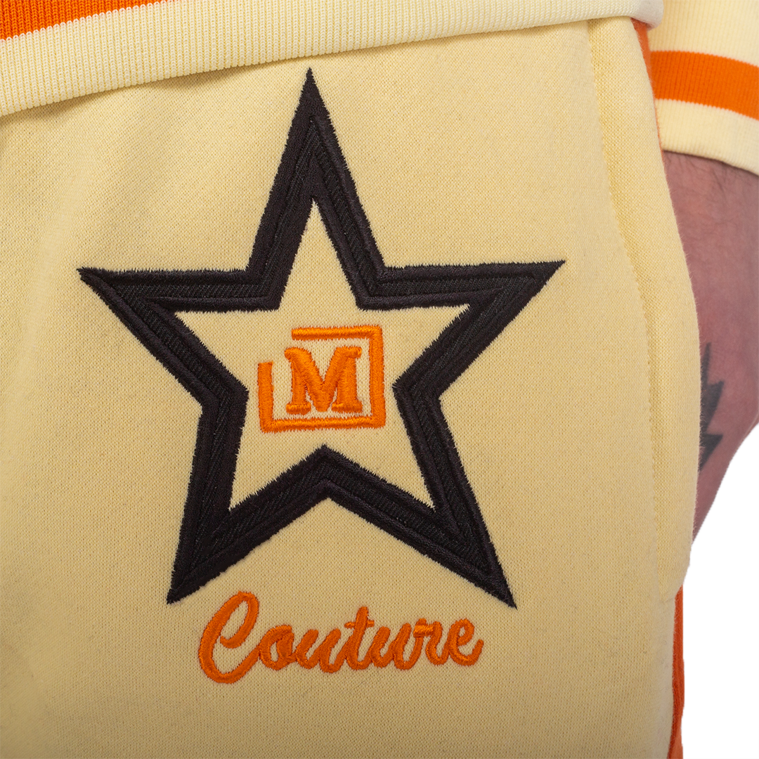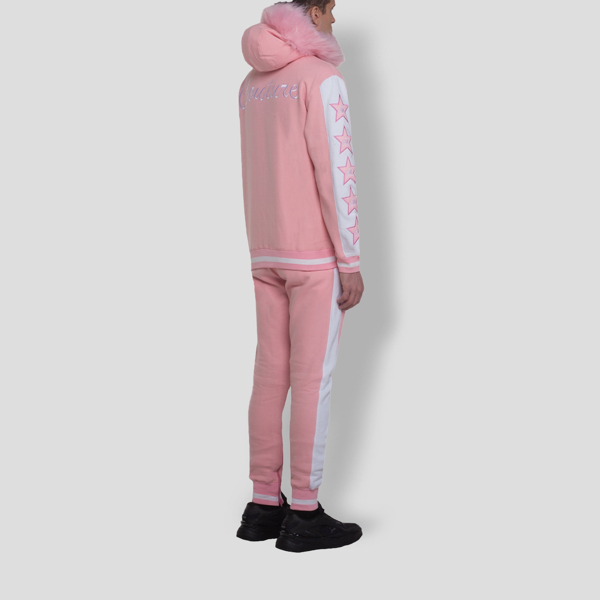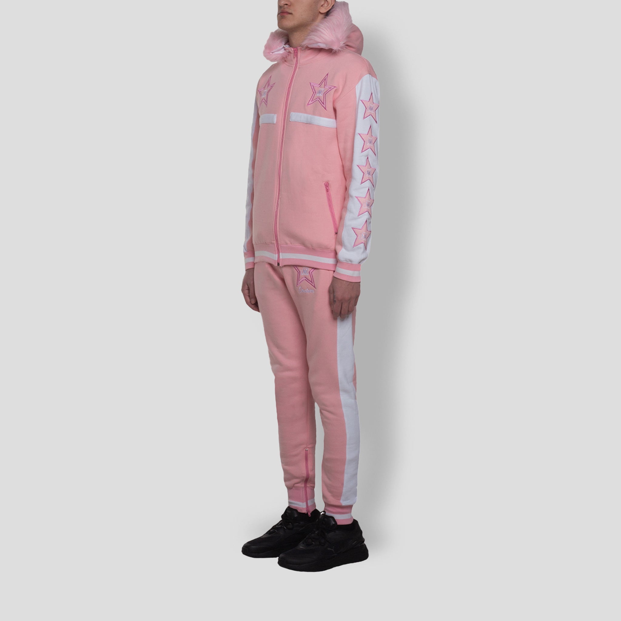 The MDB Couture M-Star Fleece Suit combines comfort and style.  Made with a soft cotton fleece, it features a removable fur trim around the hood with embroidered stars on the front chest as well as on the pant.  With many color combinations to choose from, the MDB Couture M-Star Fleece Suit is a must-have for the season!