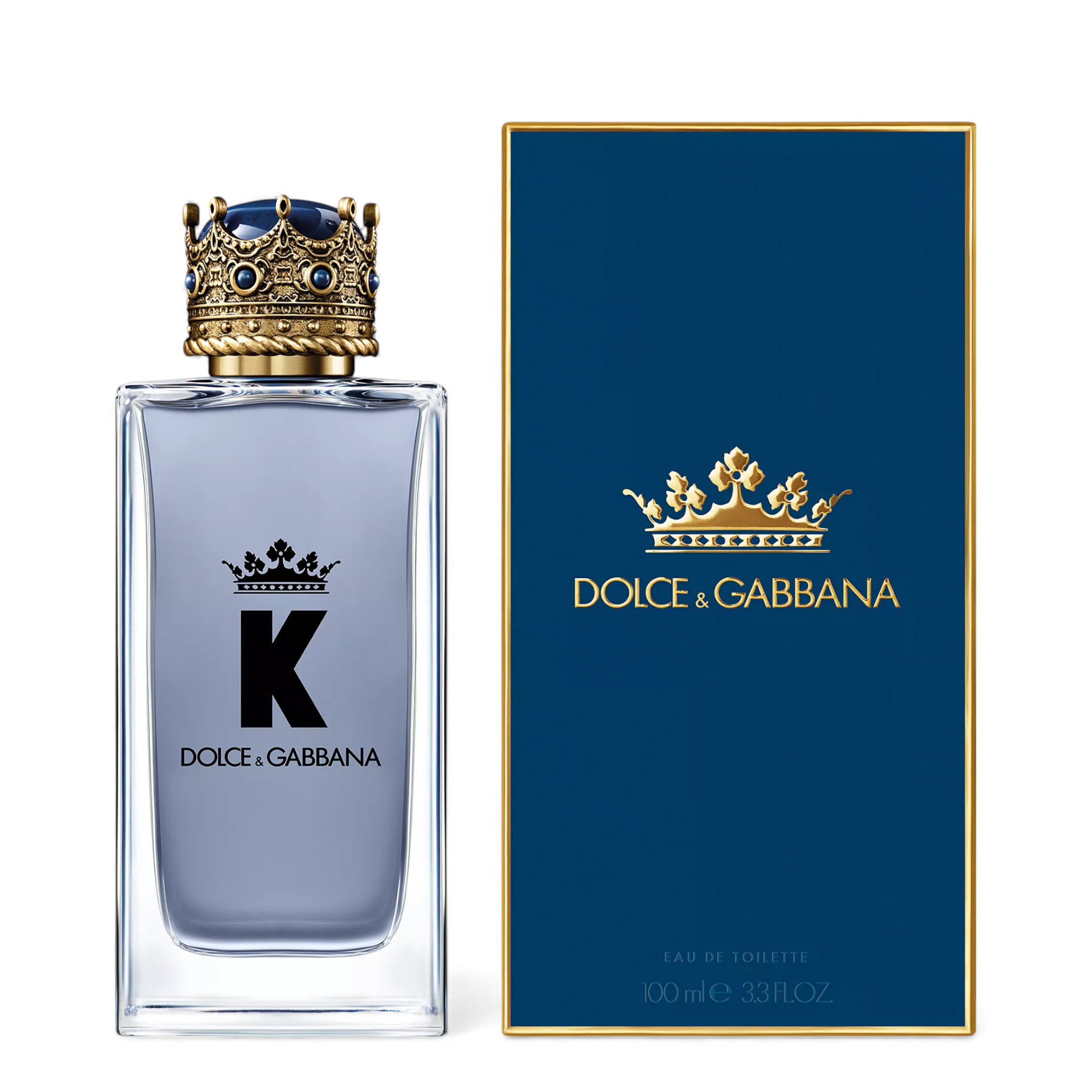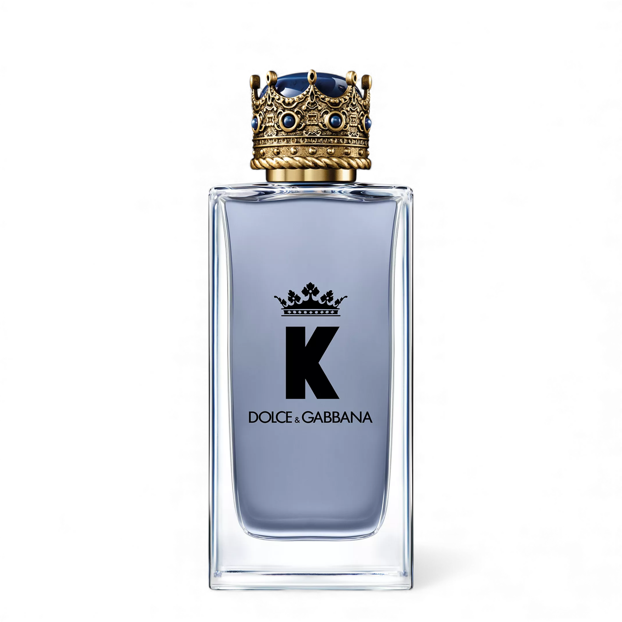 The geometric shape of the flacon of K by Dolce & Gabbana Eau de Toilette is embellished on top with a crown. Coated with 24-carat gold pigments, the cap is decorated with a blue lapis lazuli dome, using a process that recreates the natural marbling of the stone, making each piece unique.