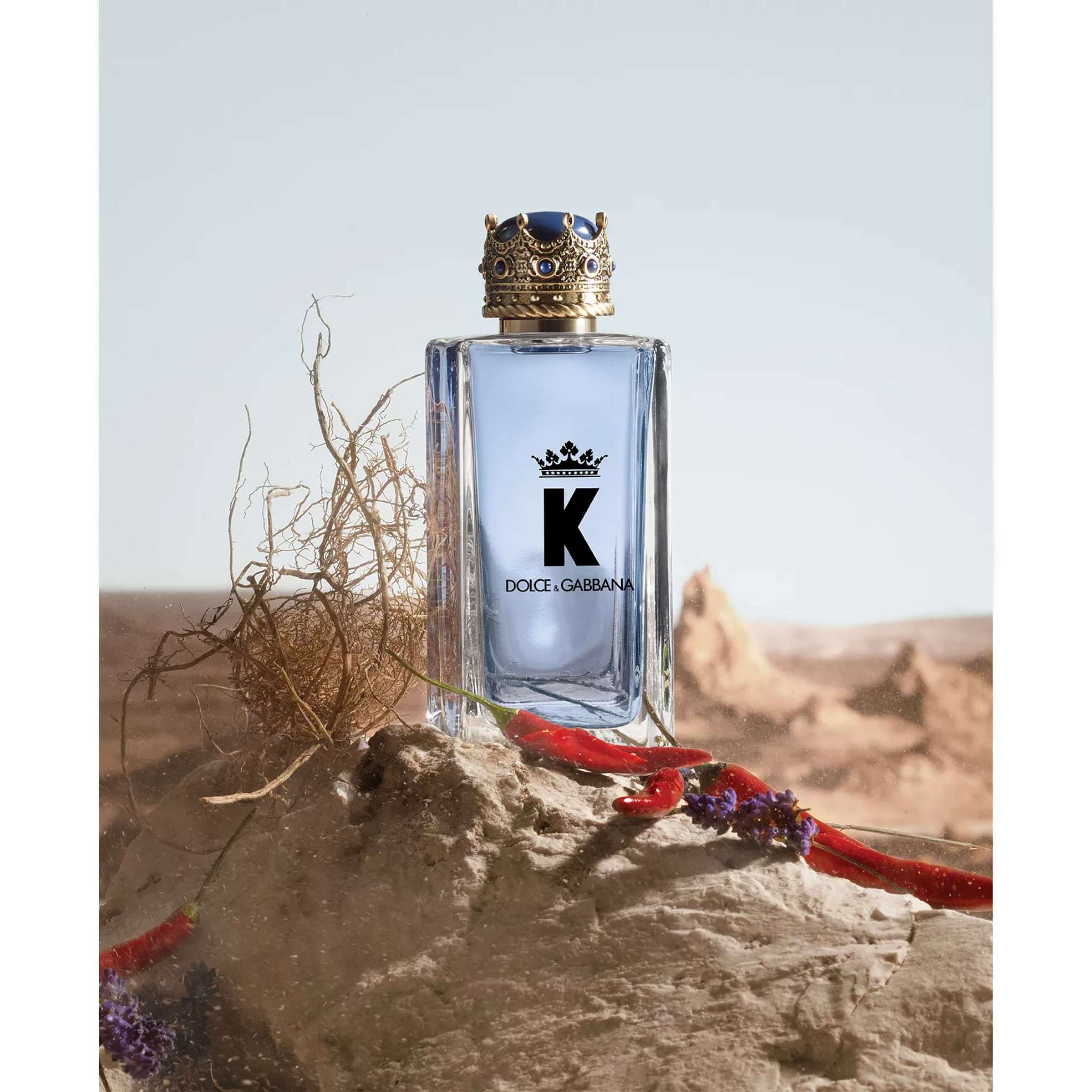 In the heart, the unexpected spark of chili pepper and energizing French lavender give K by Dolce&Gabbana Eau de Toilette a sparkling, vivacious character, underscored by the pairing of amber accents of clary sage with geranium.