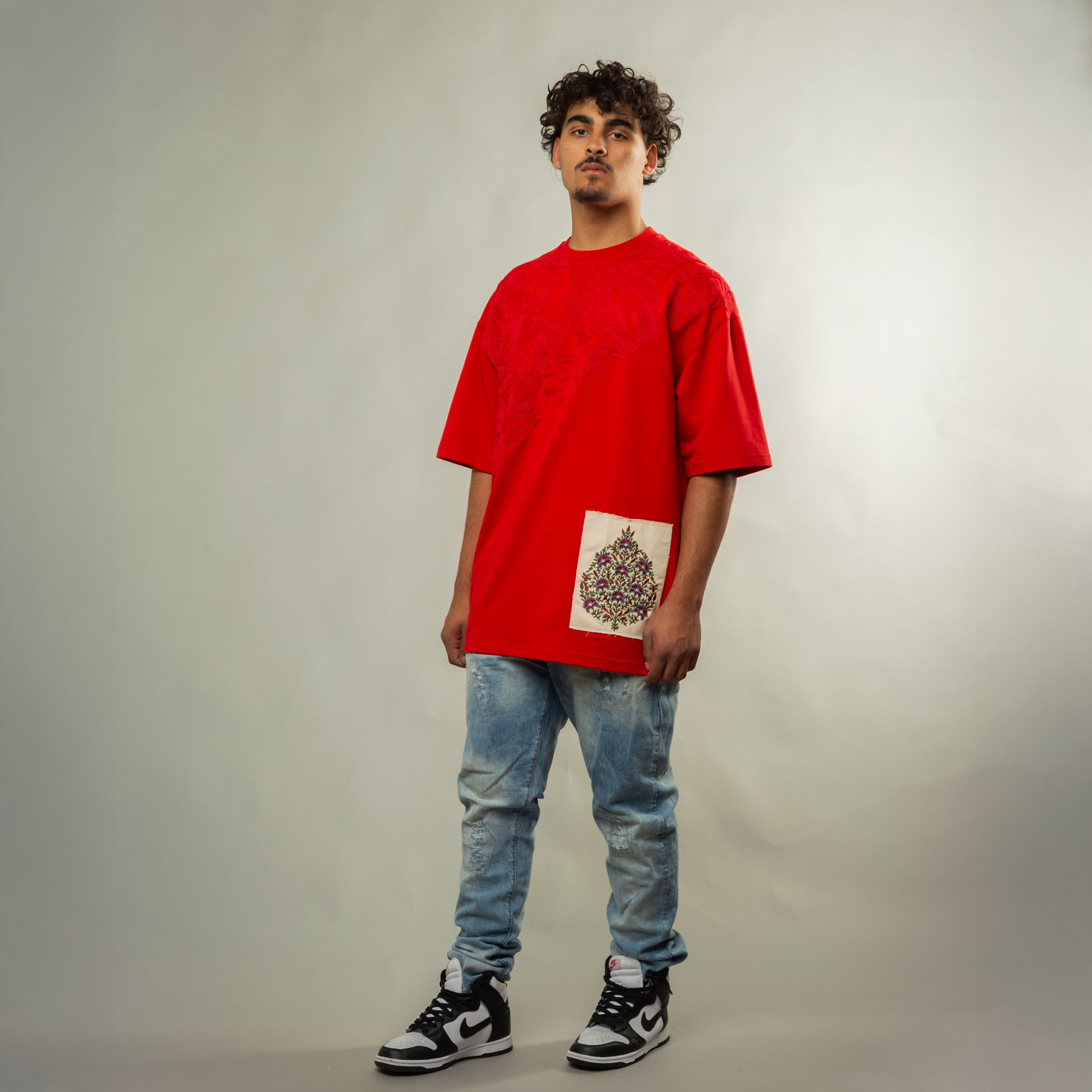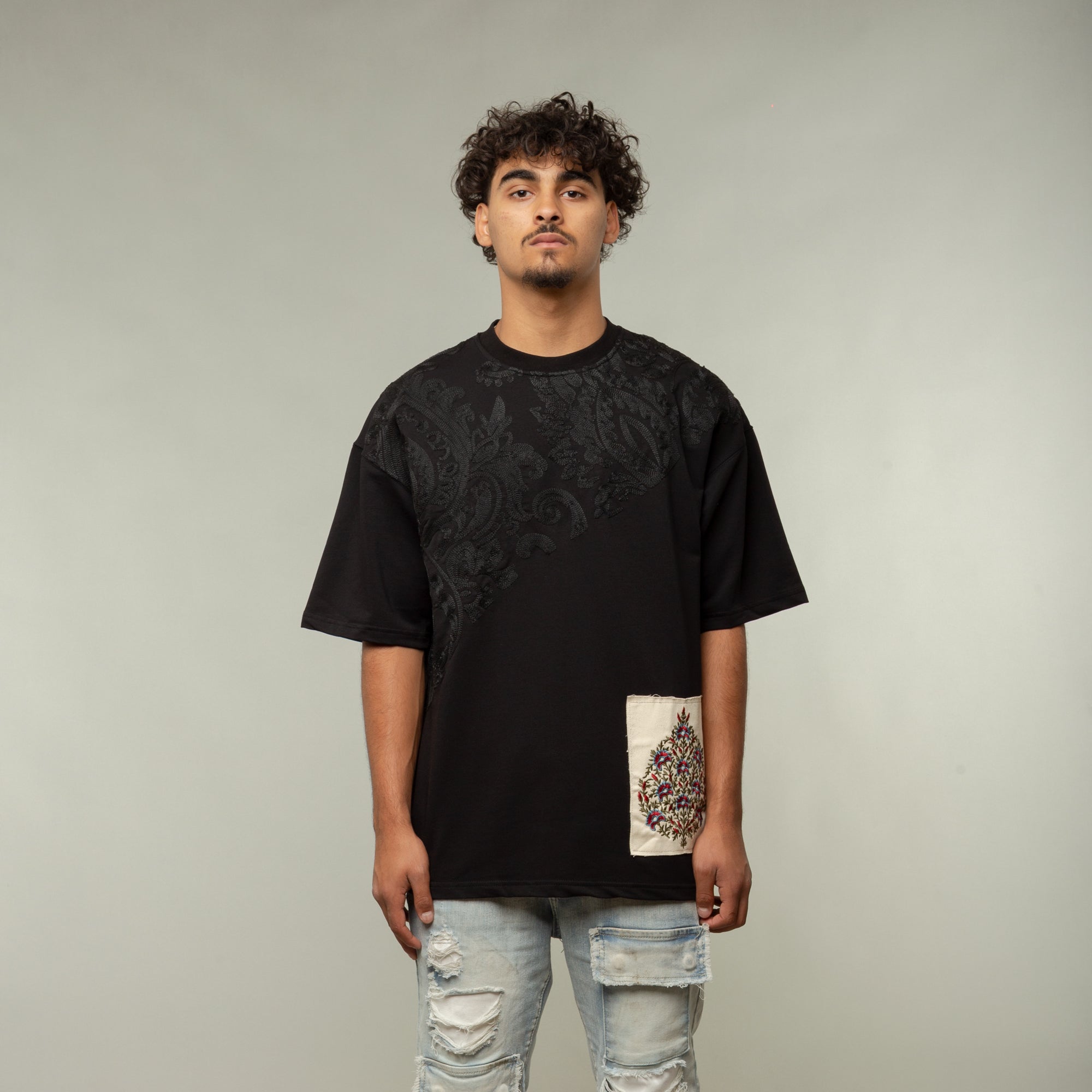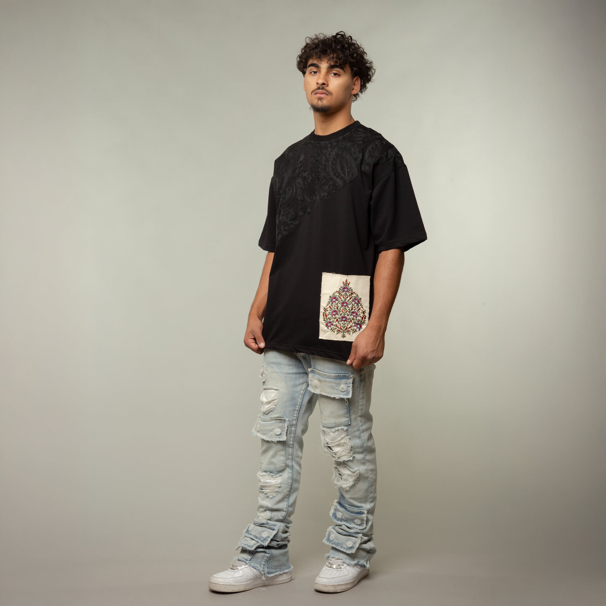 Artistic cut and sew patch on front