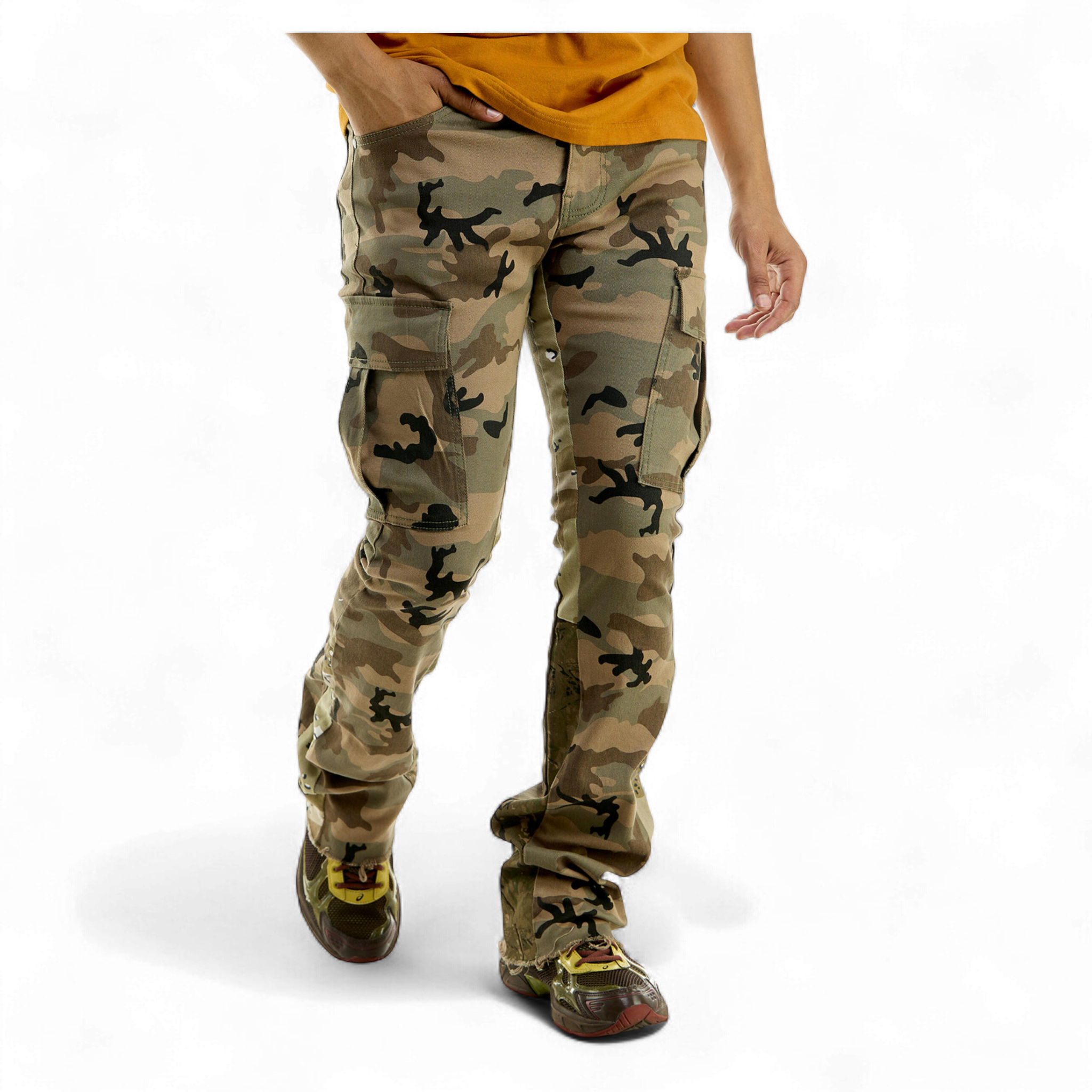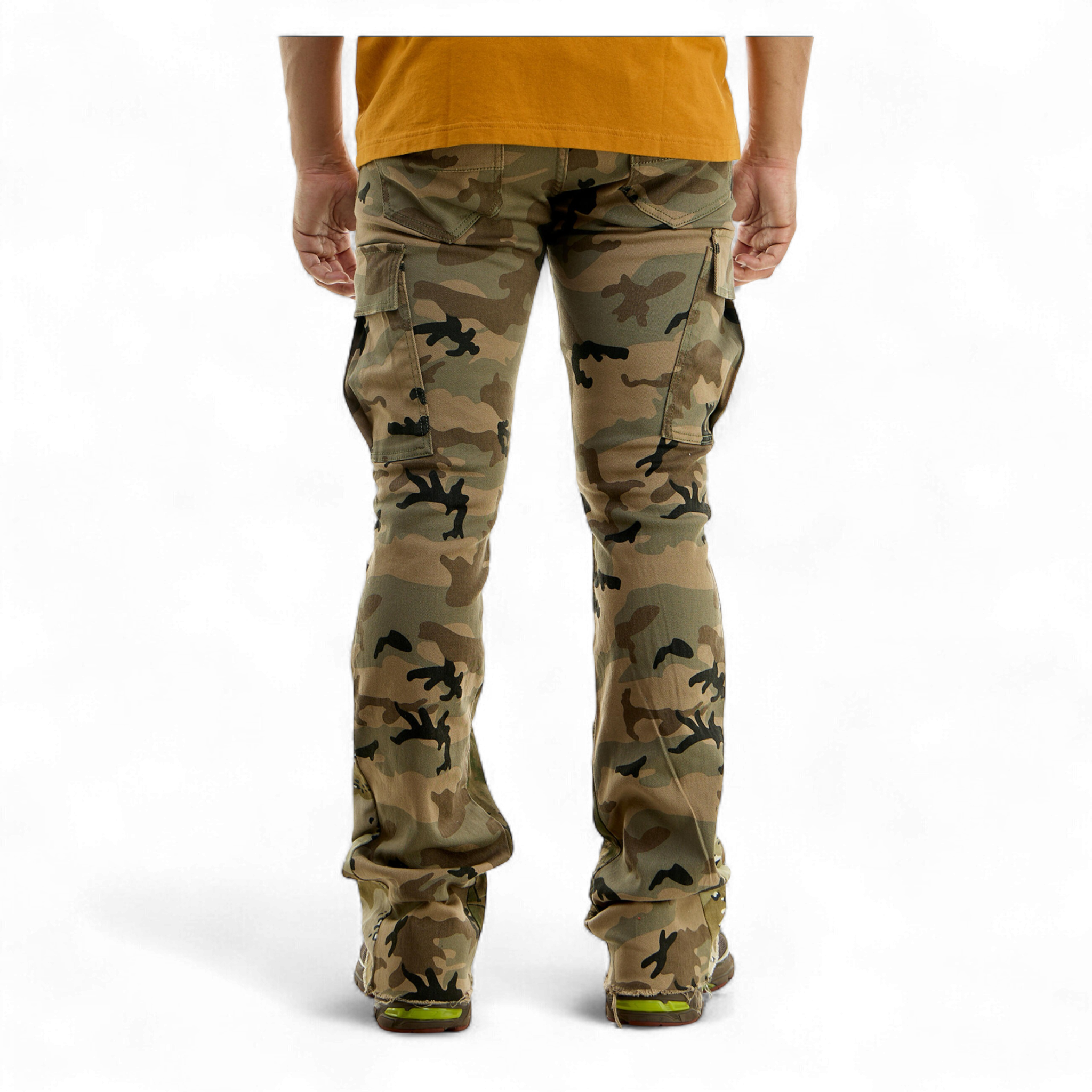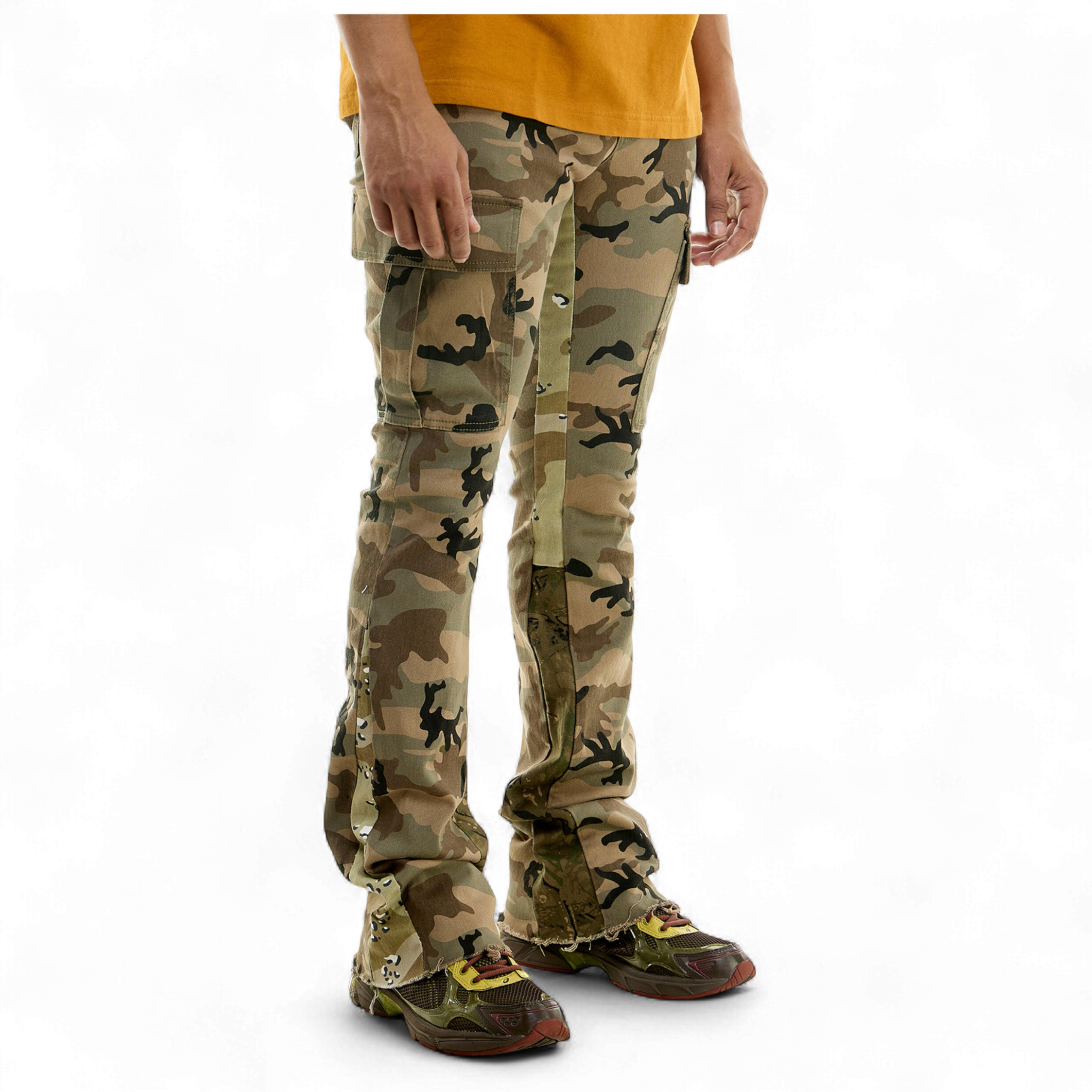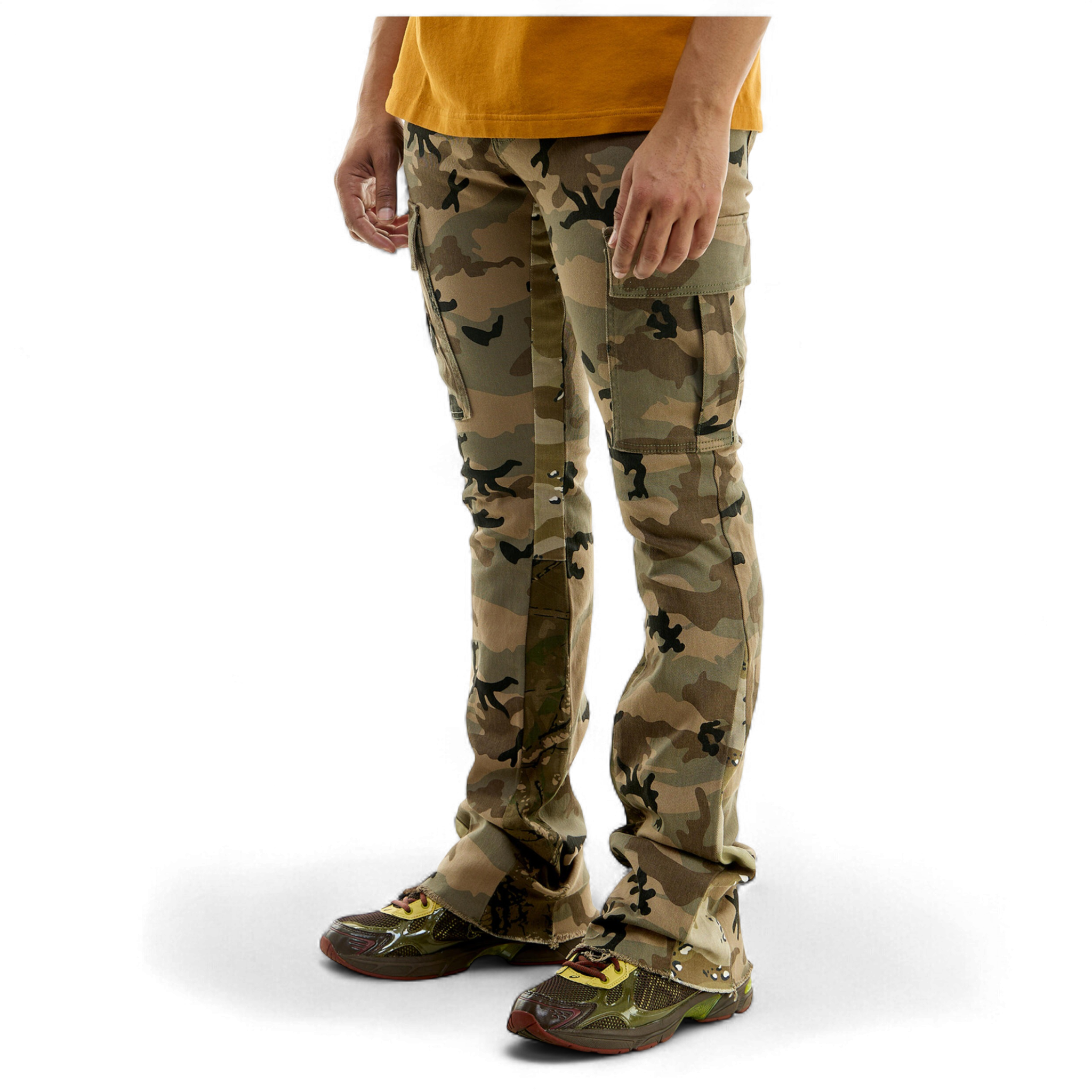 Hidden Treasures Camouflage Cargo Stacked Skinny Flare Pants