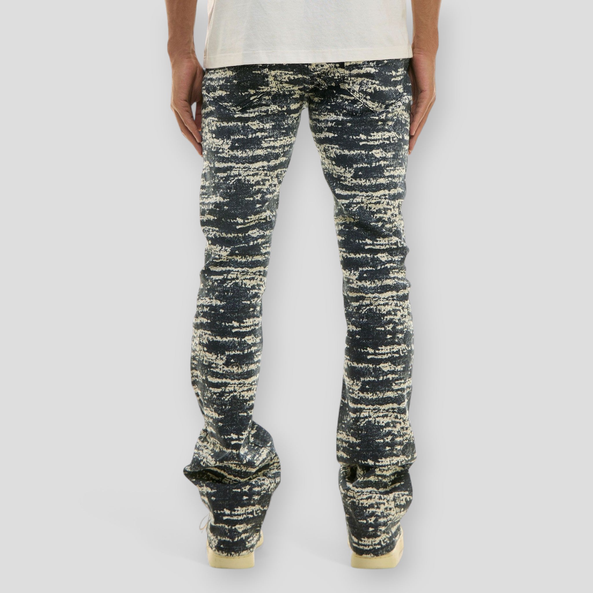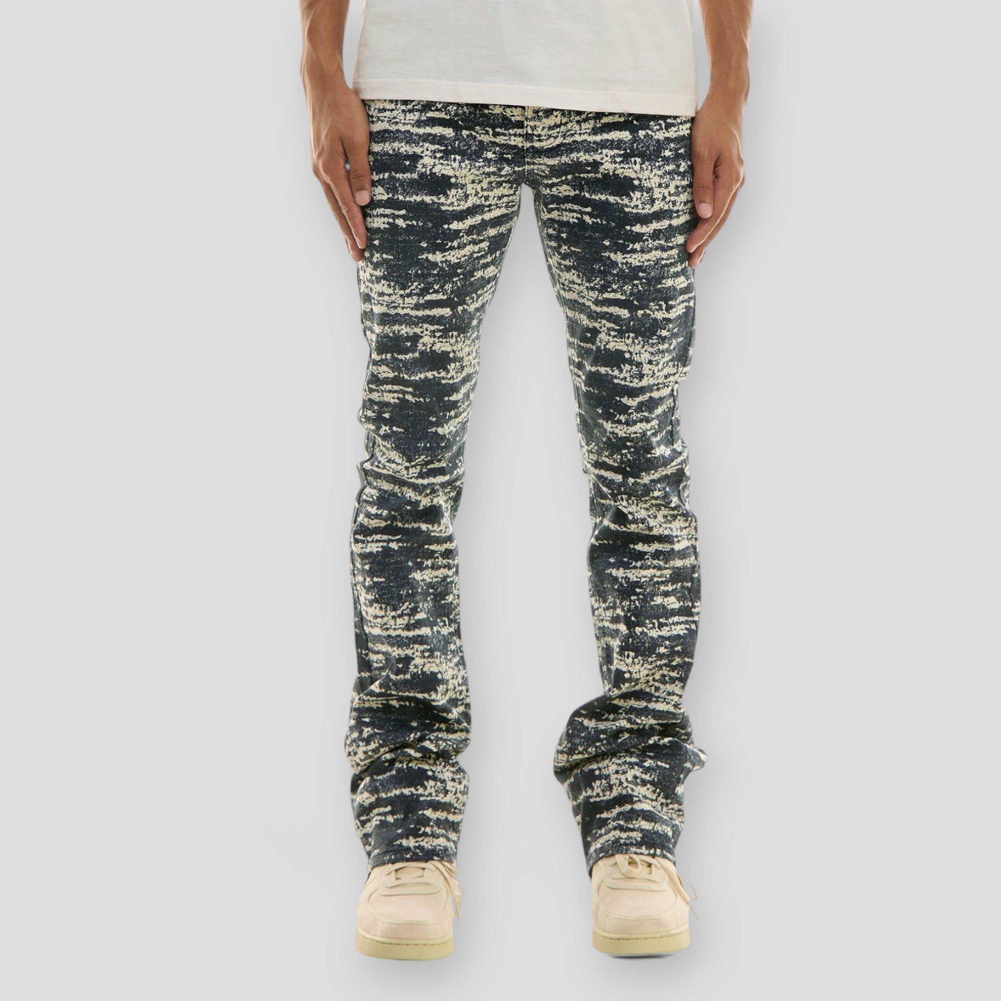 Hidden Treasures Distressed Abstract Stacked Skinny Flare Pants