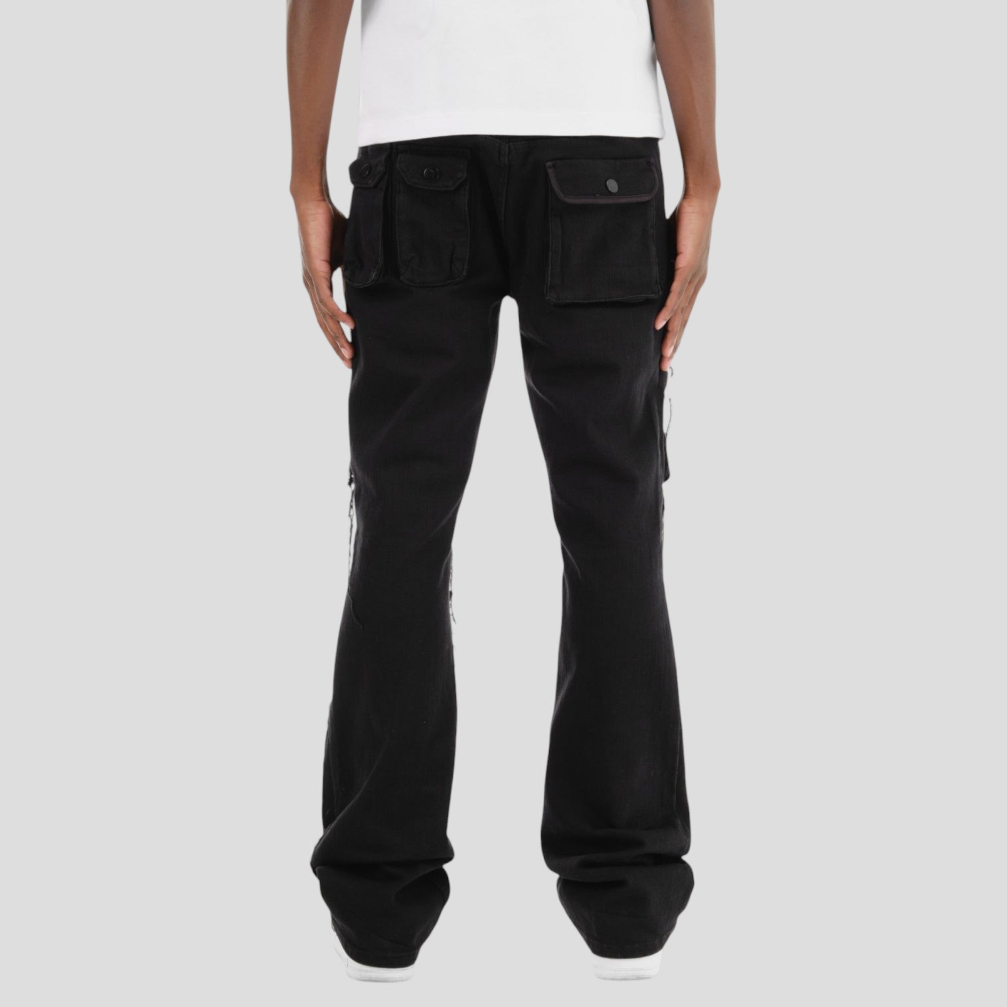 Hidden Treasures Multi-Pocket Cargo Stacked Jeans