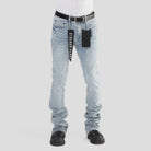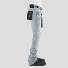 Made from a stretch-infused cotton blend, they contour comfortably through the leg, creating a sleek, fitted look through the thigh and knee. The stacked flare finish delivers that modern elongated streetwear shape, sitting perfectly over sneakers or boots.