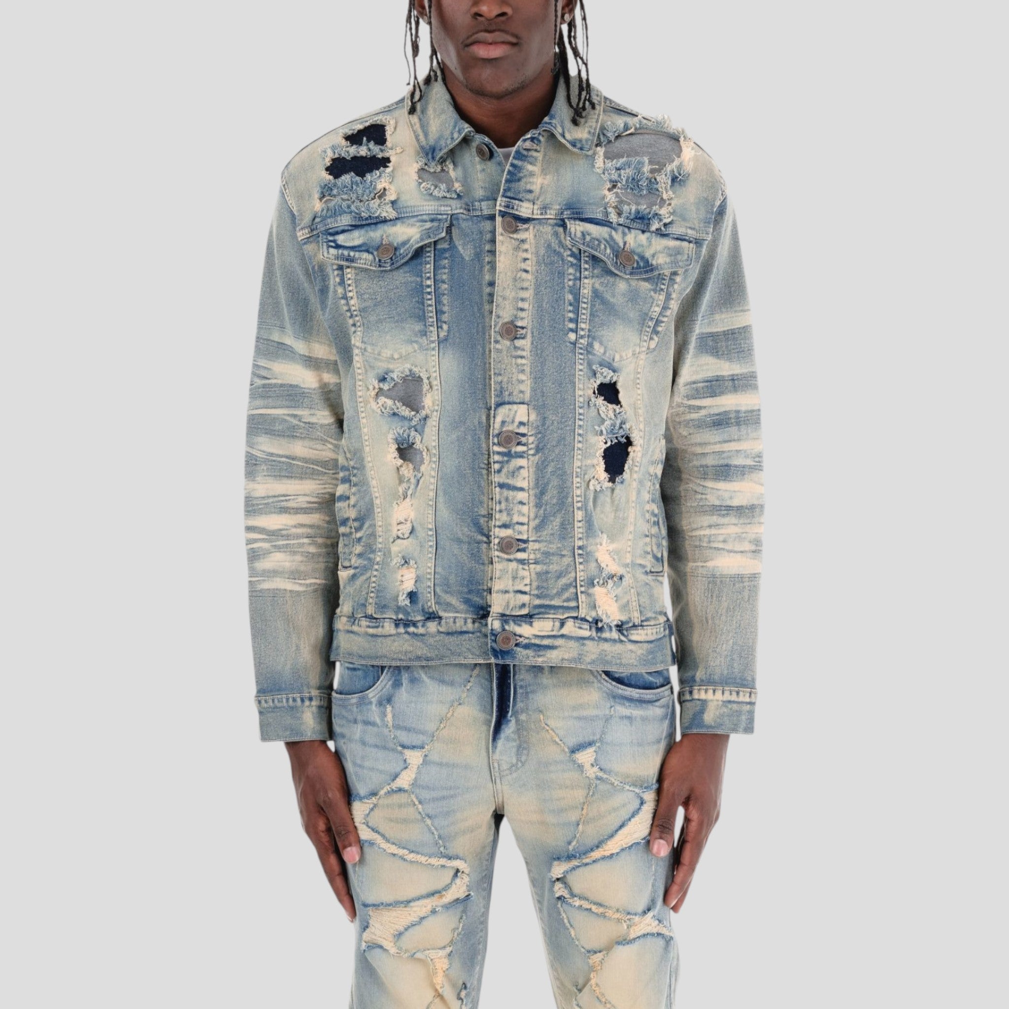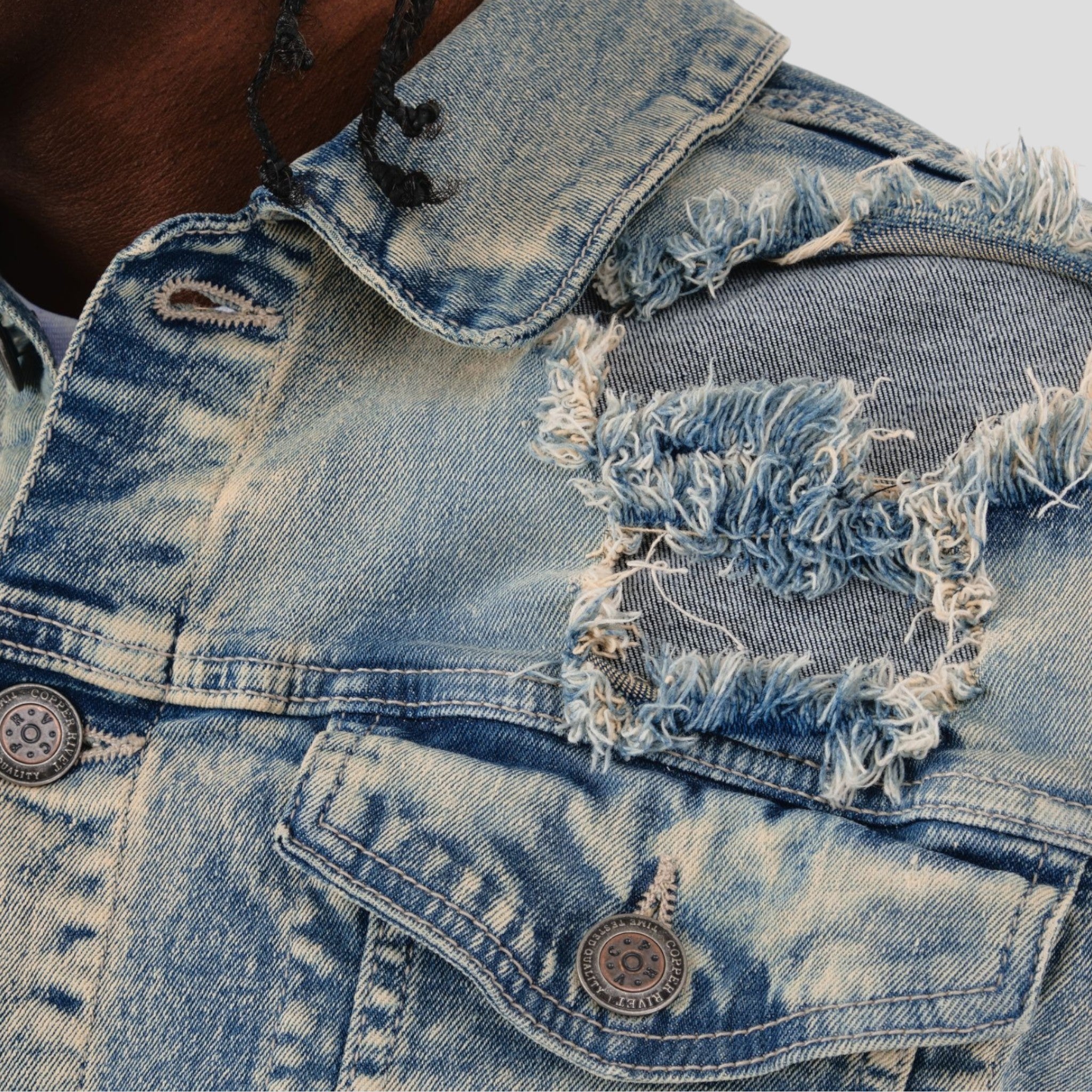 Hidden Treasures “Rip & Repair” Distressed Denim Jacket