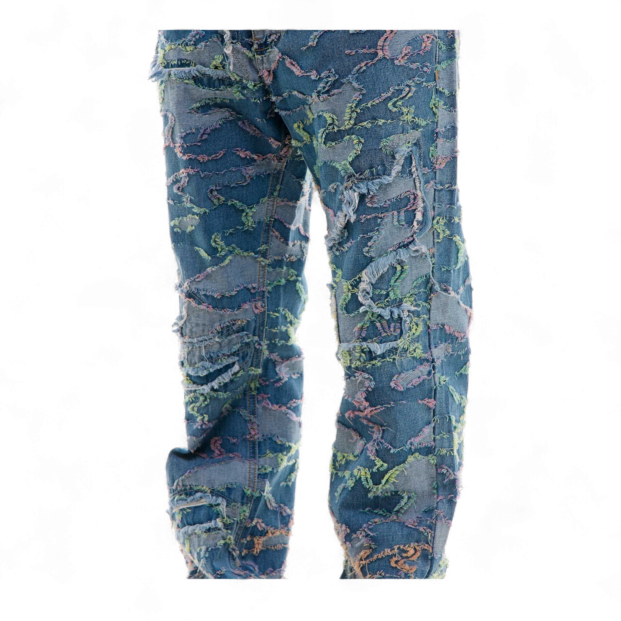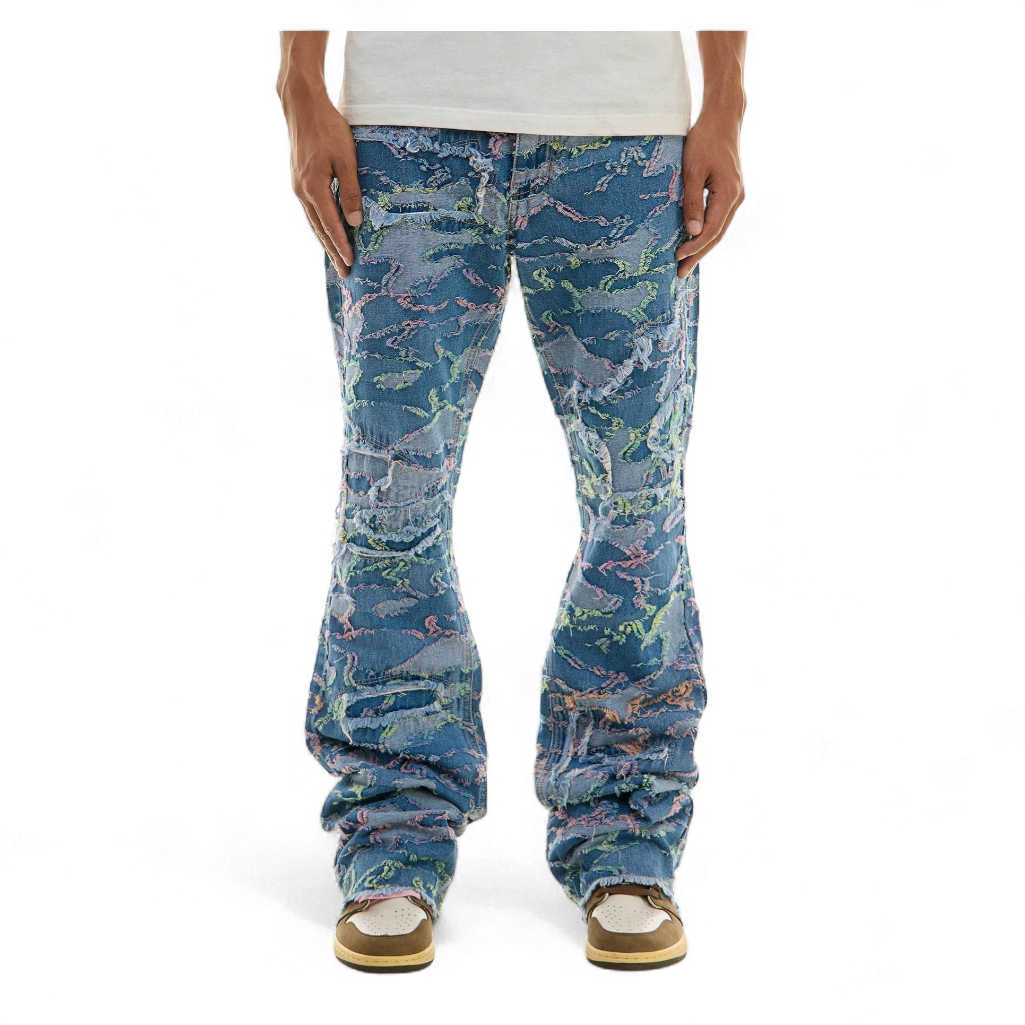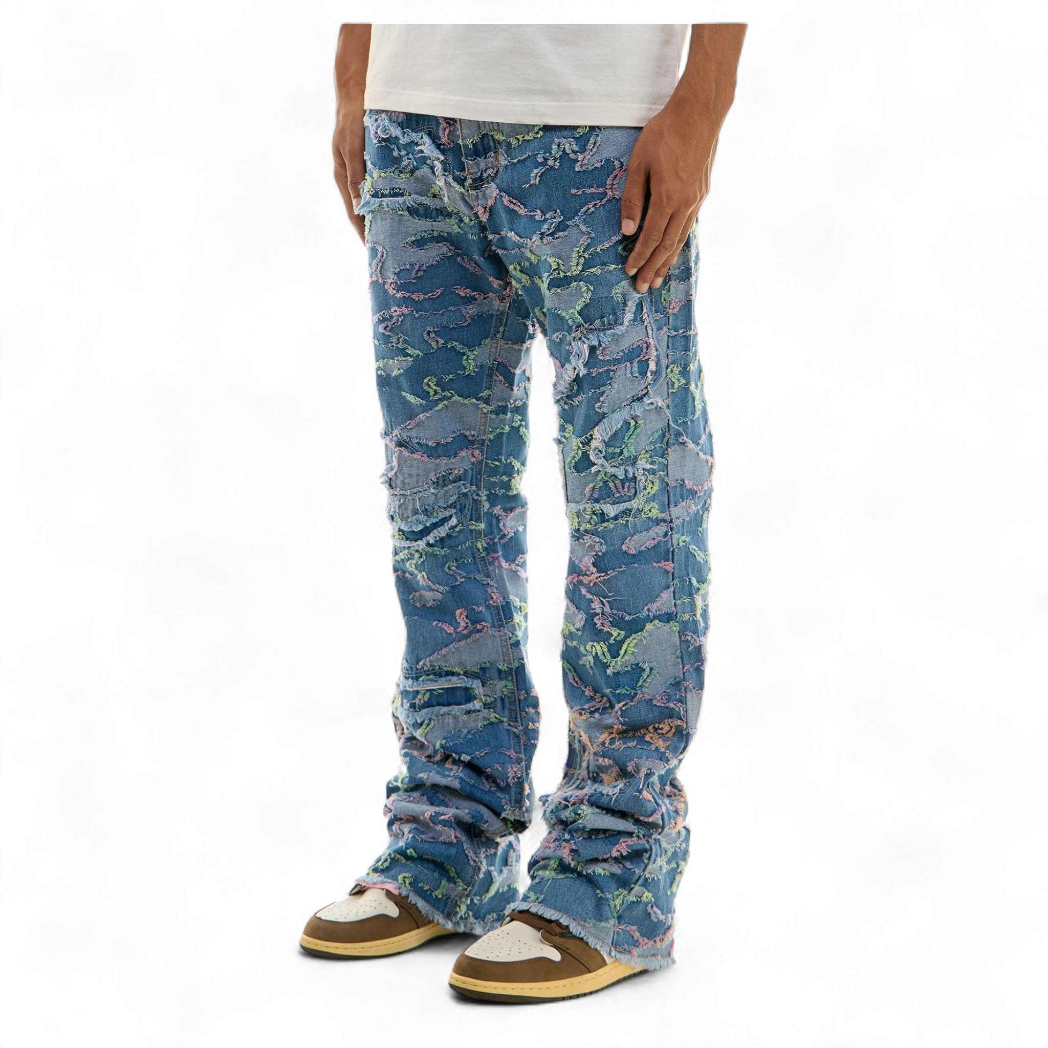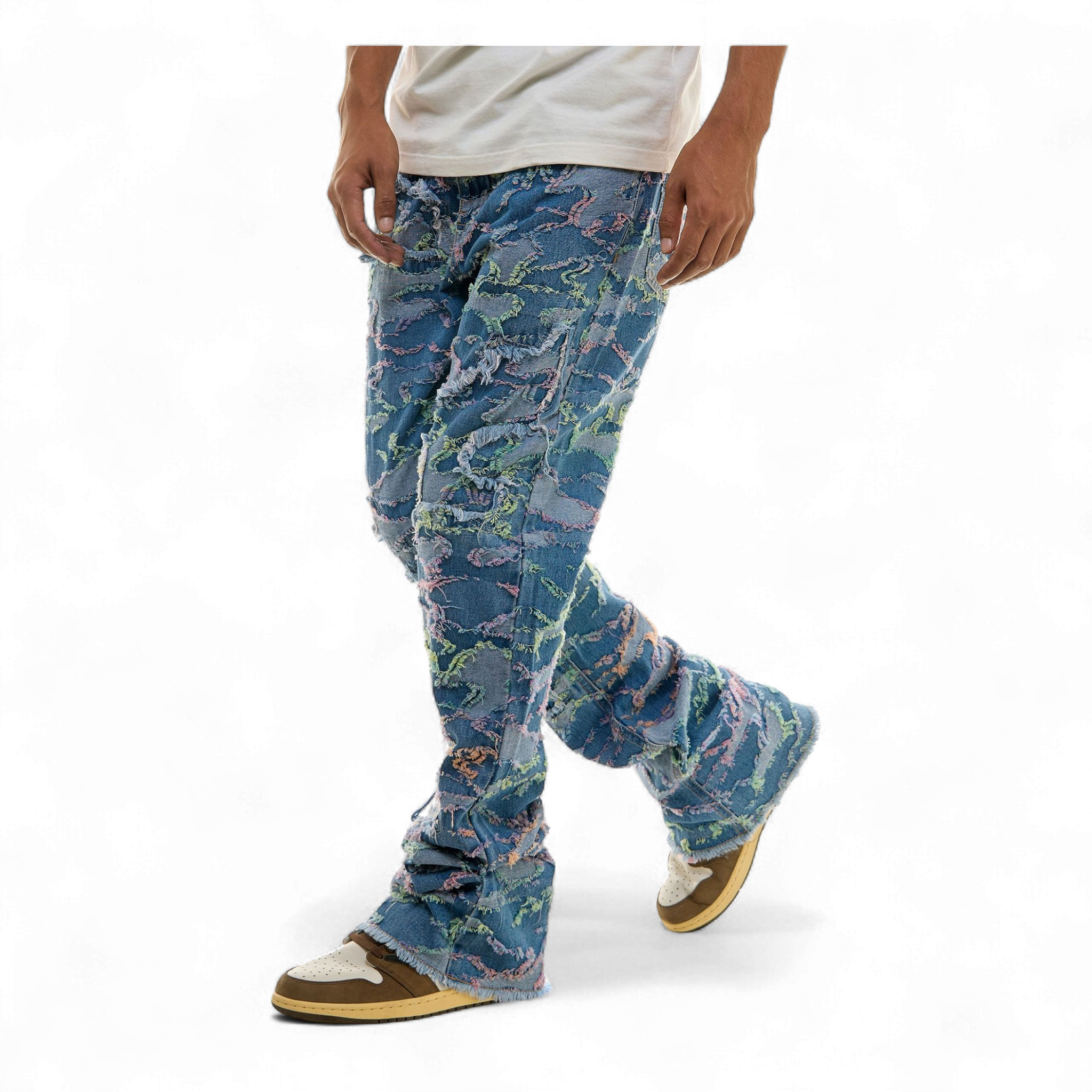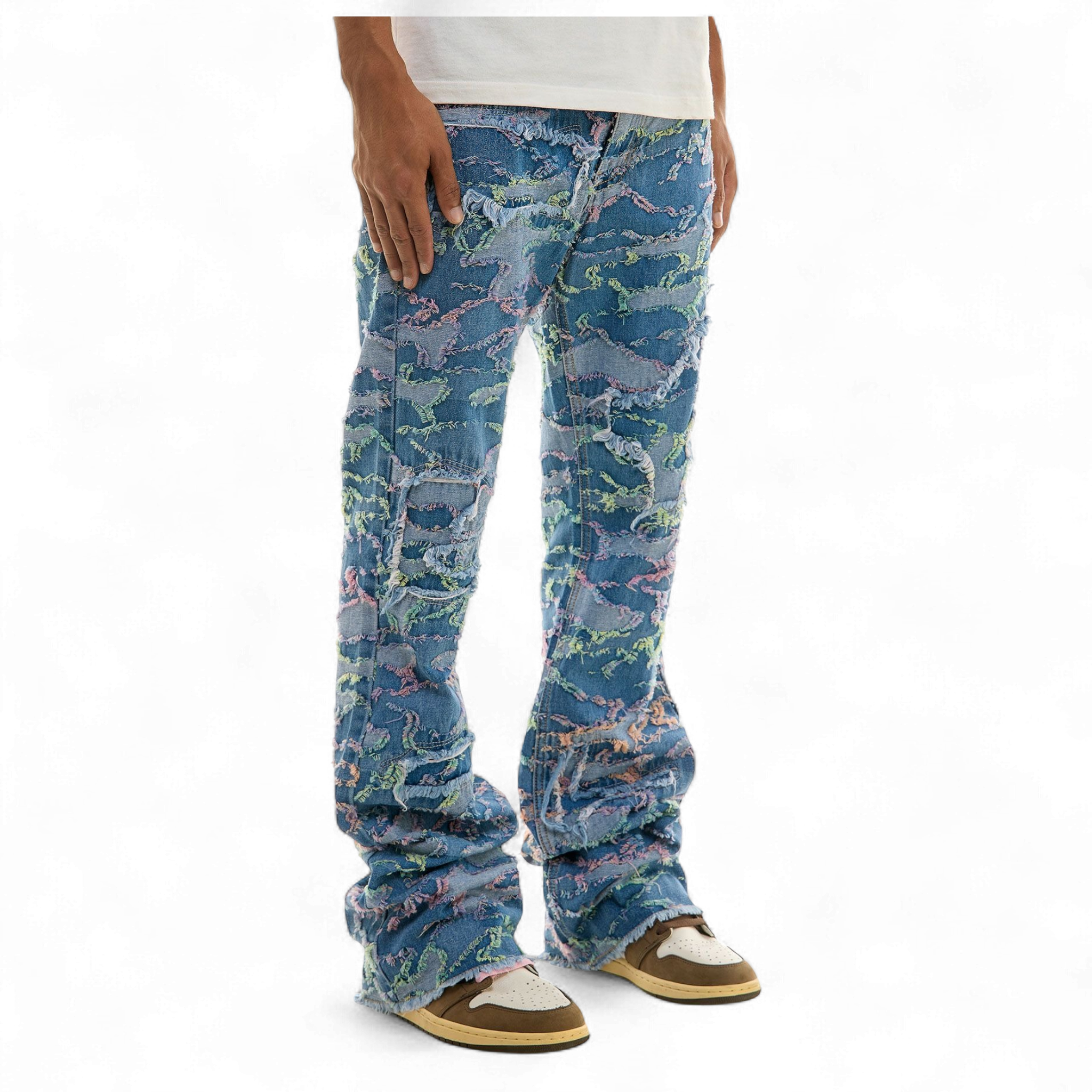 Hidden Treasures Ripped Camo Pattern Slim Flare Jeans