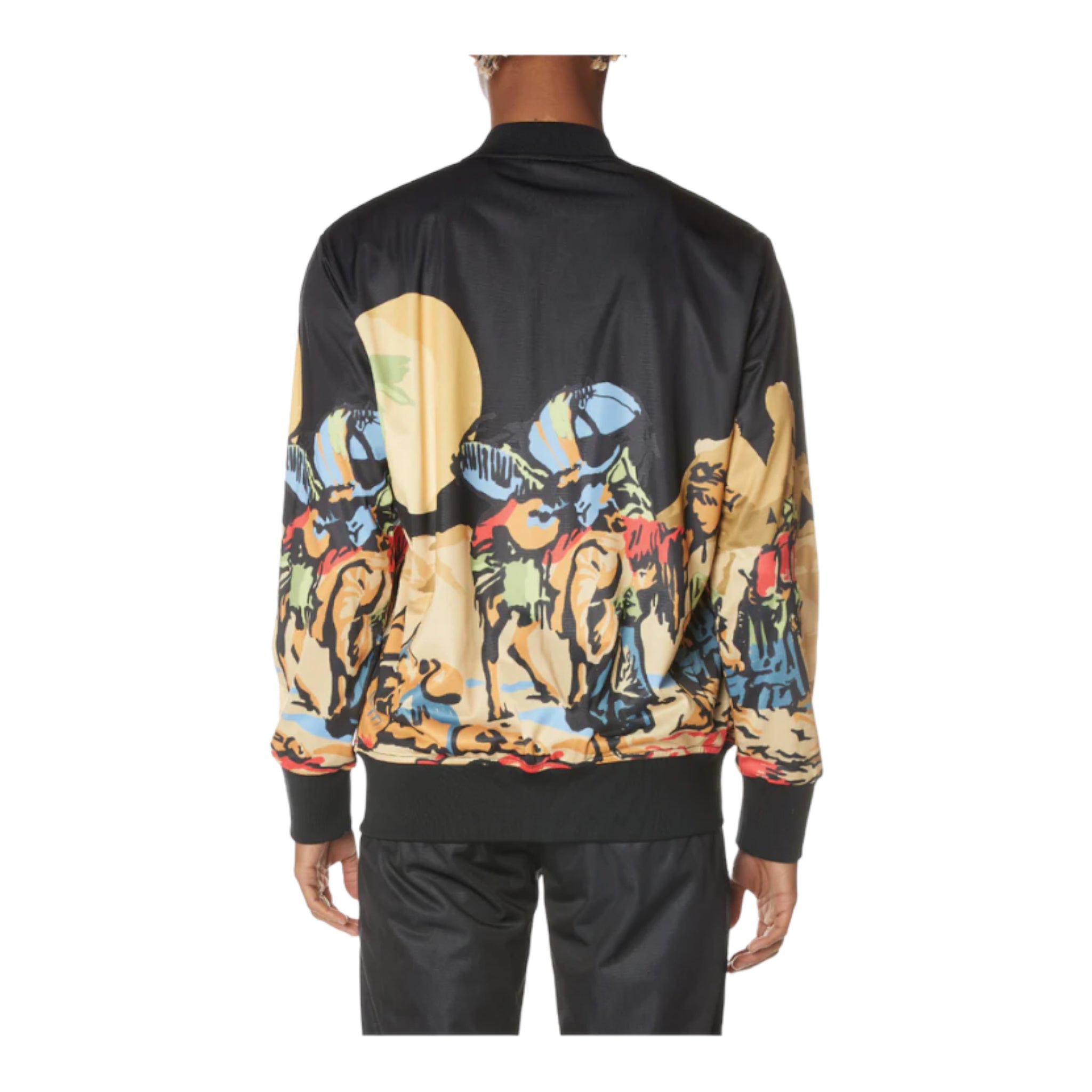 - Omini Logo tape with piping on sleeves, lasercut Omini logo.