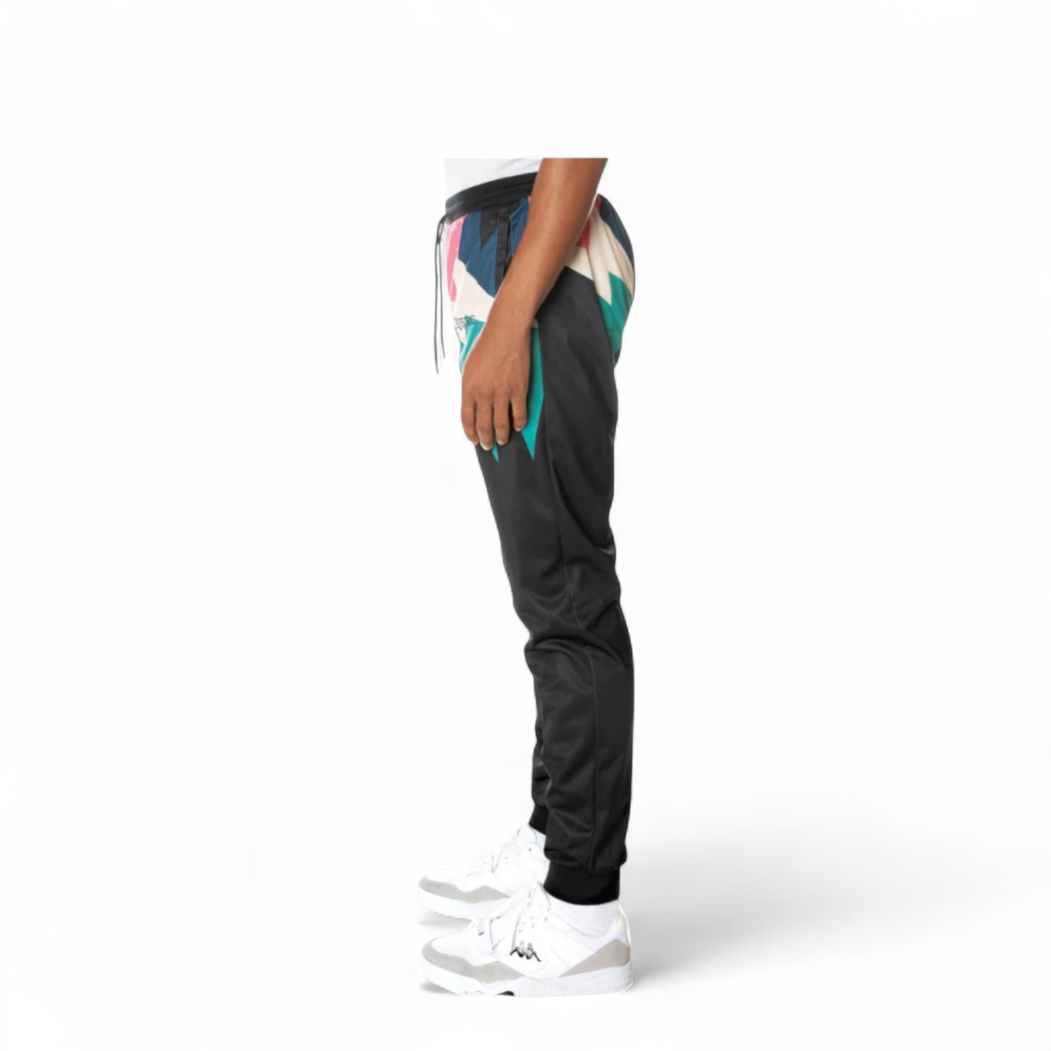 - Rib waist band and drawcord, two front welt pockets, one back zipped pocket
