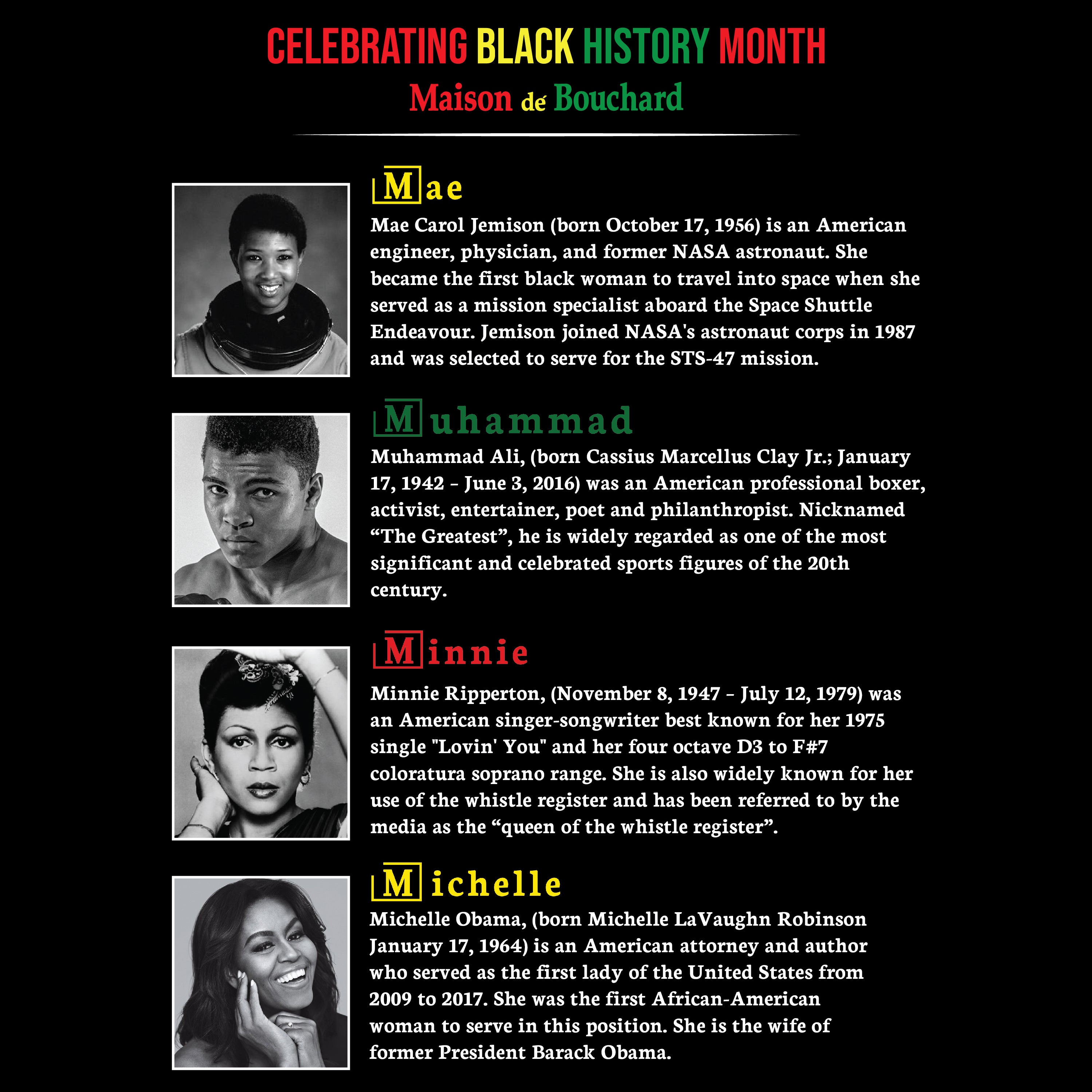 Celebrating Black History by honoring the legacies of some of the trailblazers that have made a tremendous impact in our lives, Maison dé Bouchard introduces the Black History Month capsule. This collection highlights the accomplishments of some of the heroes that have made so much possible, hoping to inspire everyone to continue learning from the past to pave the path for a better today and tomorrow.