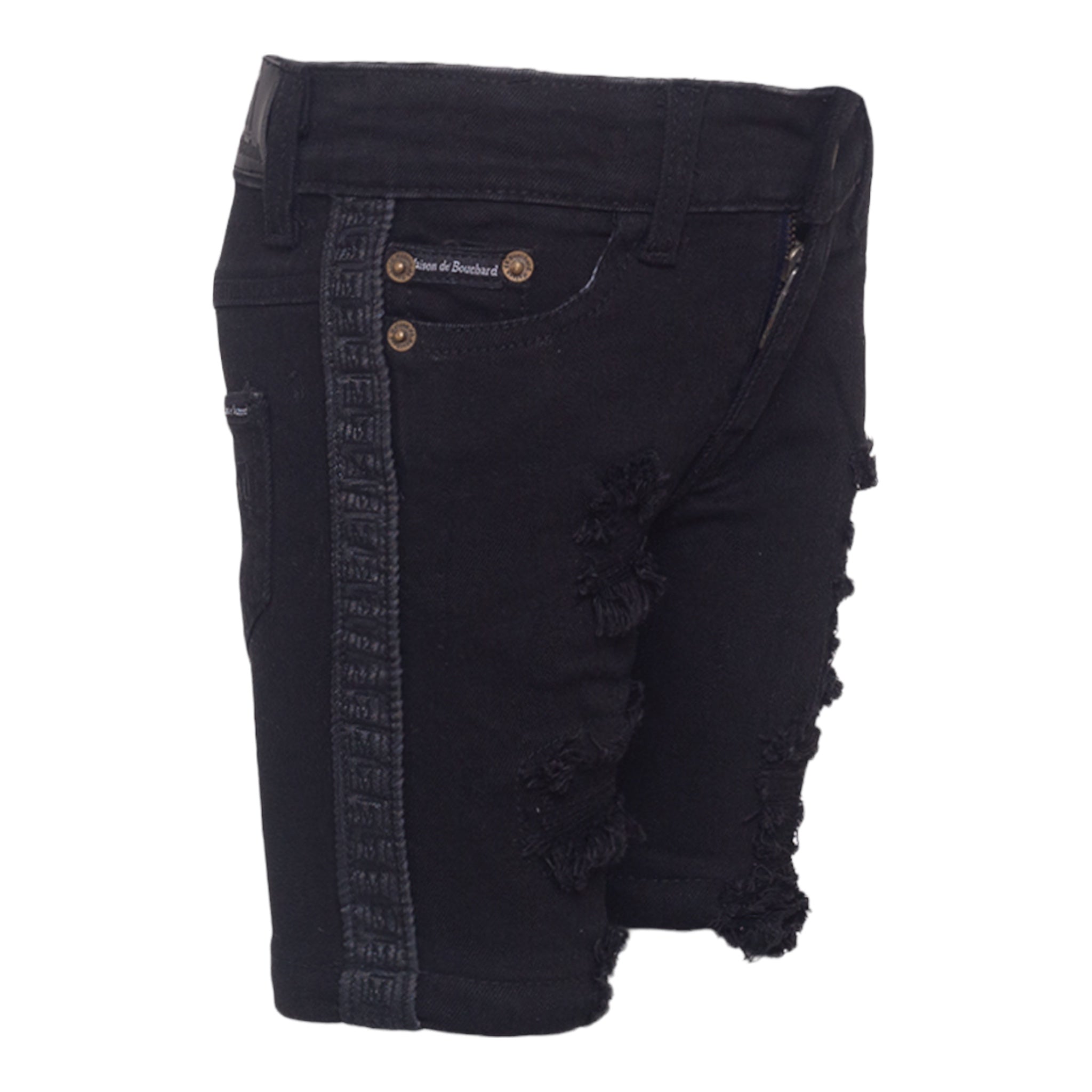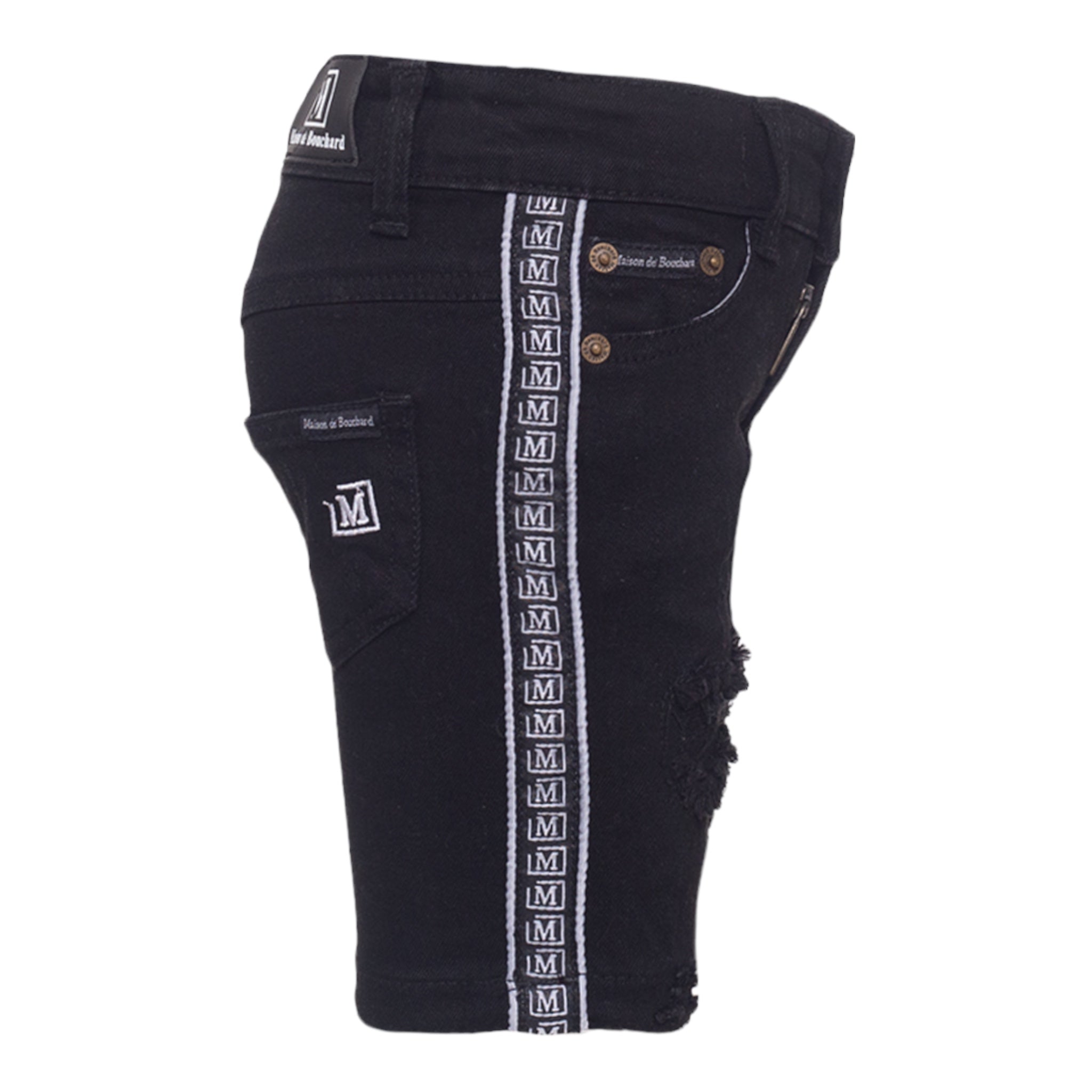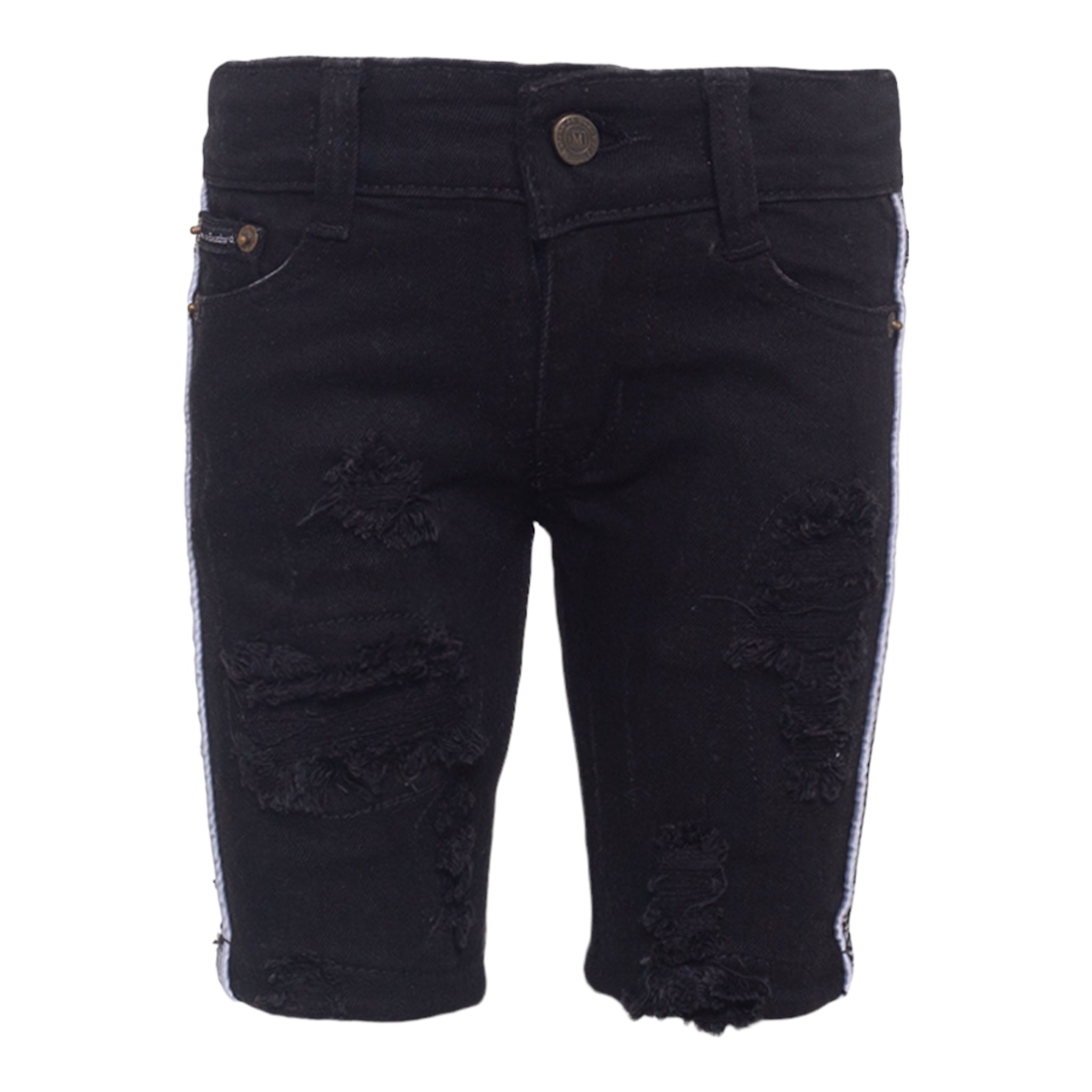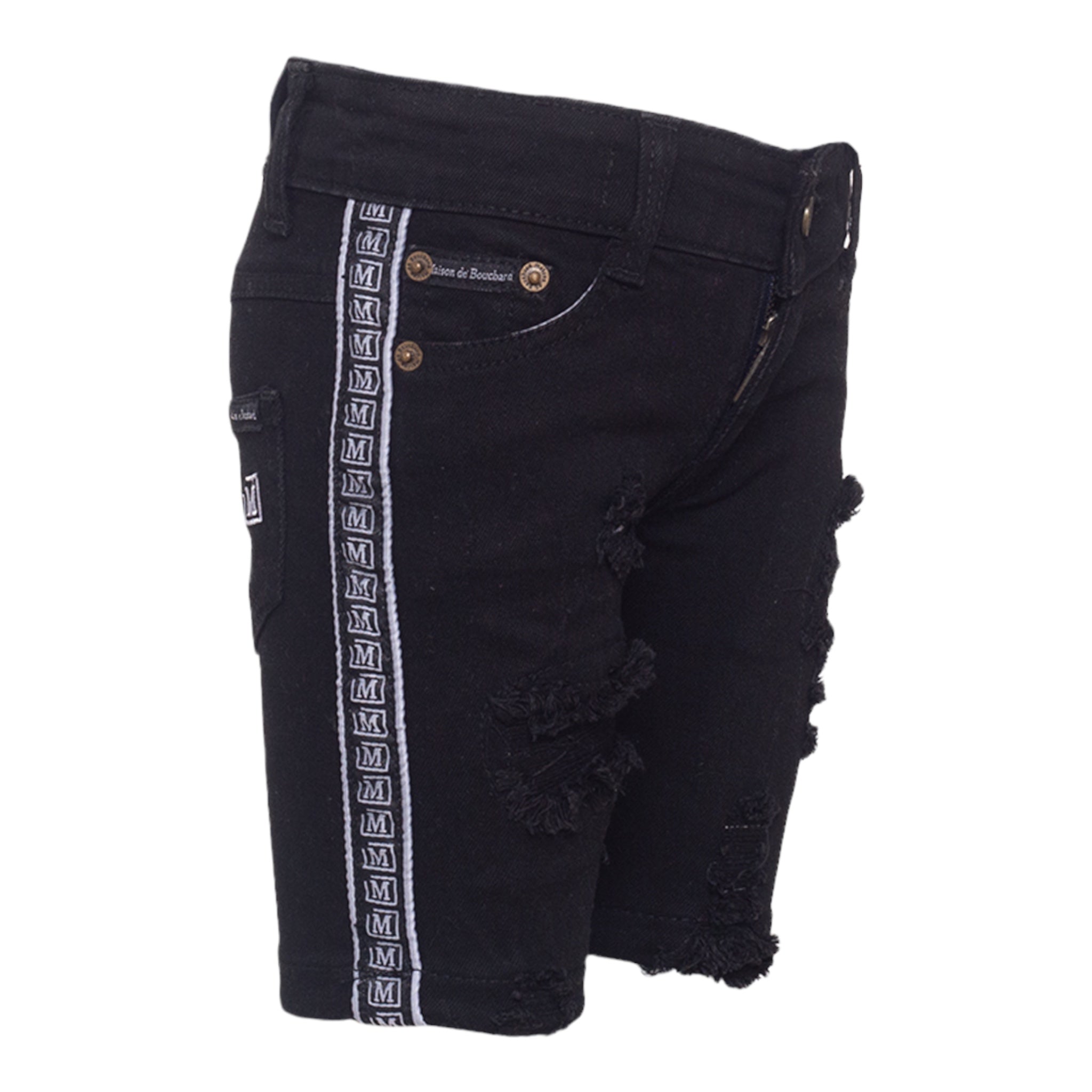 MDB Brand Kid's Logo Tape Distressed Denim Shorts - Black