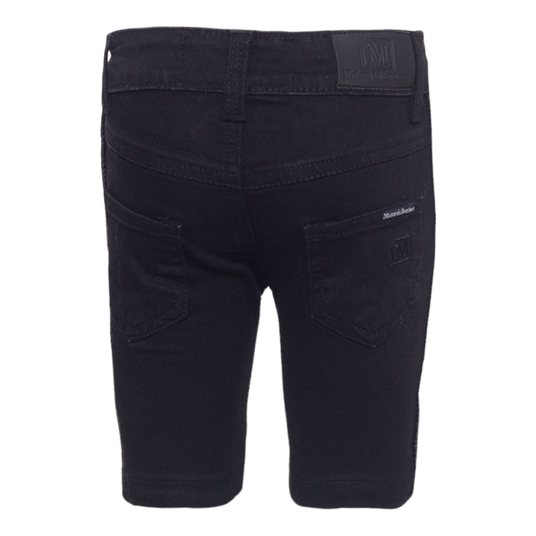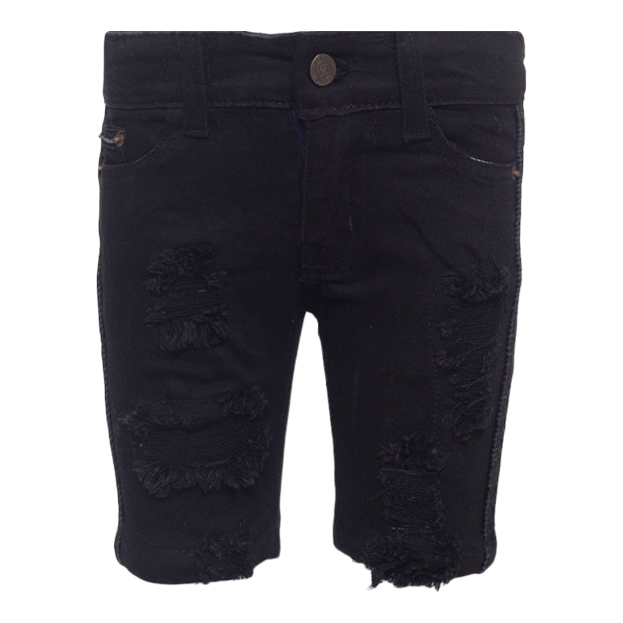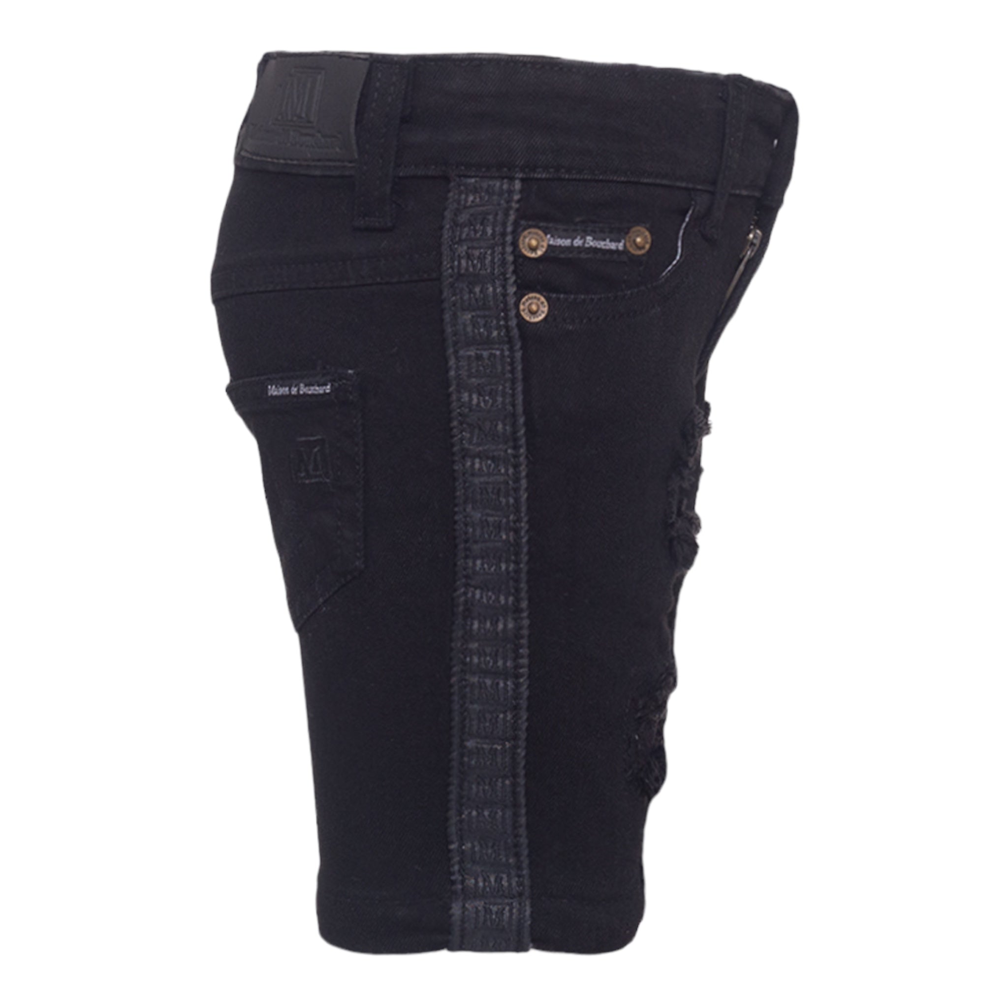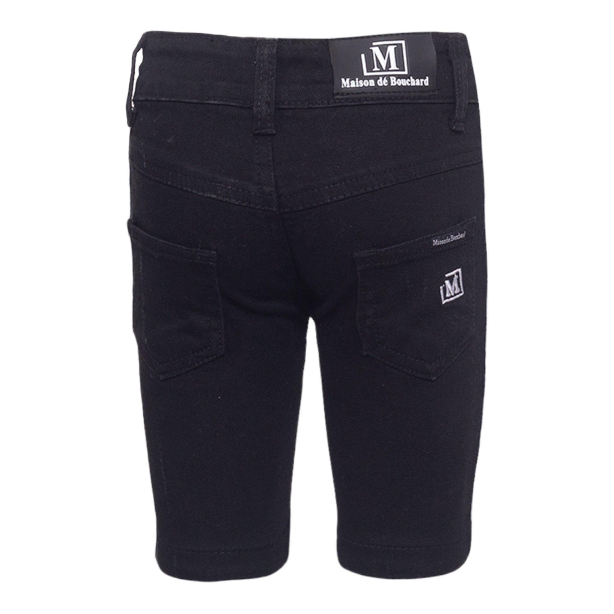 MDB Brand Kid's Logo Tape Distressed Denim Shorts - Black