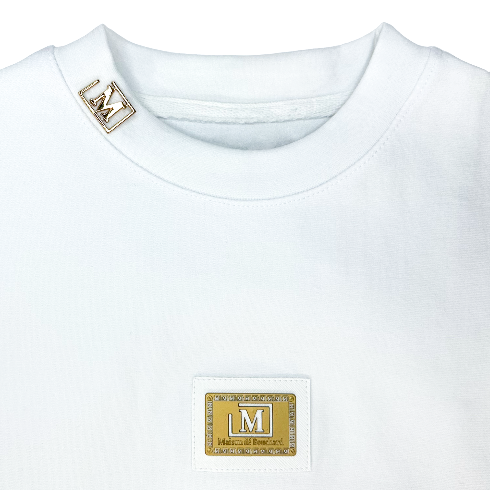 'Maison dé Bouchard' metal logo plate on chest and back neck