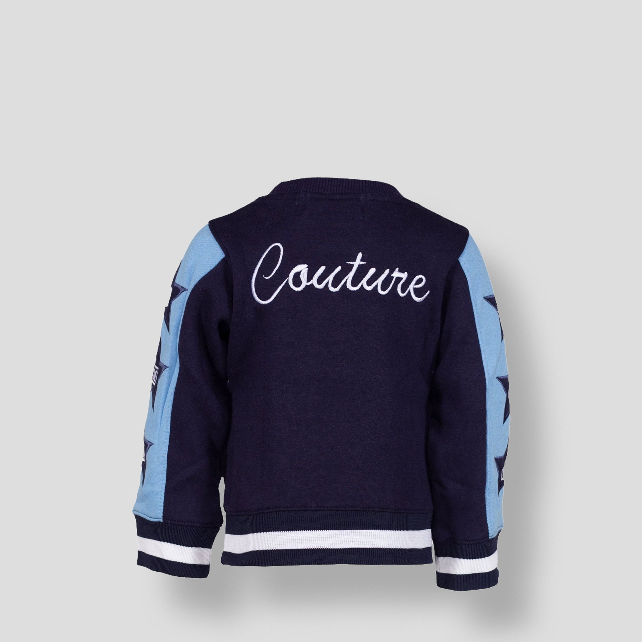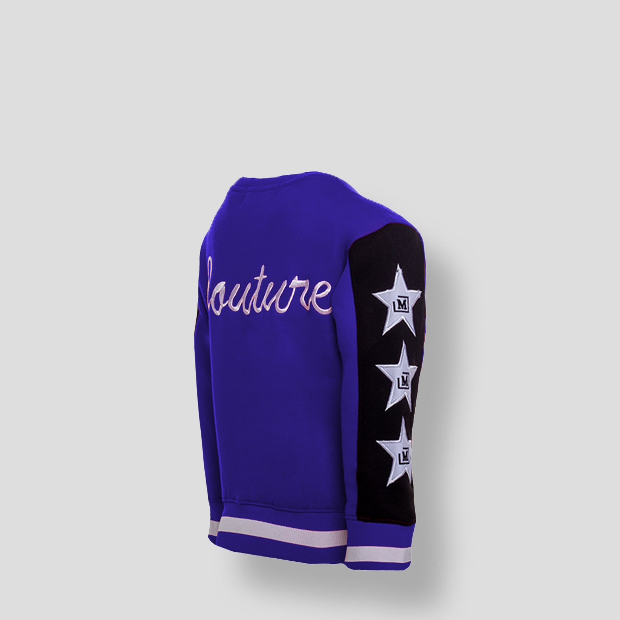 The MDB Couture Kid's M-Star Crewneck Sweatshirt combines comfort and style. Made with a soft cotton fleece, it features embroidered stars on the front chest and down the sleeves. With many color combinations to choose from, the MDB Couture M-Star Crewneck Sweatshirt is a staple for your wardrobe