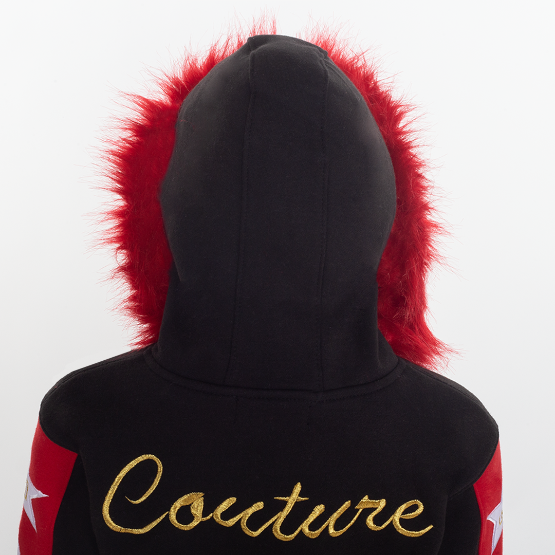The MDB Couture Kid's M-Star Fleece Suit combines comfort and style. Made with a soft cotton fleece, it features a removable fur trim around the hood with embroidered stars on the front chest as well as on the pant. With many color combinations to choose from, the MDB Couture M-Star Fleece Suit is a must-have for the season!