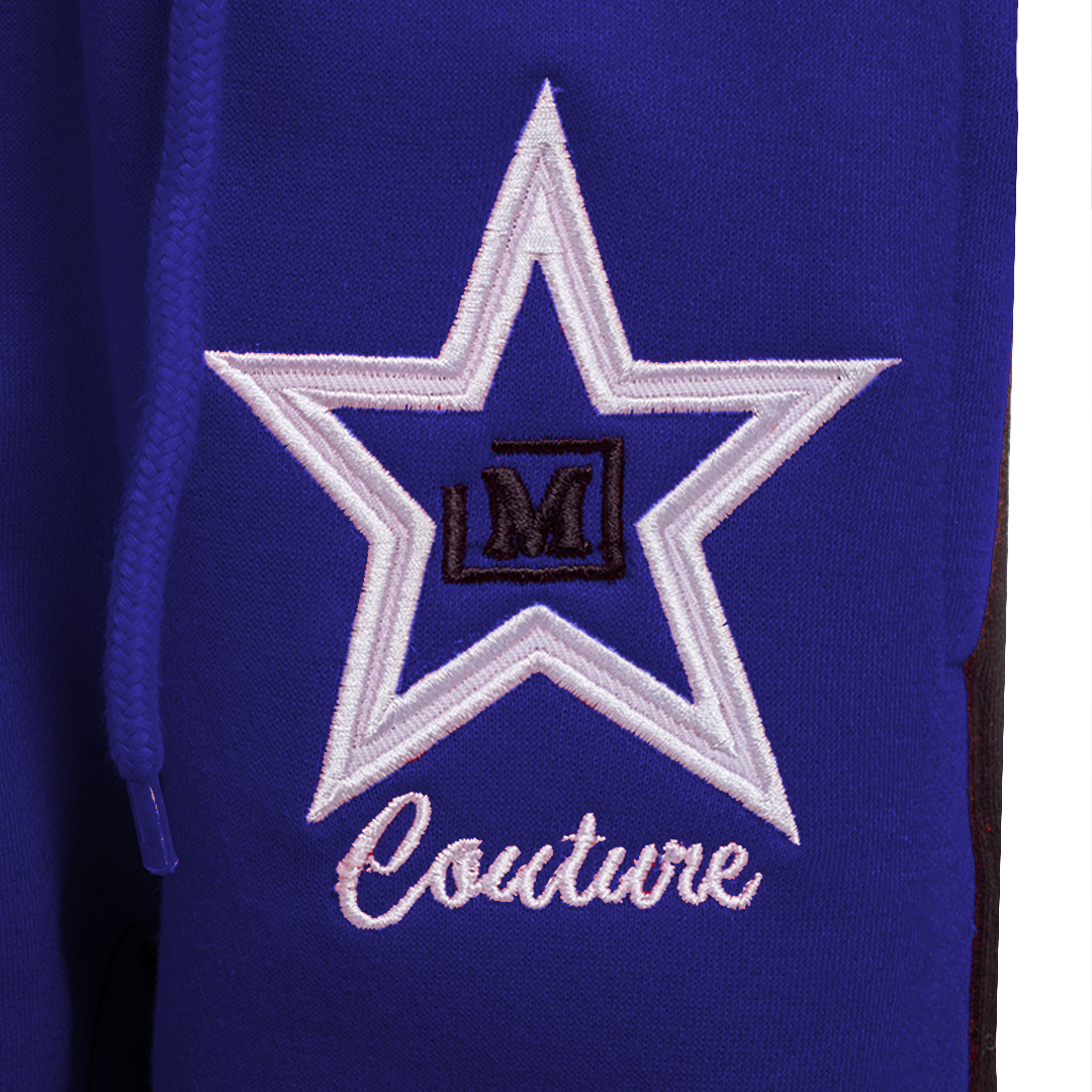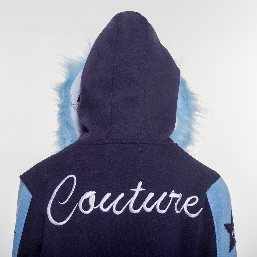 The MDB Couture Kid's M-Star Fleece Suit combines comfort and style. Made with a soft cotton fleece, it features a removable fur trim around the hood with embroidered stars on the front chest as well as on the pant. With many color combinations to choose from, the MDB Couture M-Star Fleece Suit is a must-have for the season!