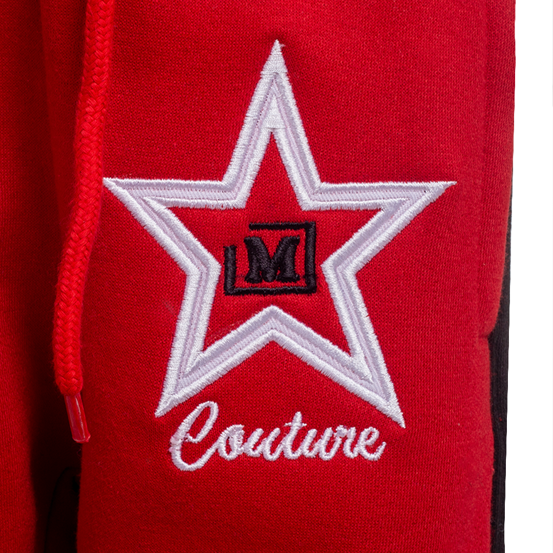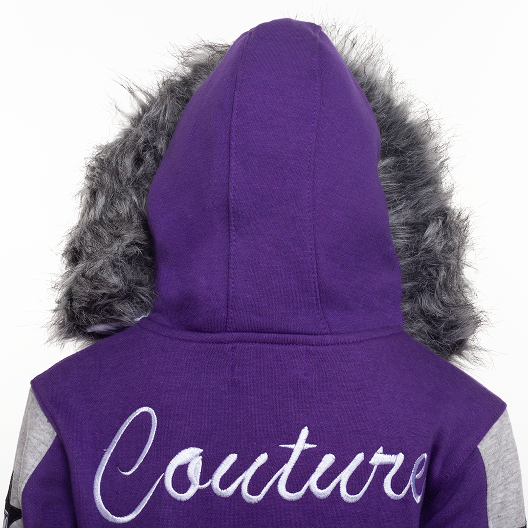The MDB Couture Kid's M-Star Fleece Suit combines comfort and style. Made with a soft cotton fleece, it features a removable fur trim around the hood with embroidered stars on the front chest as well as on the pant. With many color combinations to choose from, the MDB Couture M-Star Fleece Suit is a must-have for the season!