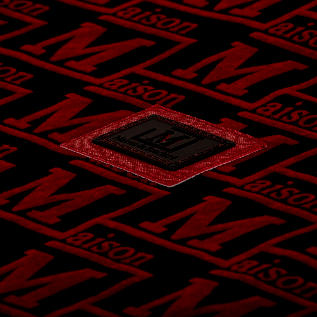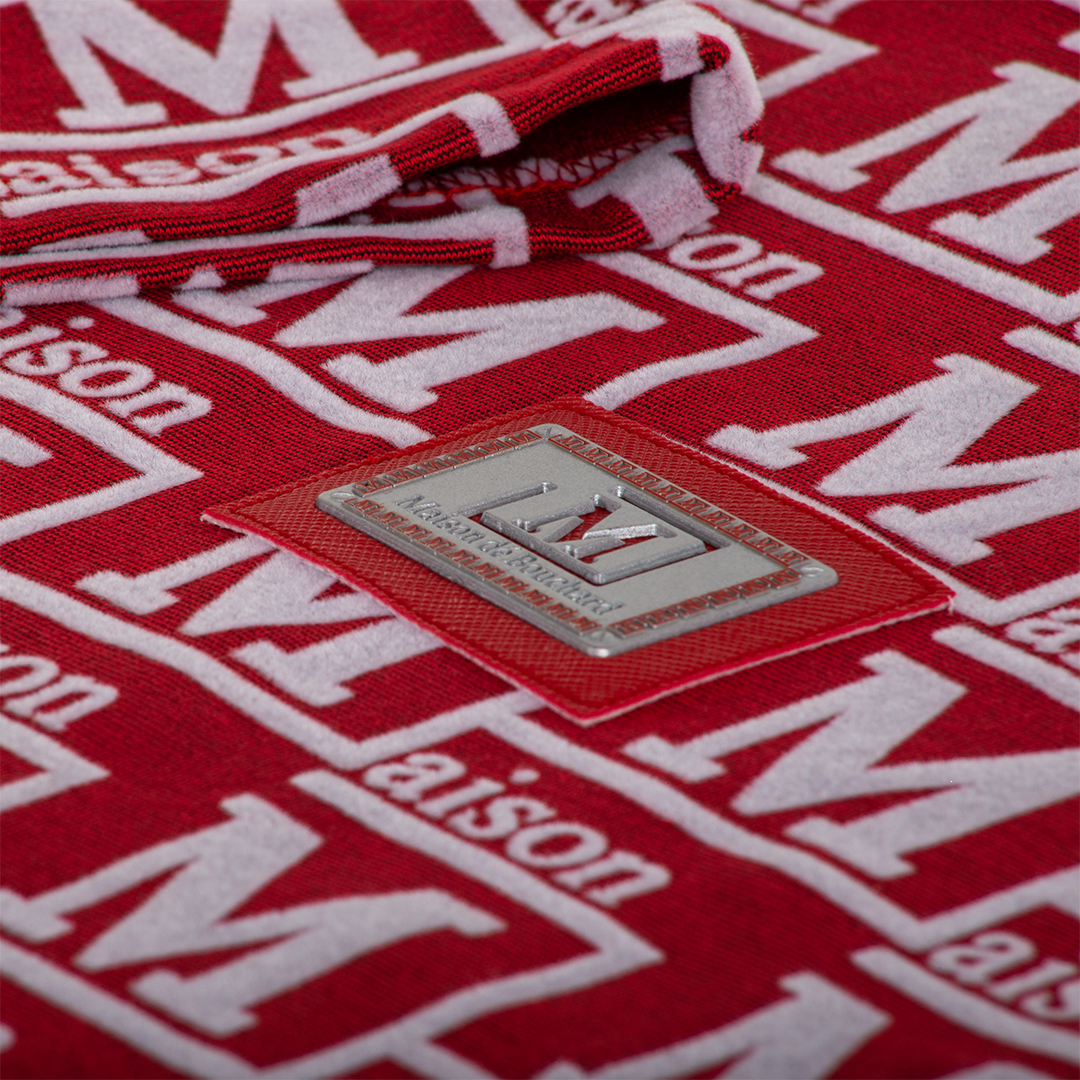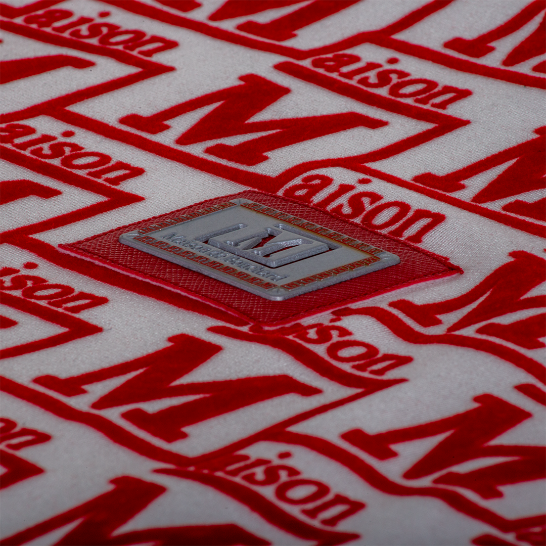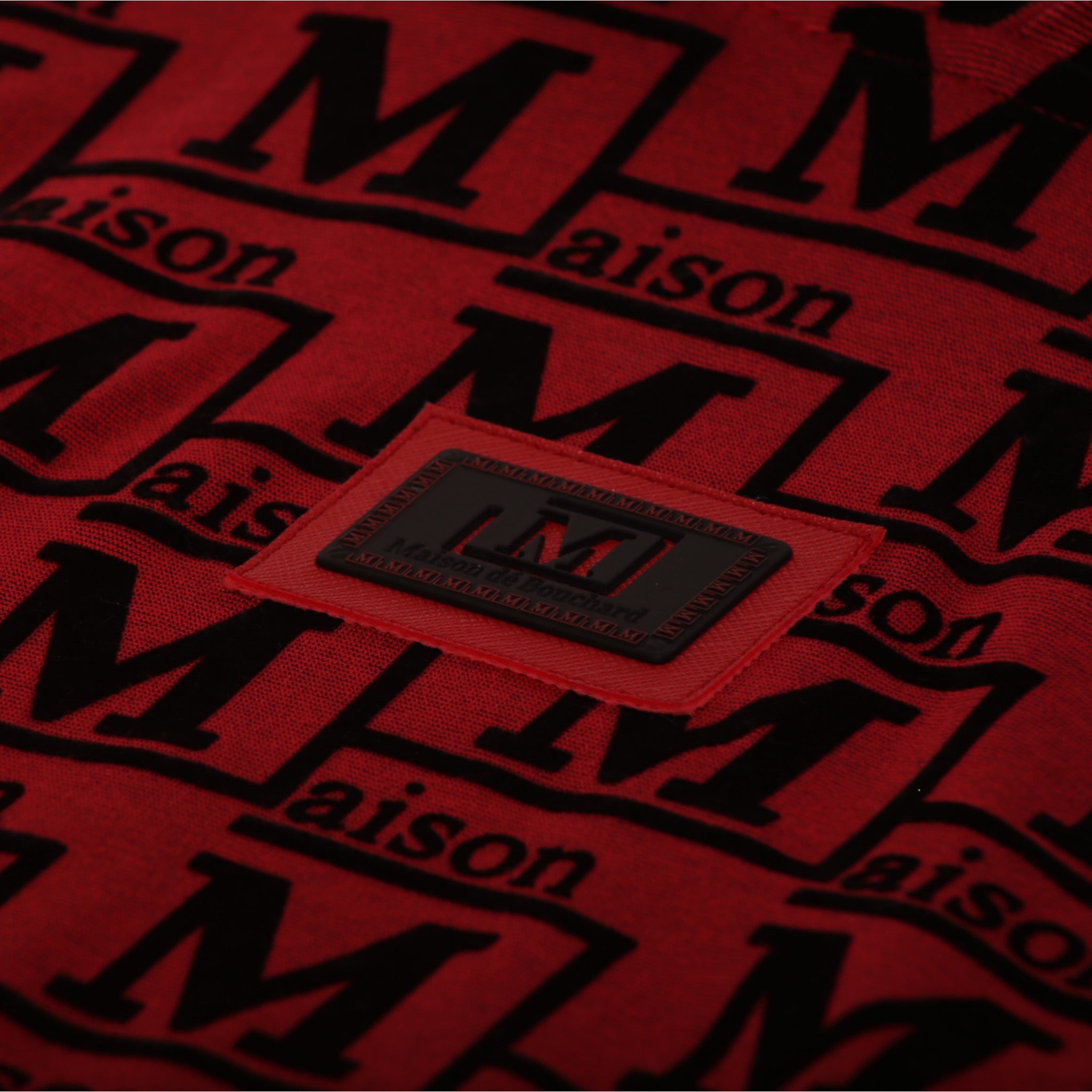 Textured flocked monogram pattern throughout
