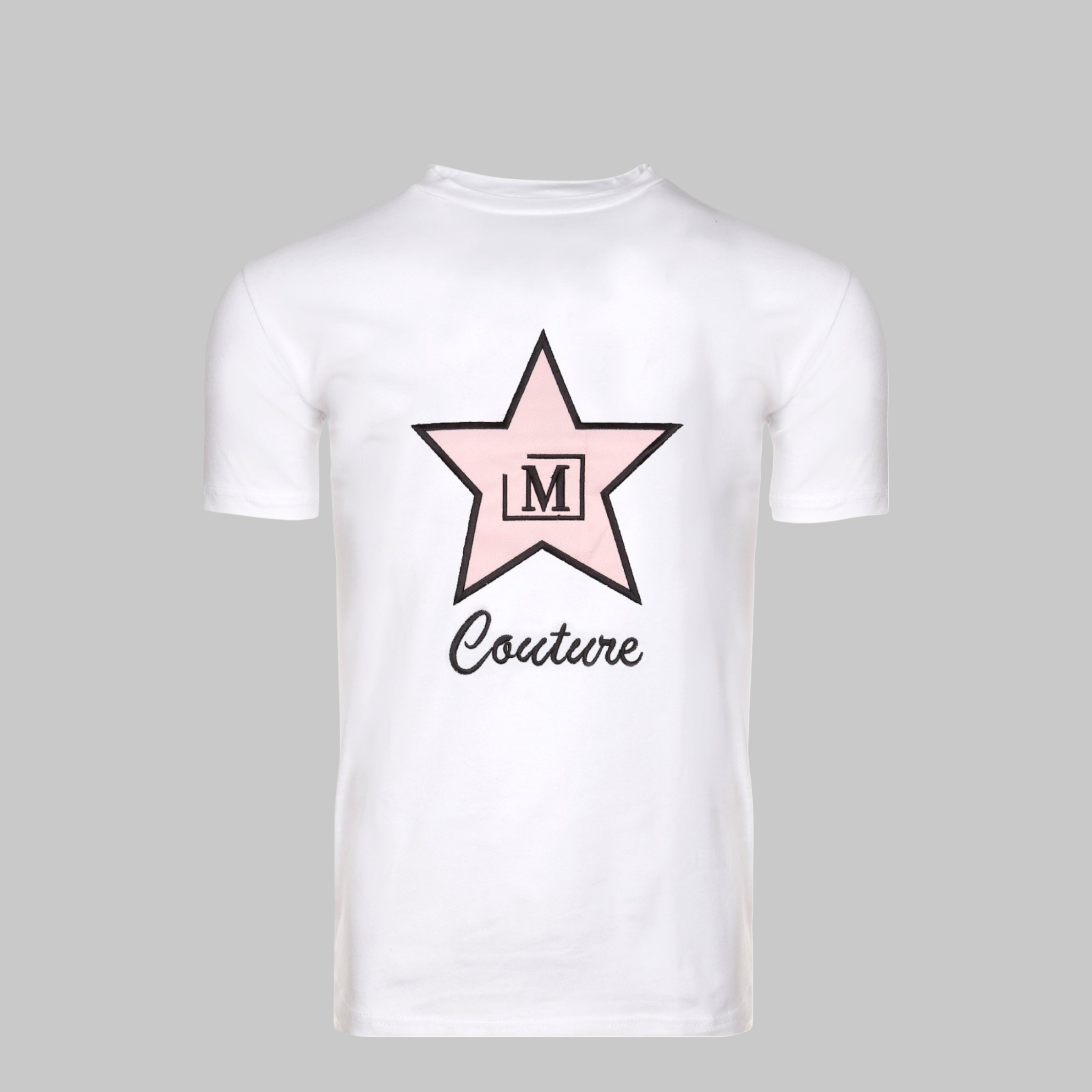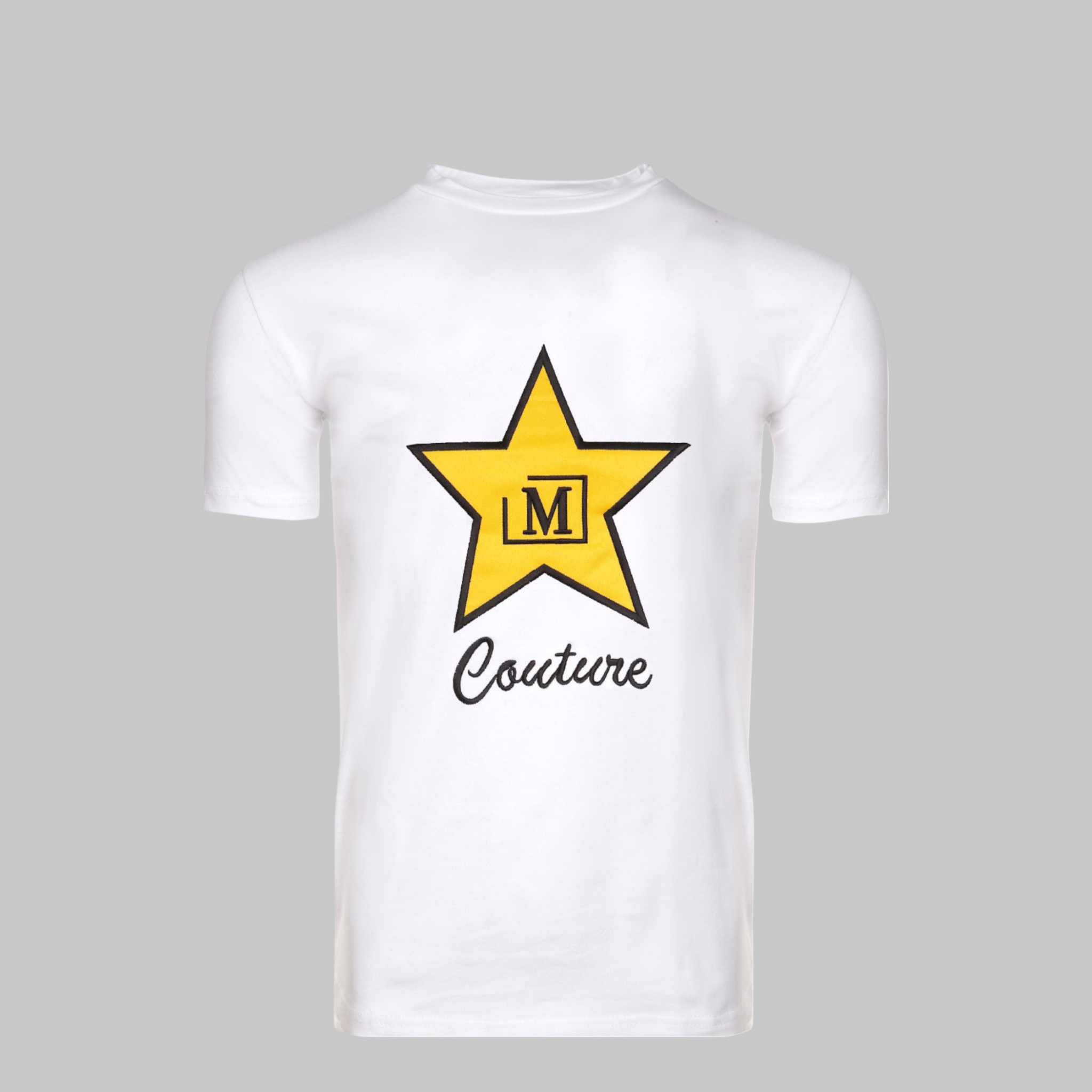 Classic crewneck tee features embroidered star with classic M Couture logo on chest.