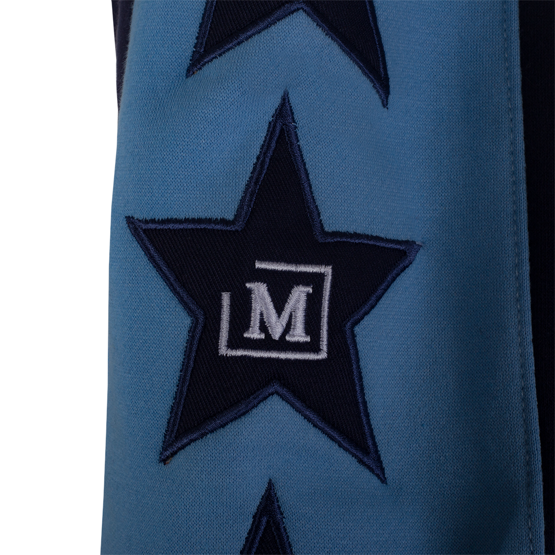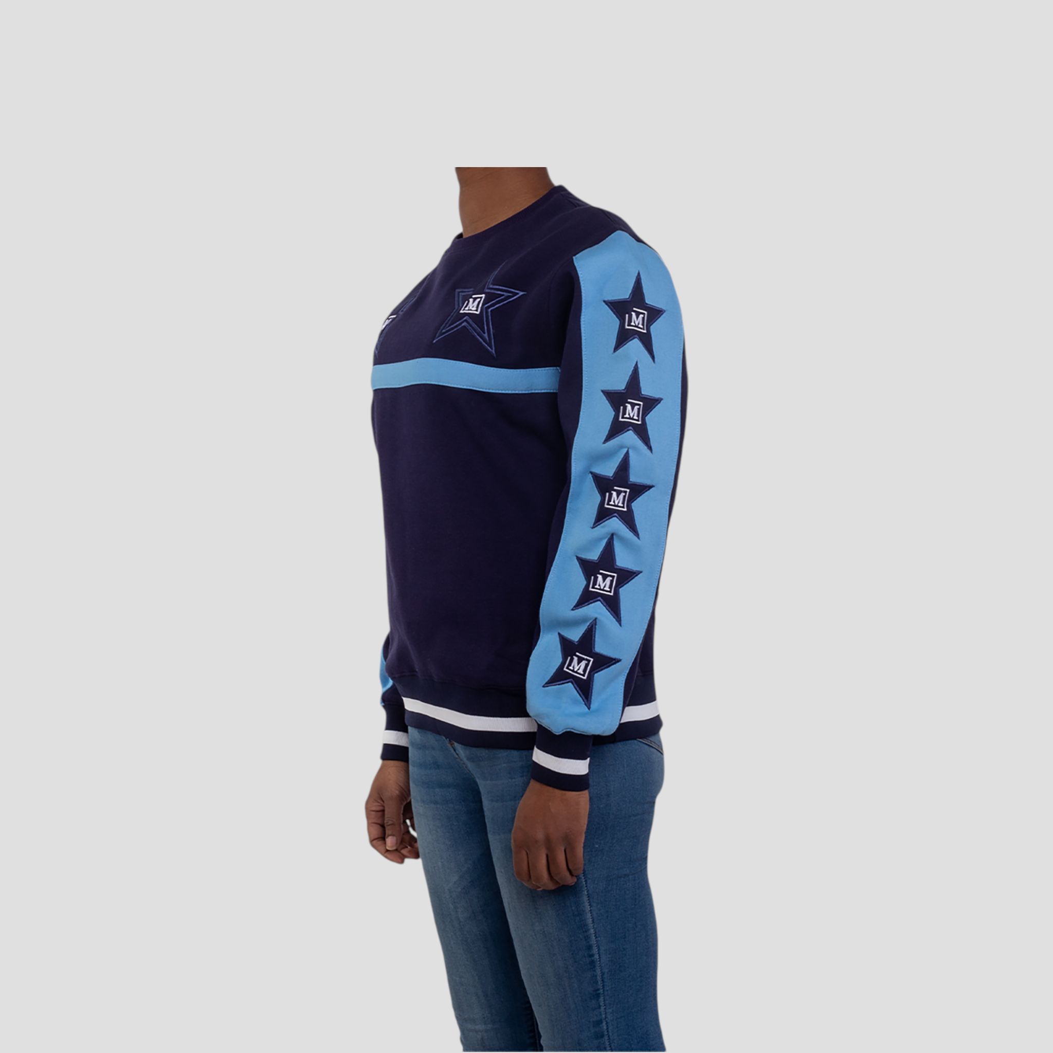 The MDB Couture Women's M-Star Crewneck Sweatshirt combines comfort and style. Made with a soft cotton fleece, it features embroidered stars on the front chest and down the sleeves. With many color combinations to choose from, the MDB Couture M-Star Crewneck Sweatshirt is a staple for your wardrobe
