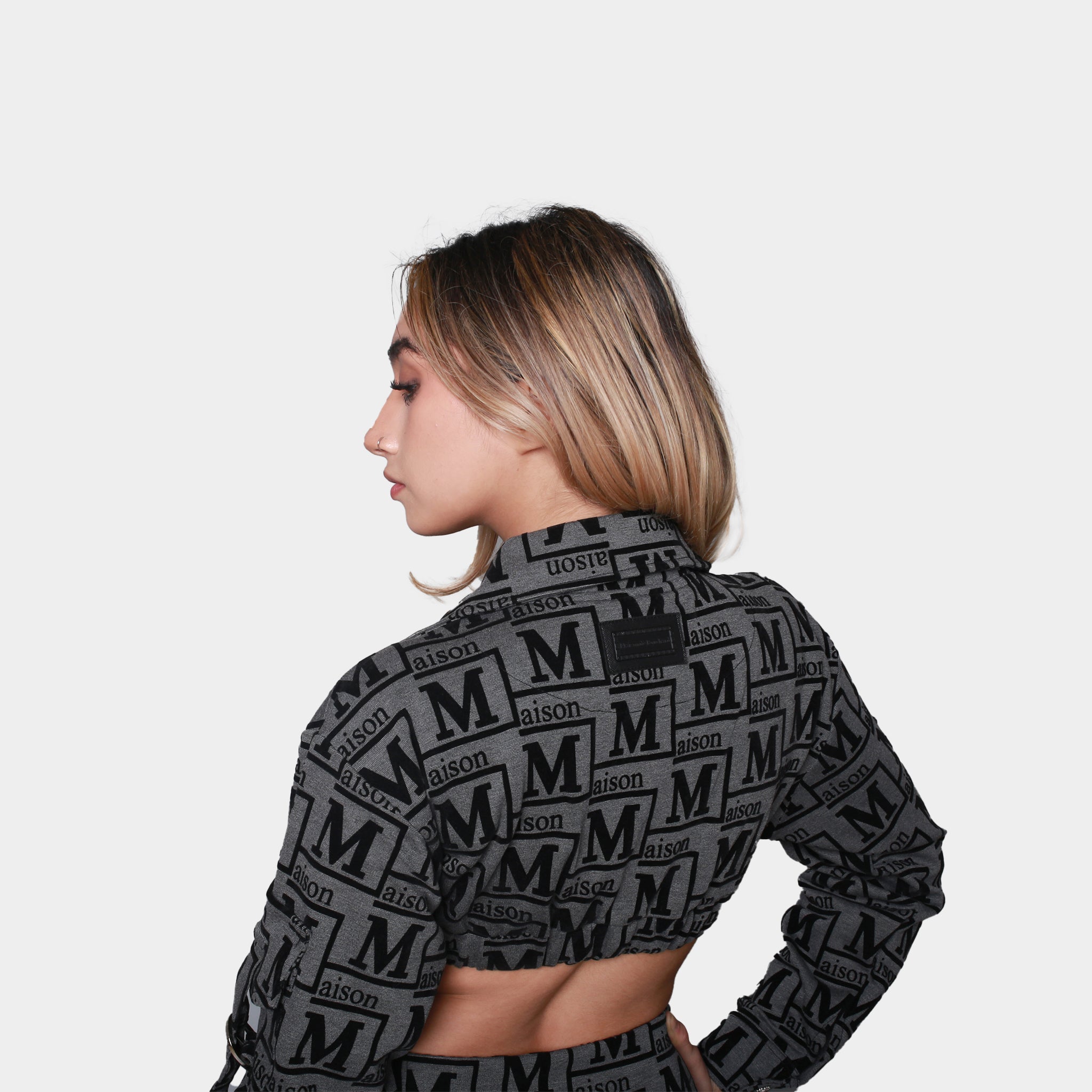 MDB Couture Women's Woven Monogram Crop-Top Jacket & Skirt