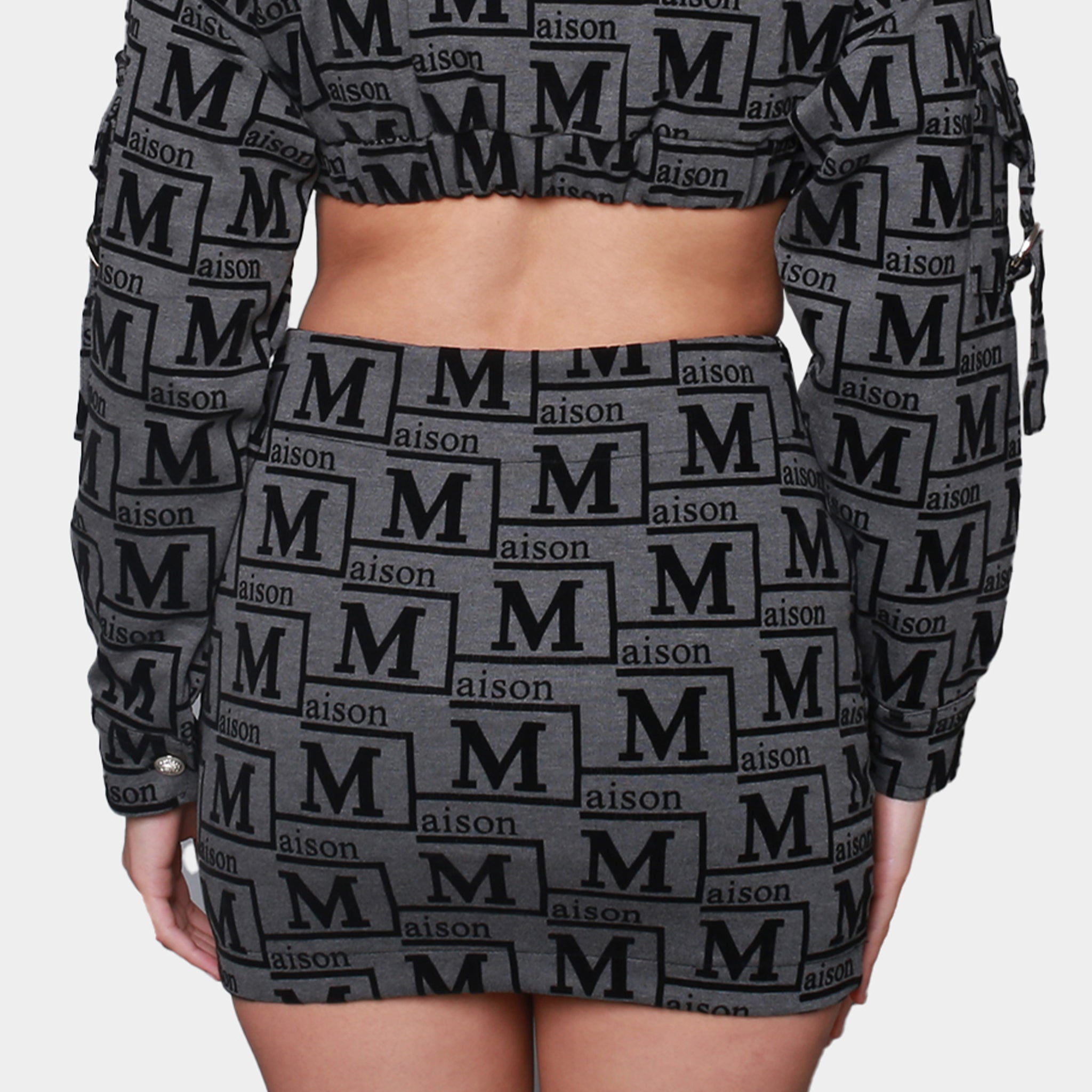 MDB Couture Women's Woven Monogram Crop-Top & Skirt