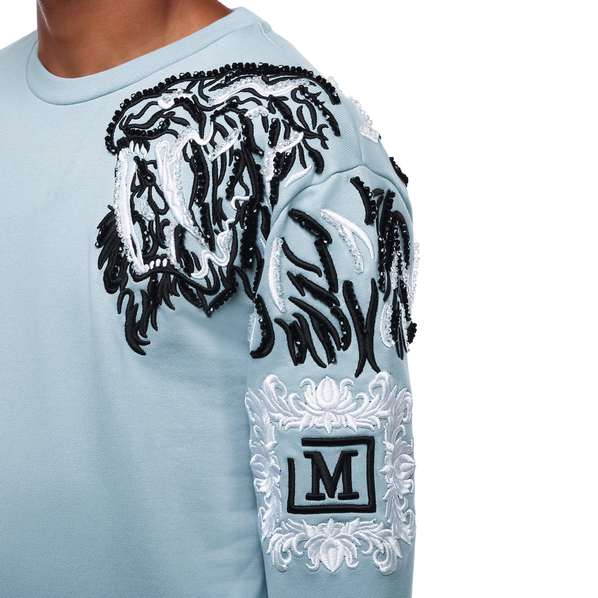 • Embroidered 'M' crest logo
