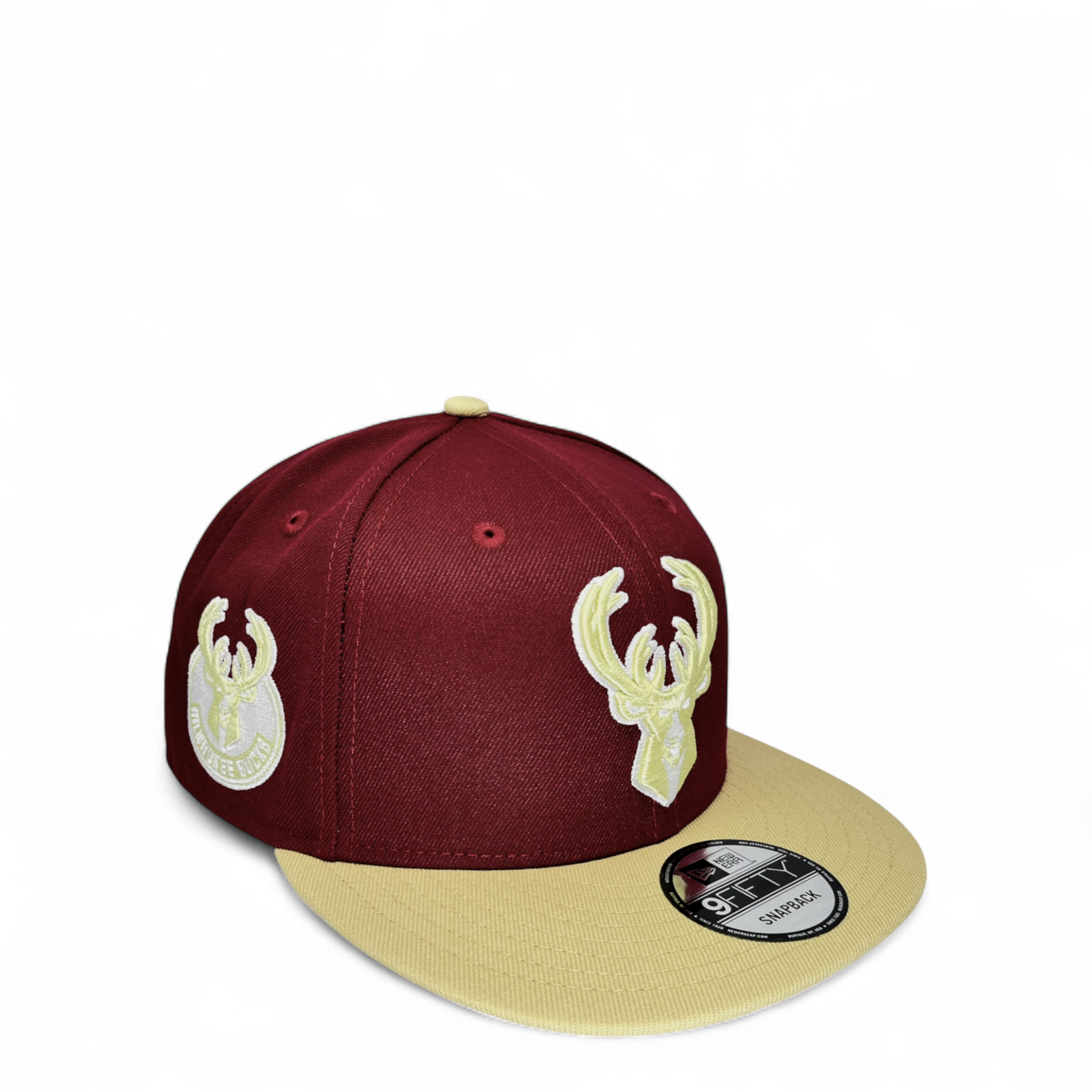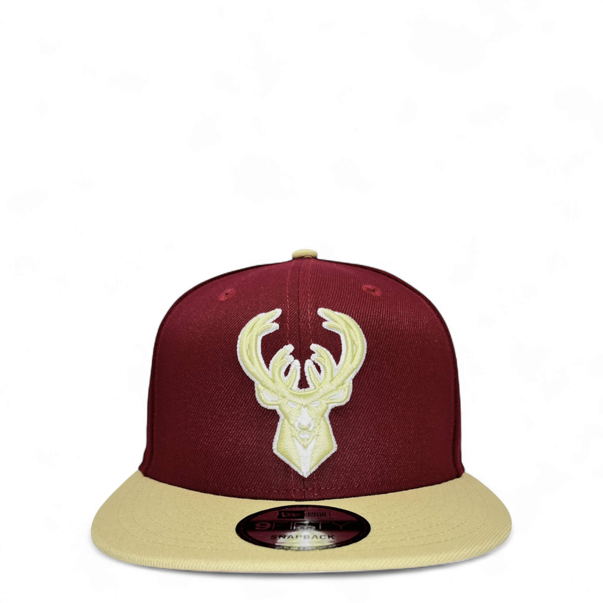New Era Milwaukee Bucks Custom 9Fifty Snapback Baseball Cap - Burgundy/Tan