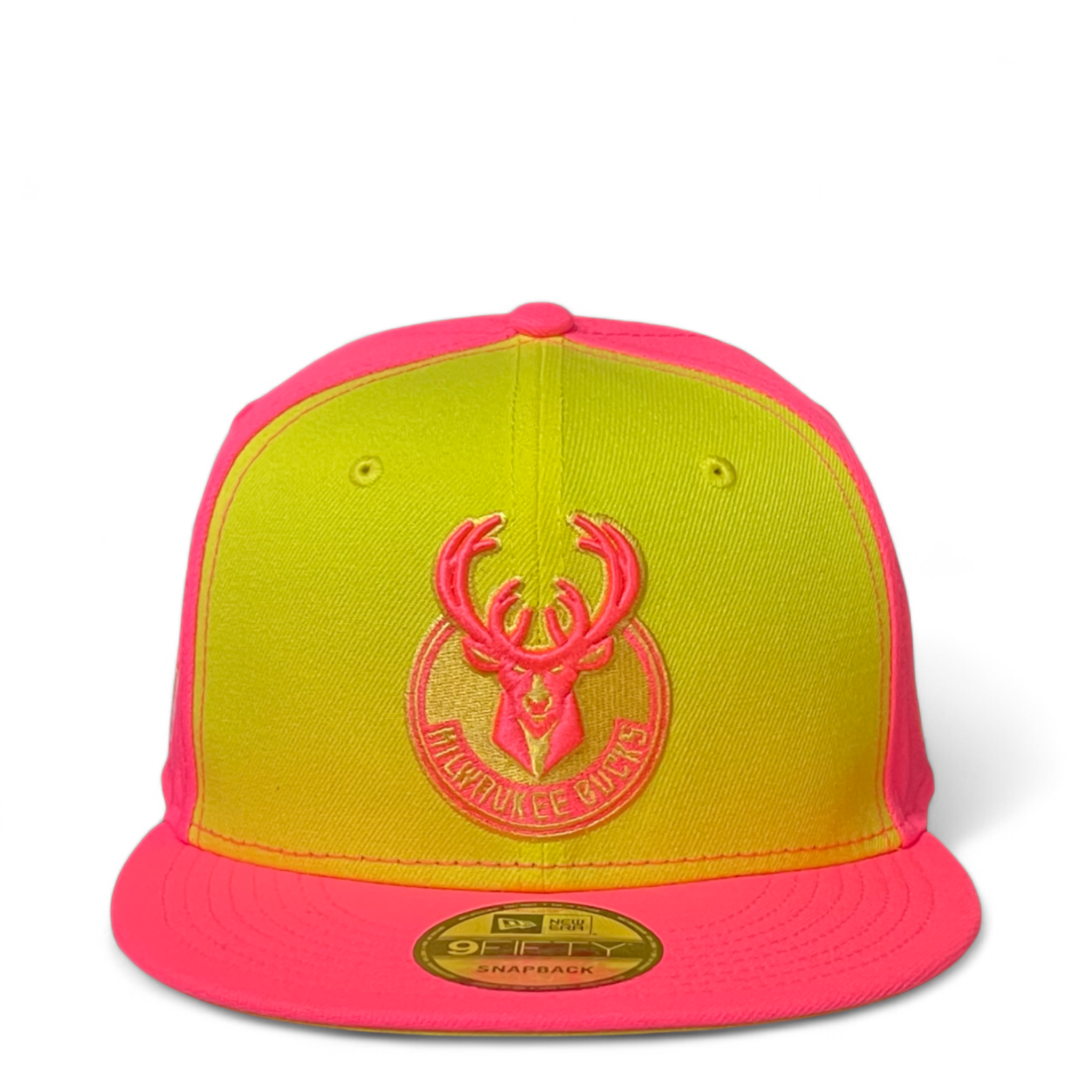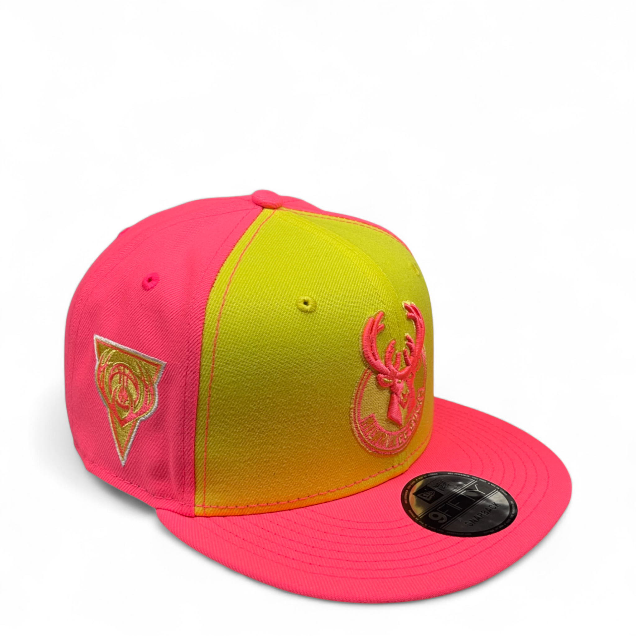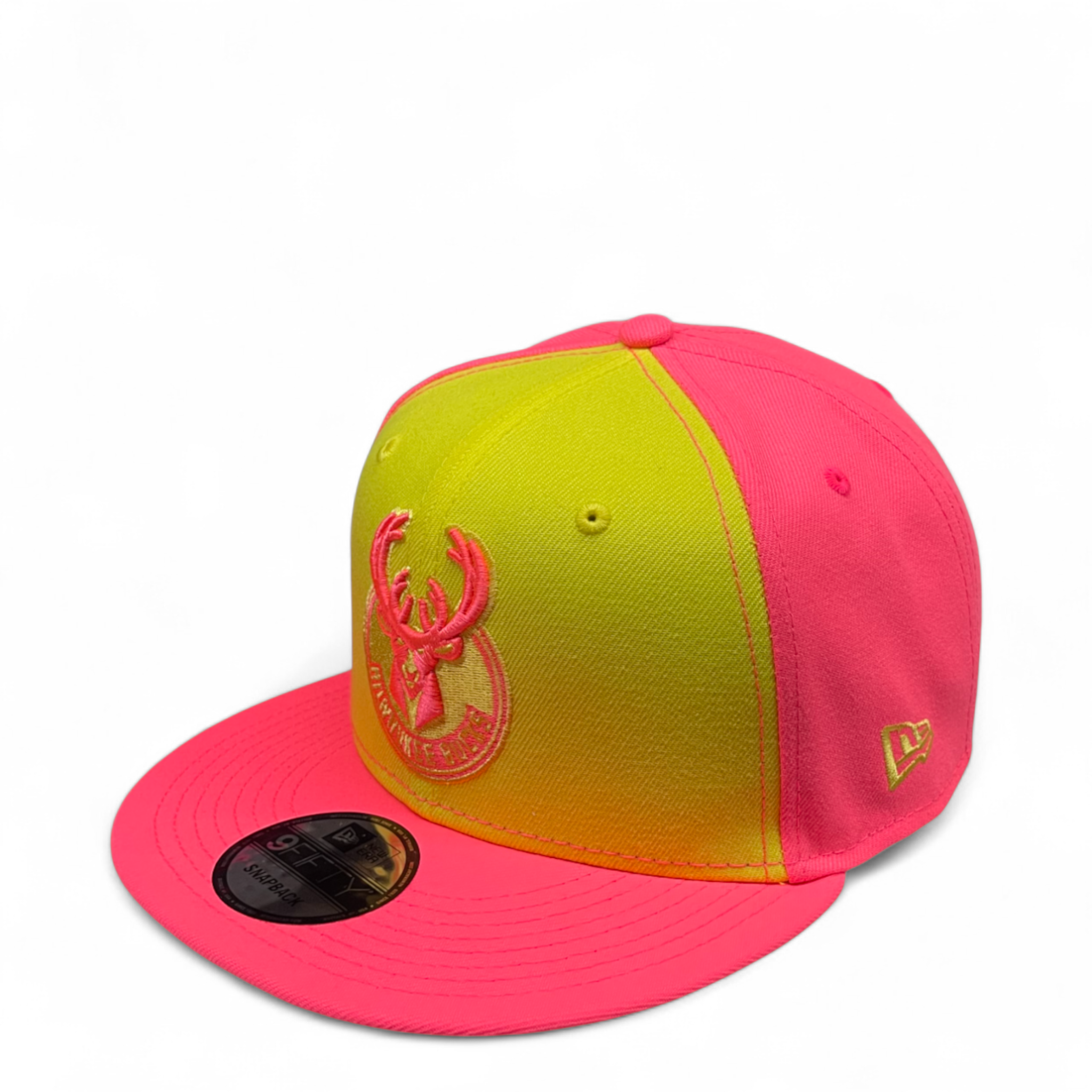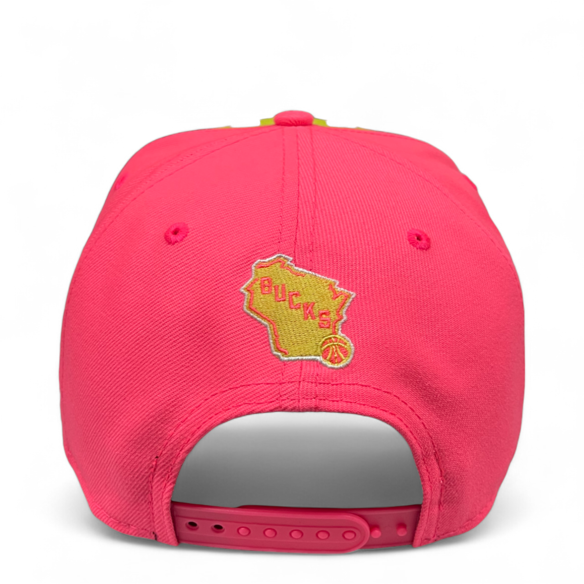 New Era Milwaukee Bucks Custom 9Fifty Snapback Baseball Cap - Neon Pink/Yellow