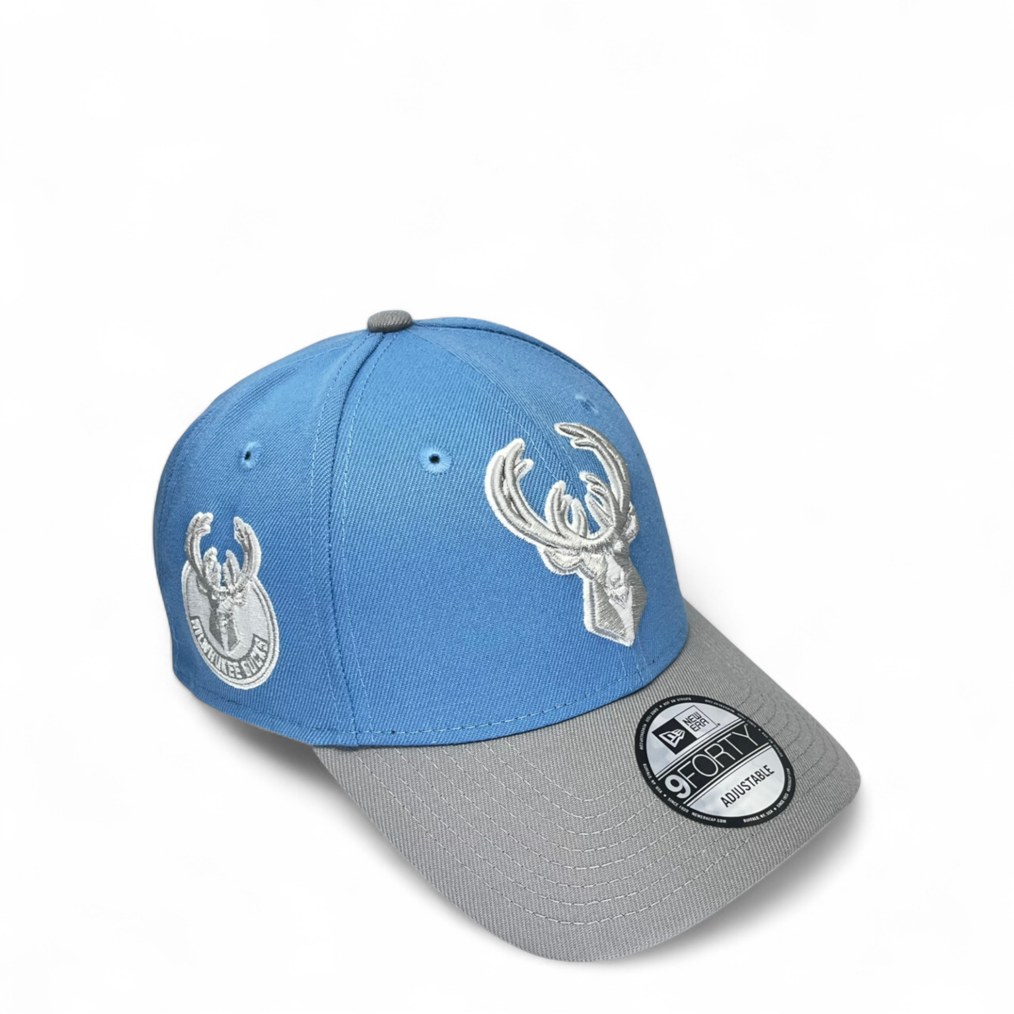 New Era Milwaukee Bucks Custom 9Forty Stretch Snapback Baseball Cap - Sky/Grey