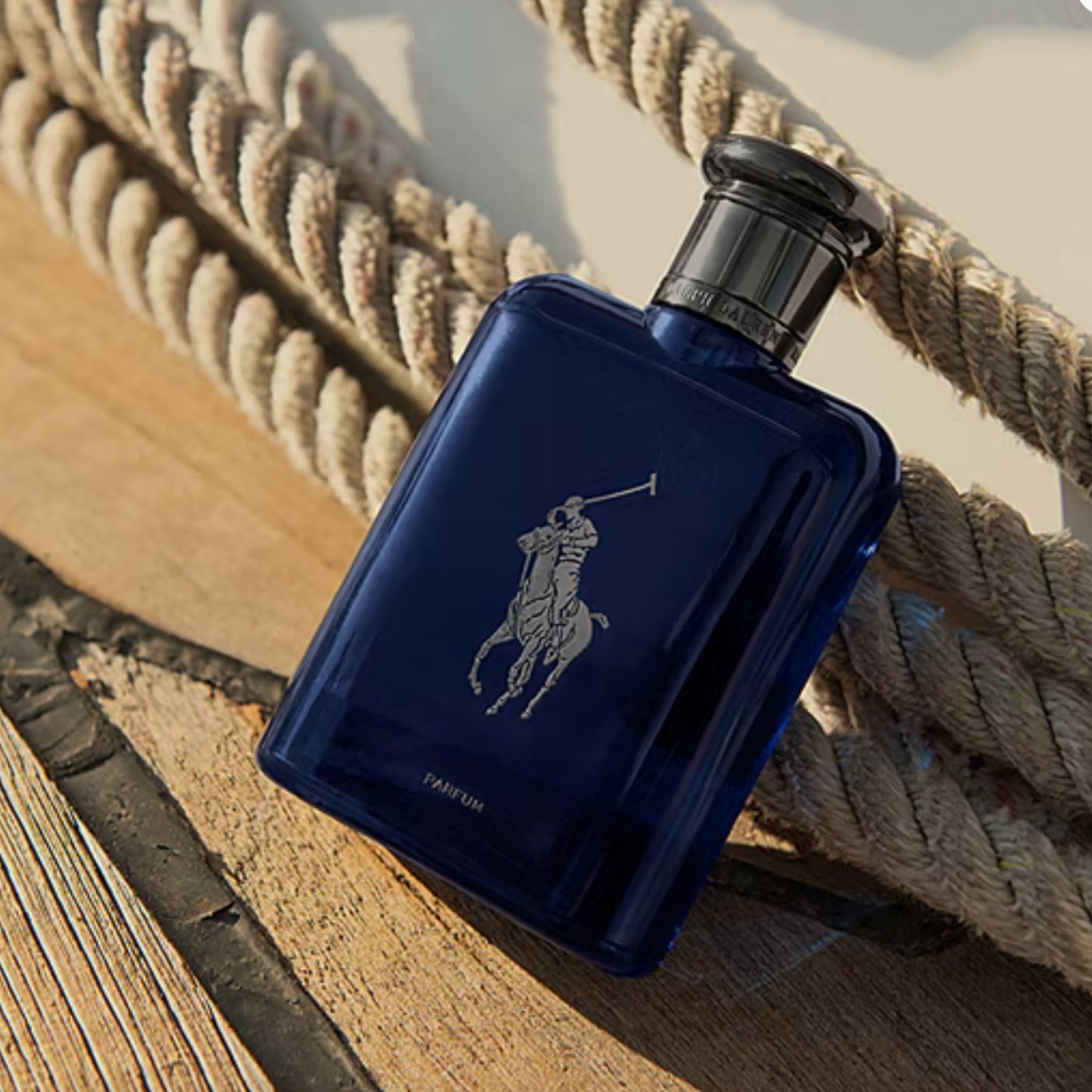 The beautifully designed bottle reflects the essence of the fragrance—elegant, timeless, and masculine. With its deep blue hue and classic silhouette, it embodies the spirit of Ralph Lauren's signature style.