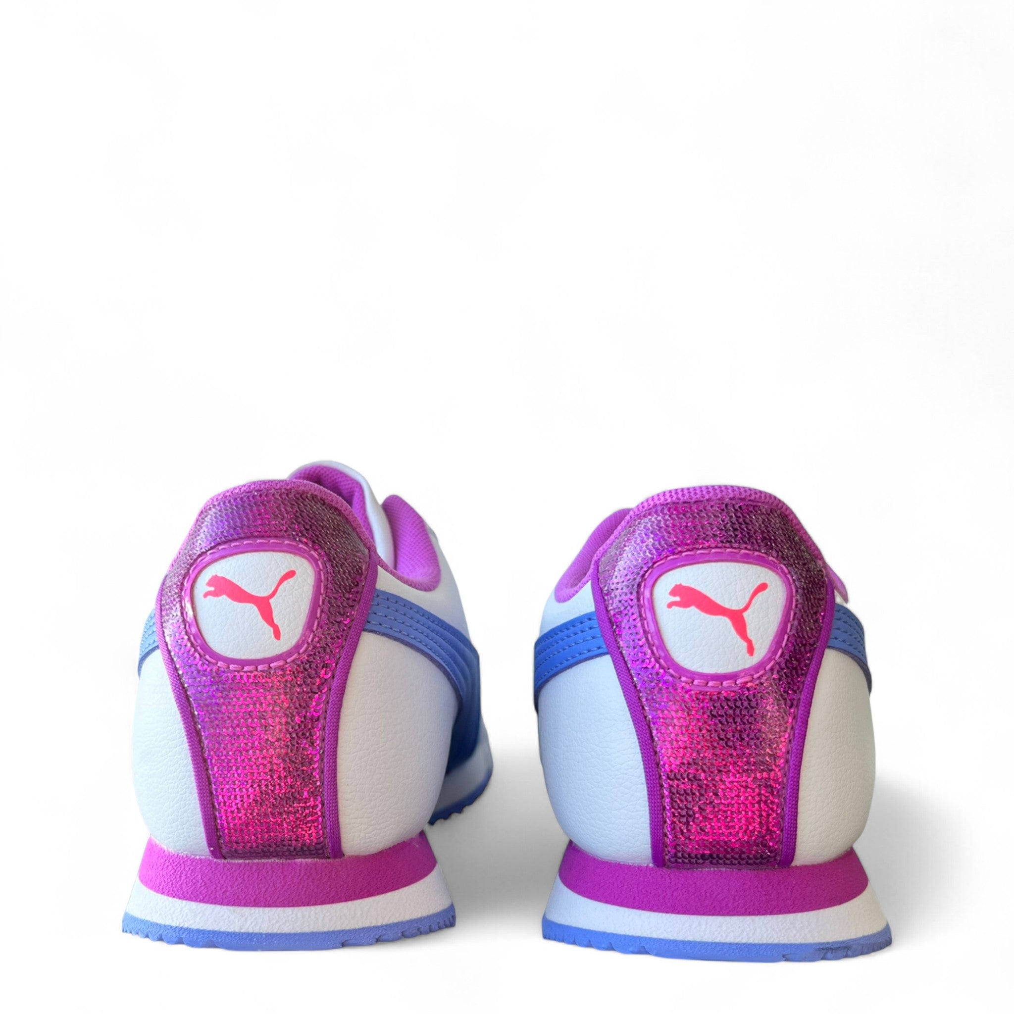 From the PUMA archives in 1968, this lightweight training shoe was equipped with comfort enhancing features such as a thick padded tongue and orthopedic arch supports. With a special glitter design, the Roma Glitz is sure to be every girl’s favorite shoe this season.