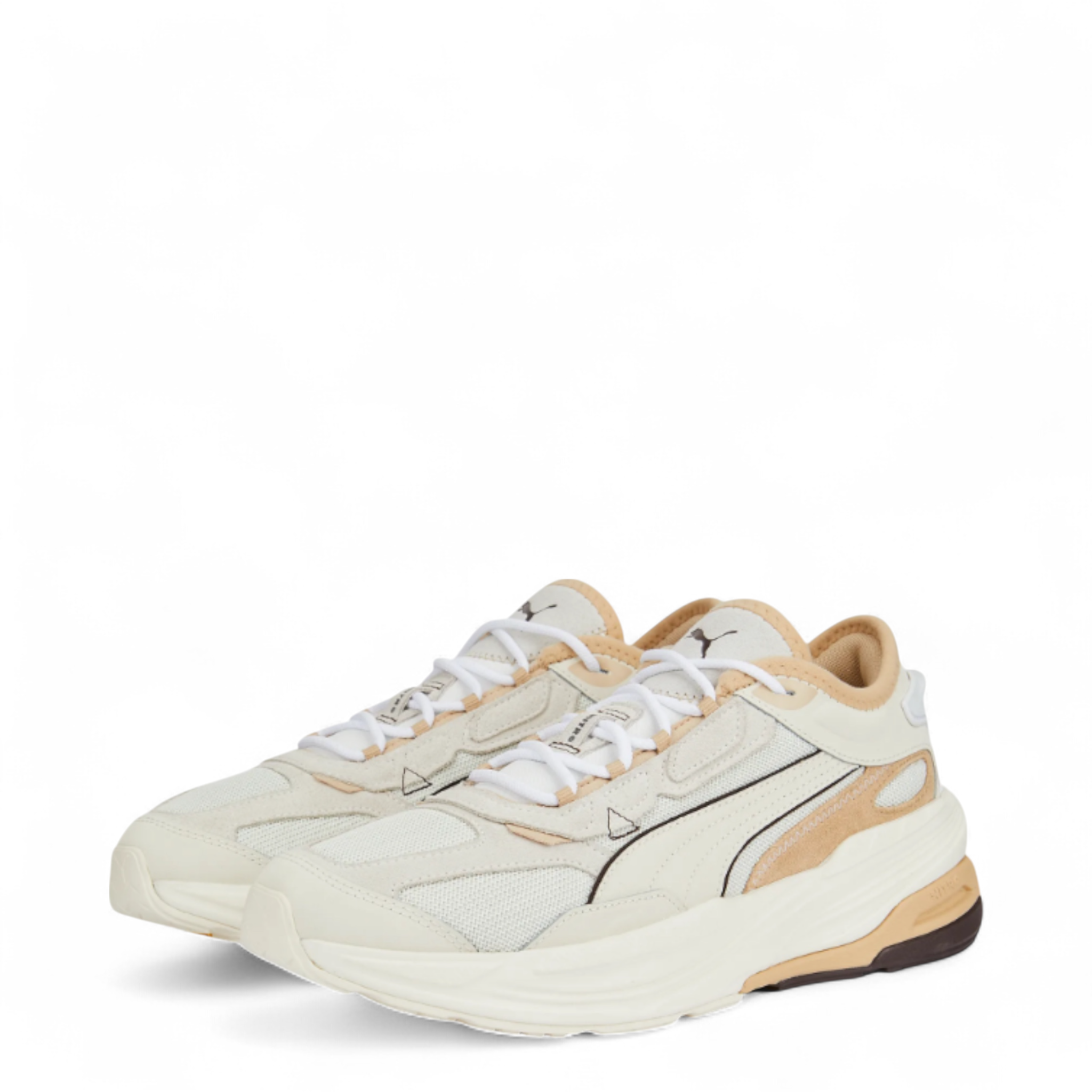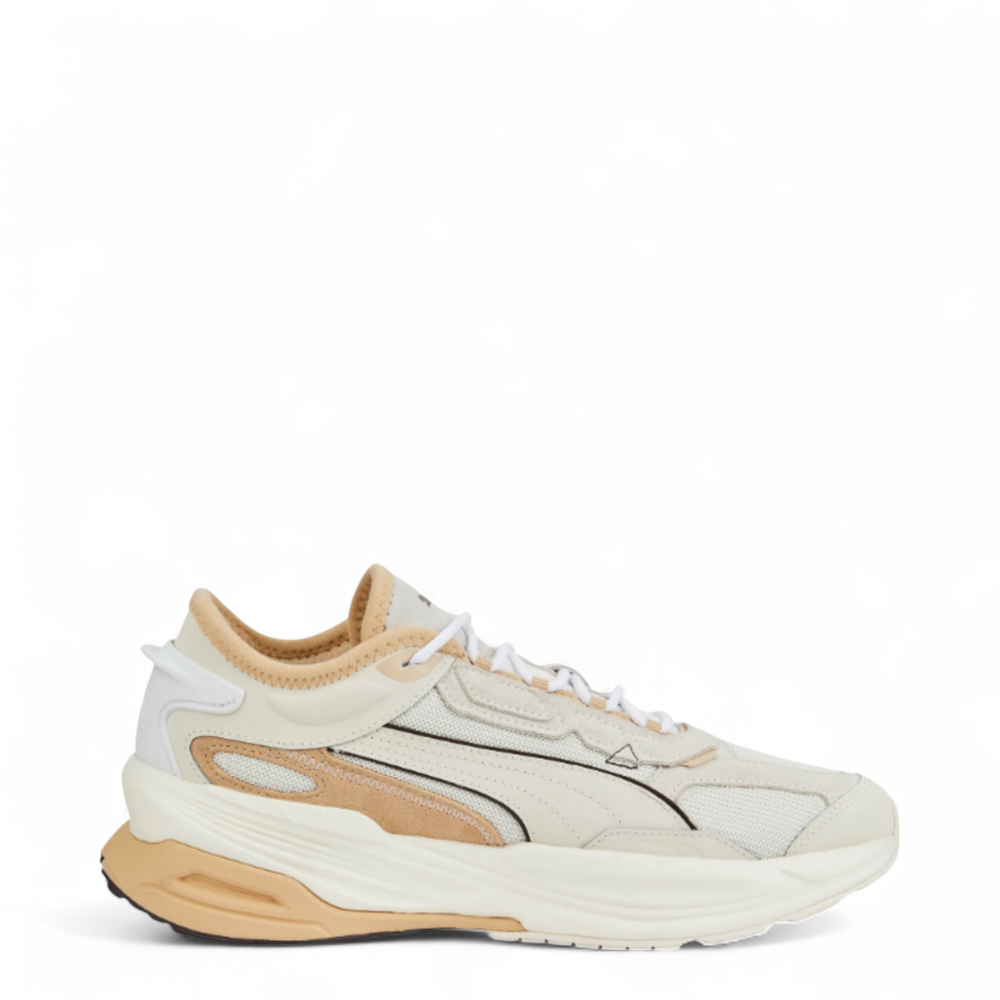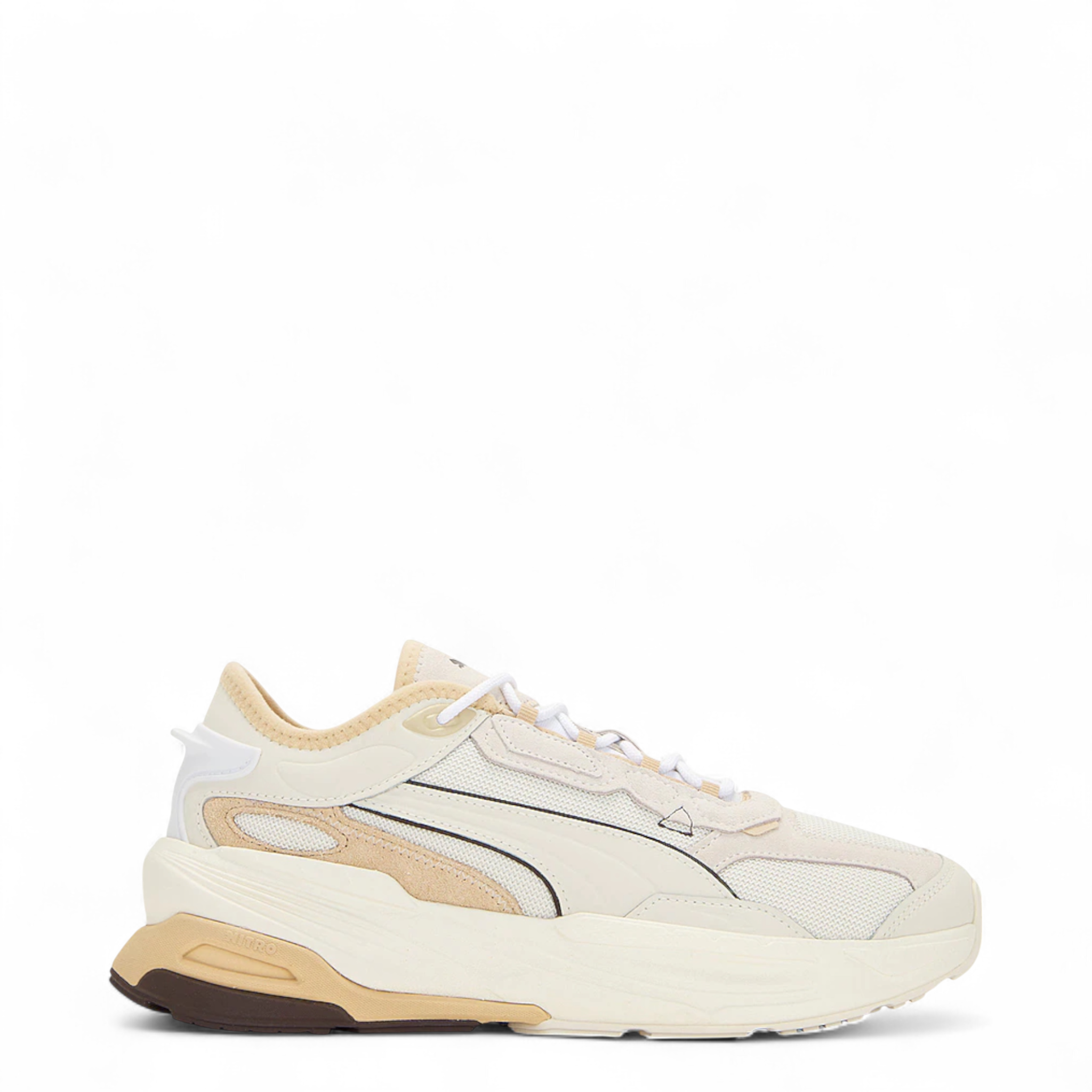 Puma's interpretation of where tech meets fashion and performance meets design, the Extent Nitro features a full-length, lightweight nitrogen-injected midsole that’s encapsulated by a heel stabilizing foam to create an aesthetical and technical balance. In the Heritage iteration, the mesh upper contains a mix of suede and textile nubuck overlays and is designed and constructed around the idea of caging, thanks to a hidden supporting structure that holds up the lightweight fabric.