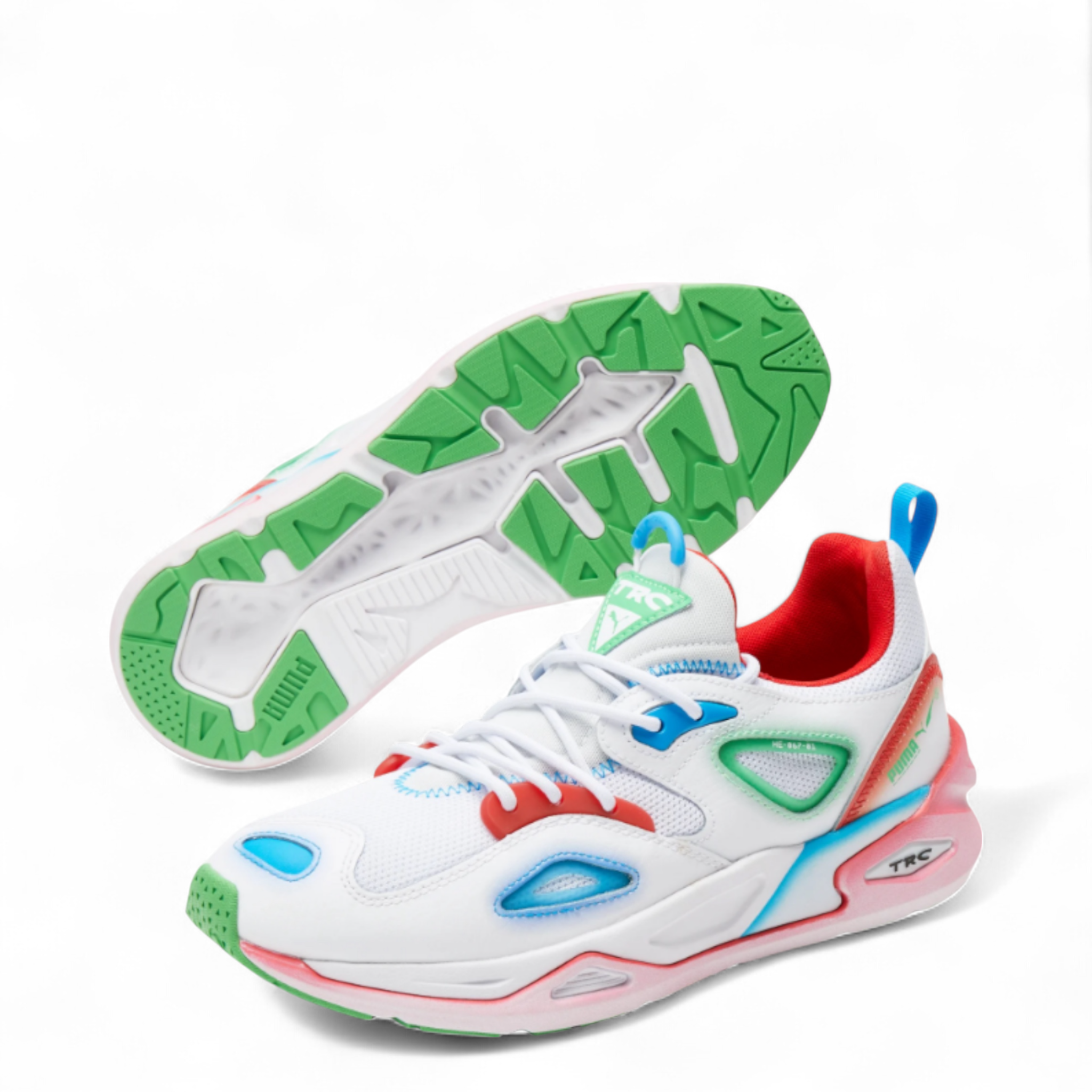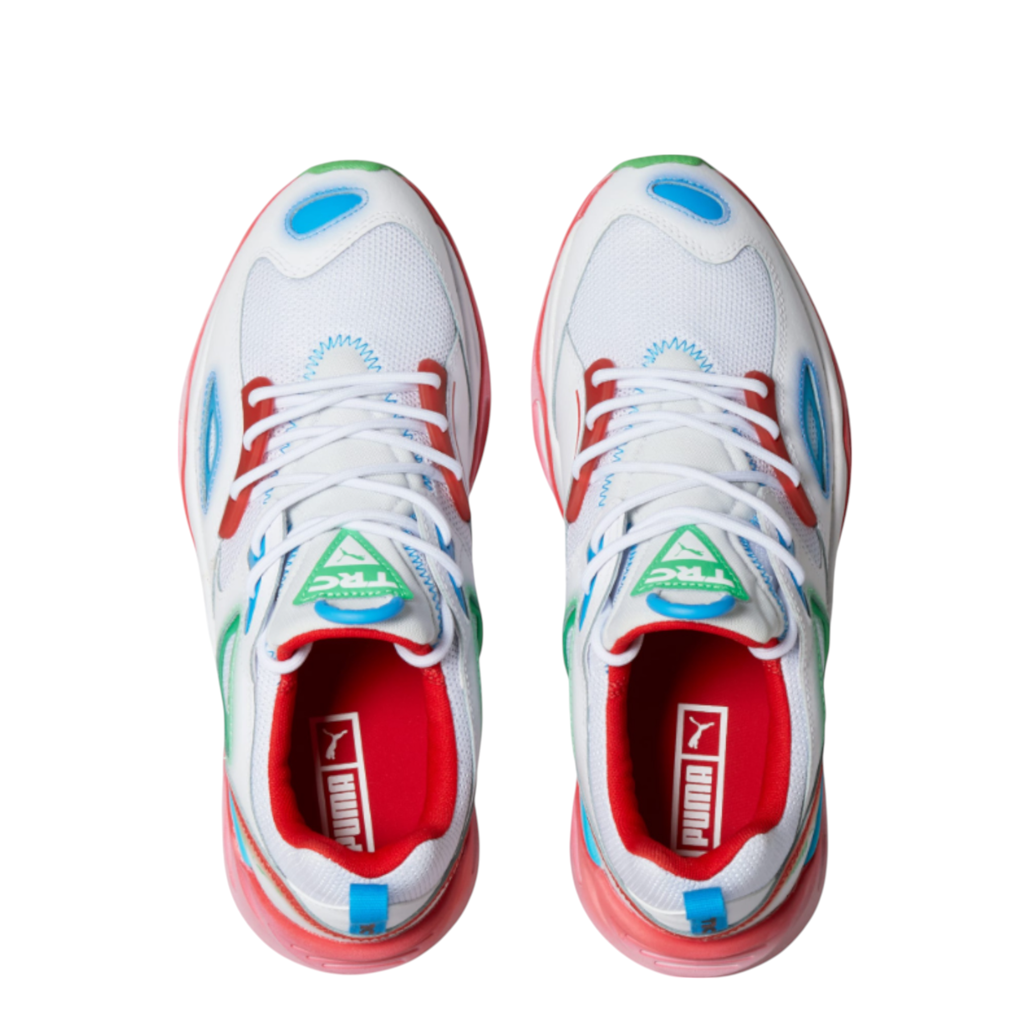 Back in the ‘90s, Trinomic brought a whole new angle to sneaker technology. In 2022, Puma introduces the TRC Blaze: a Futro take on Trinomic, inspired by the running models of the past. Neon takes inspiration from the spectrum of color that makes up phosphorescent lights. The color of neon glows in a reddish tone with hints of argon blue and krypton green.