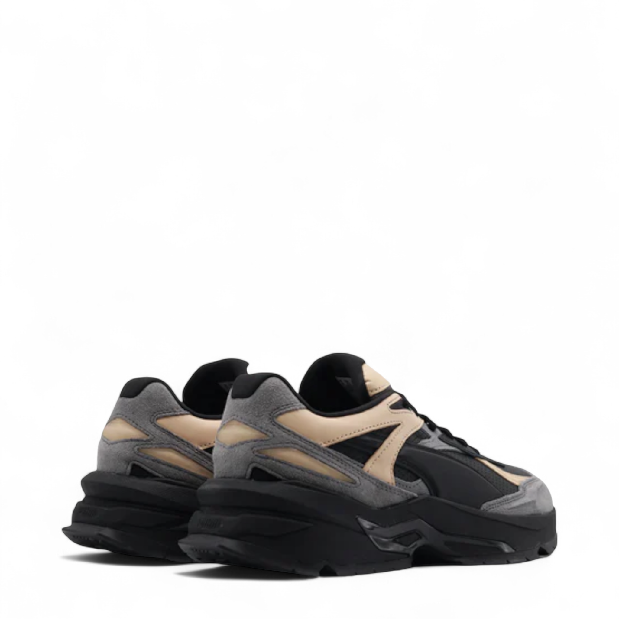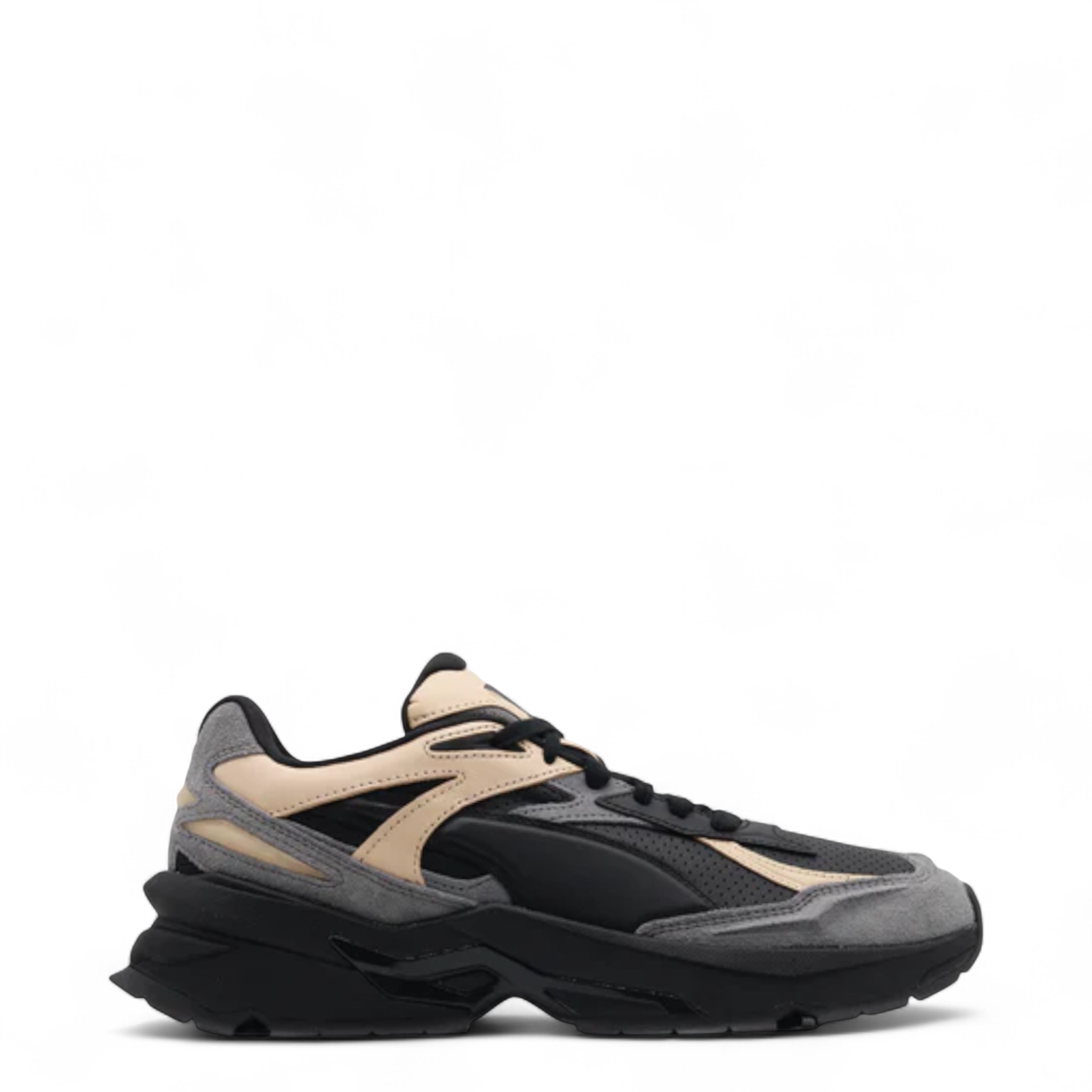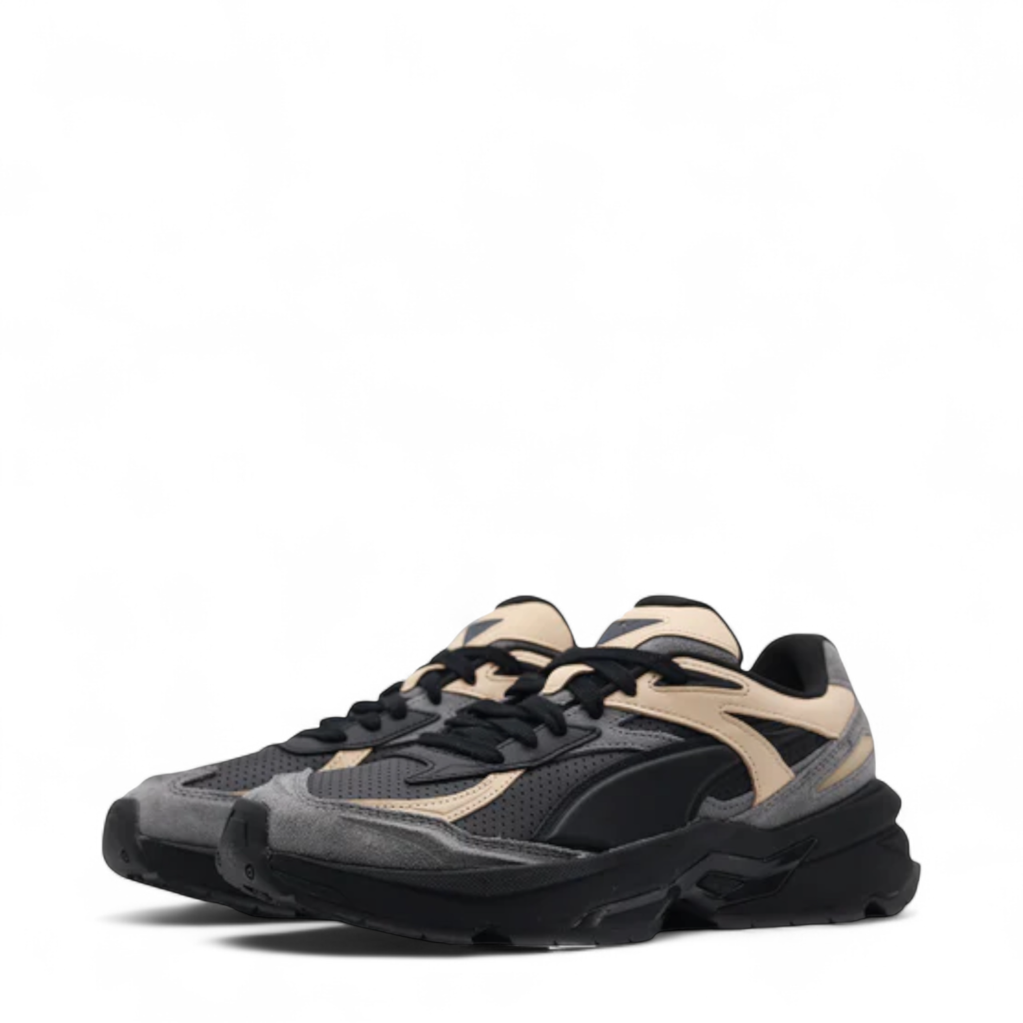 Retro sci-fi and technicality meets mobility with the Nano sneakers. Ushering in a new dimension to the PUMA lifestyle range with its sharp design language, this silhouette is inspired by the realm of '80s and '90s science fiction, notably through its razor-like overlays and a TPU piece infused on both sides of the tooling. In this rendition, the Nano Dunes, the execution features a synthetic upper with a perforated vamp and quarter panel as well as a TPU insert in the tooling with metallic hits on the upper.