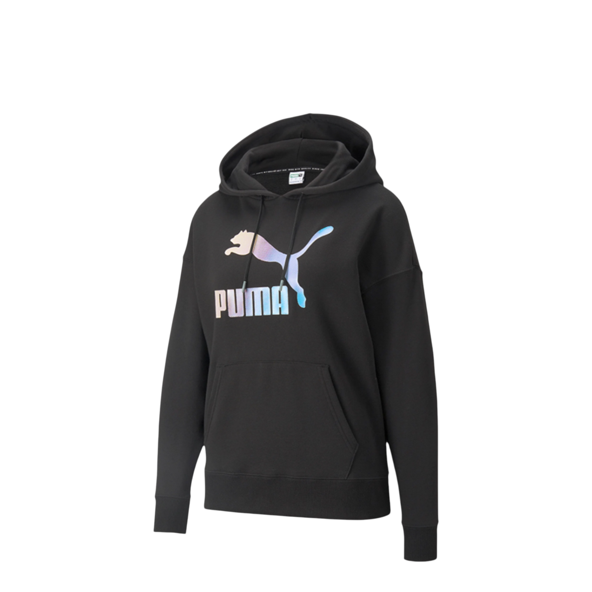 Experience a whole new wavelength in Puma's Crystal Galaxy collection, inspired by modern trends to deliver looks that are chill vibes only. Take style staples to the next level with our Crystal Galaxy Graphic Hoodie, a cozy PUMA classic amped-up with on-trend iridescent accents to deliver an iconic look updated for today.