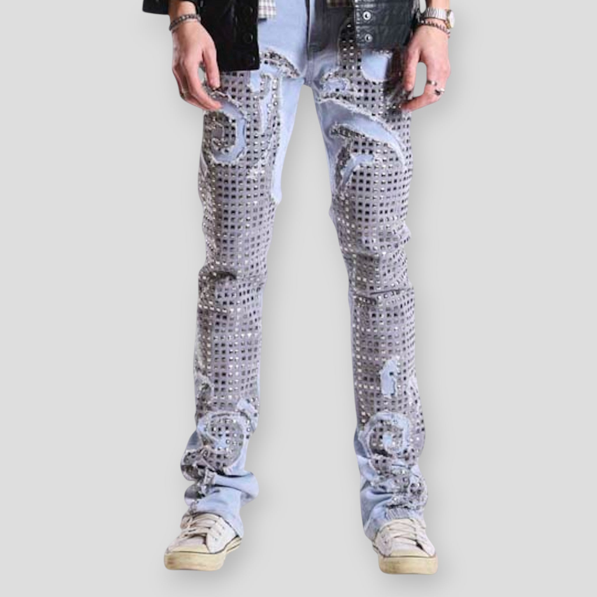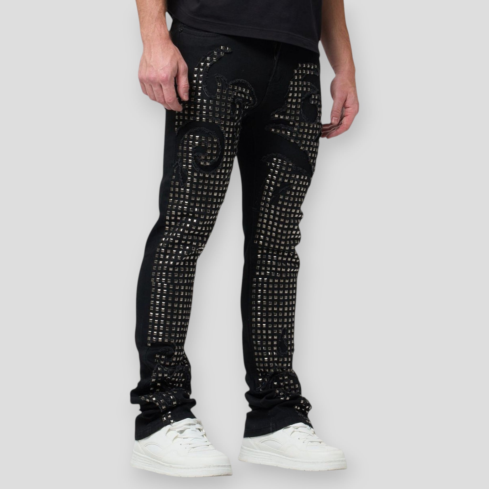 Hidden Treasures 'Gridwave Heritage' Studded Slim Stacked Fit Denim Jeans