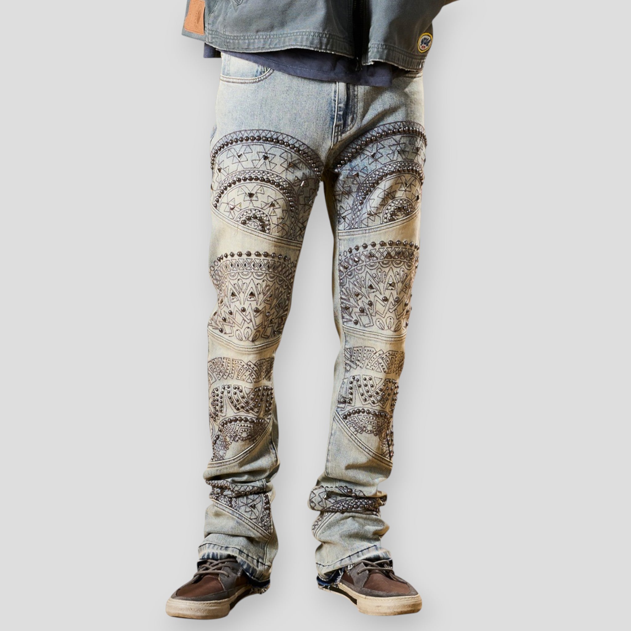 Hidden Treasures 'Native Heritage' Studded Slim Stacked Fit Denim Jeans