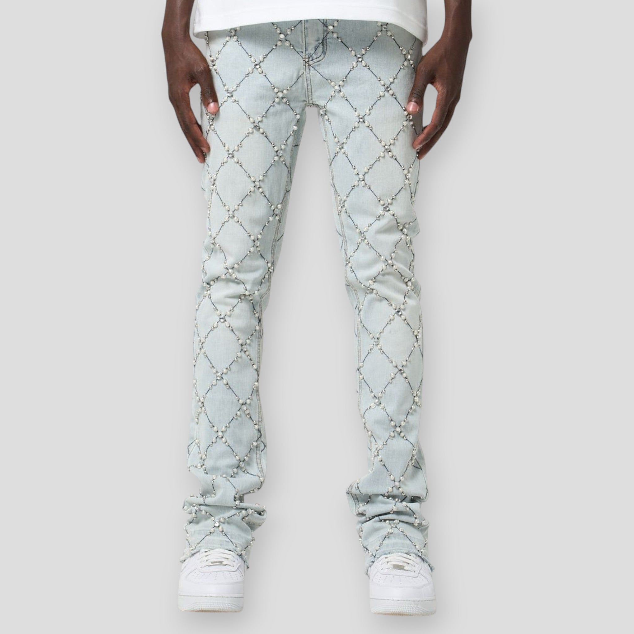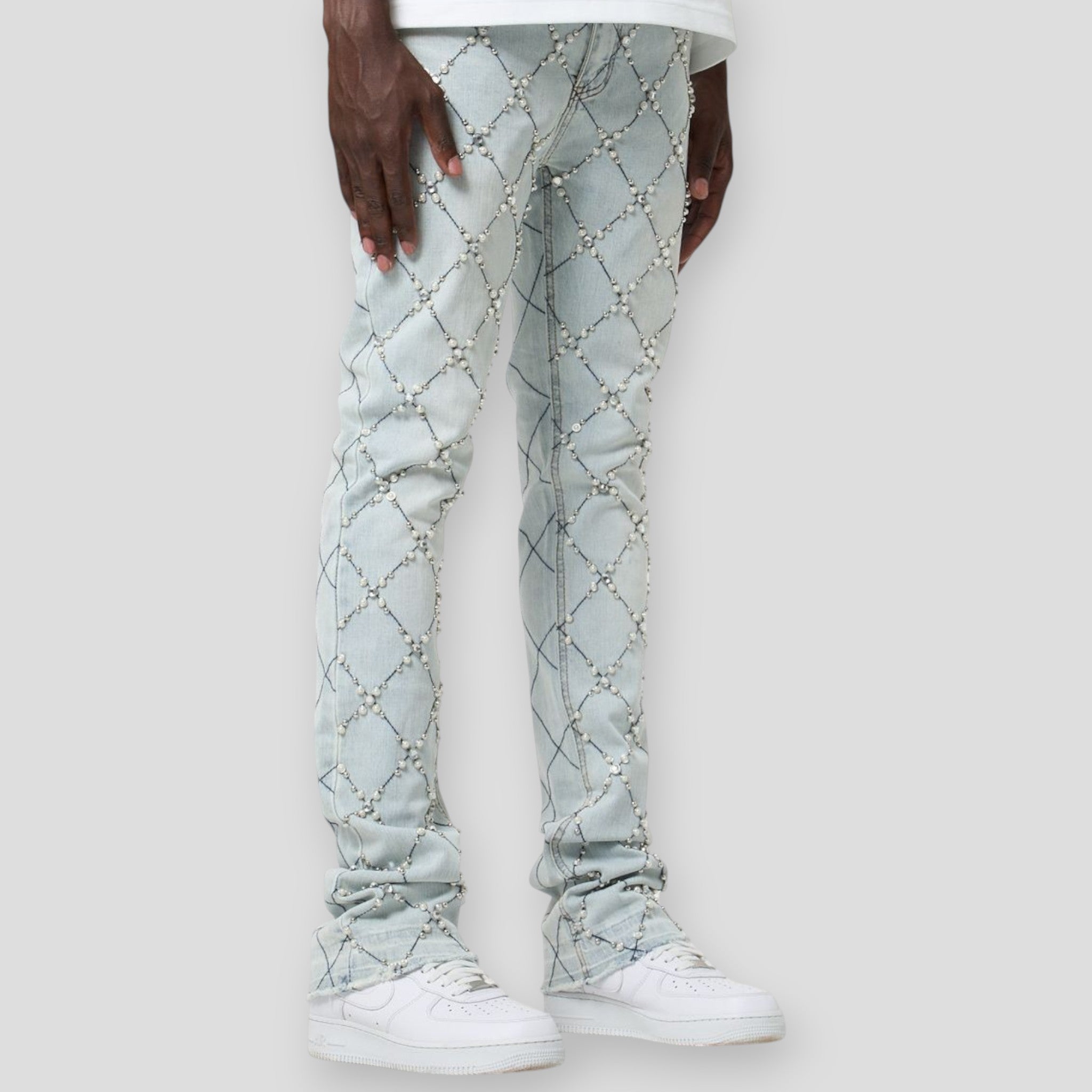 Hidden Treasures 'Diamonds & Pearls' Embellished Slim Stacked Fit Denim Jeans