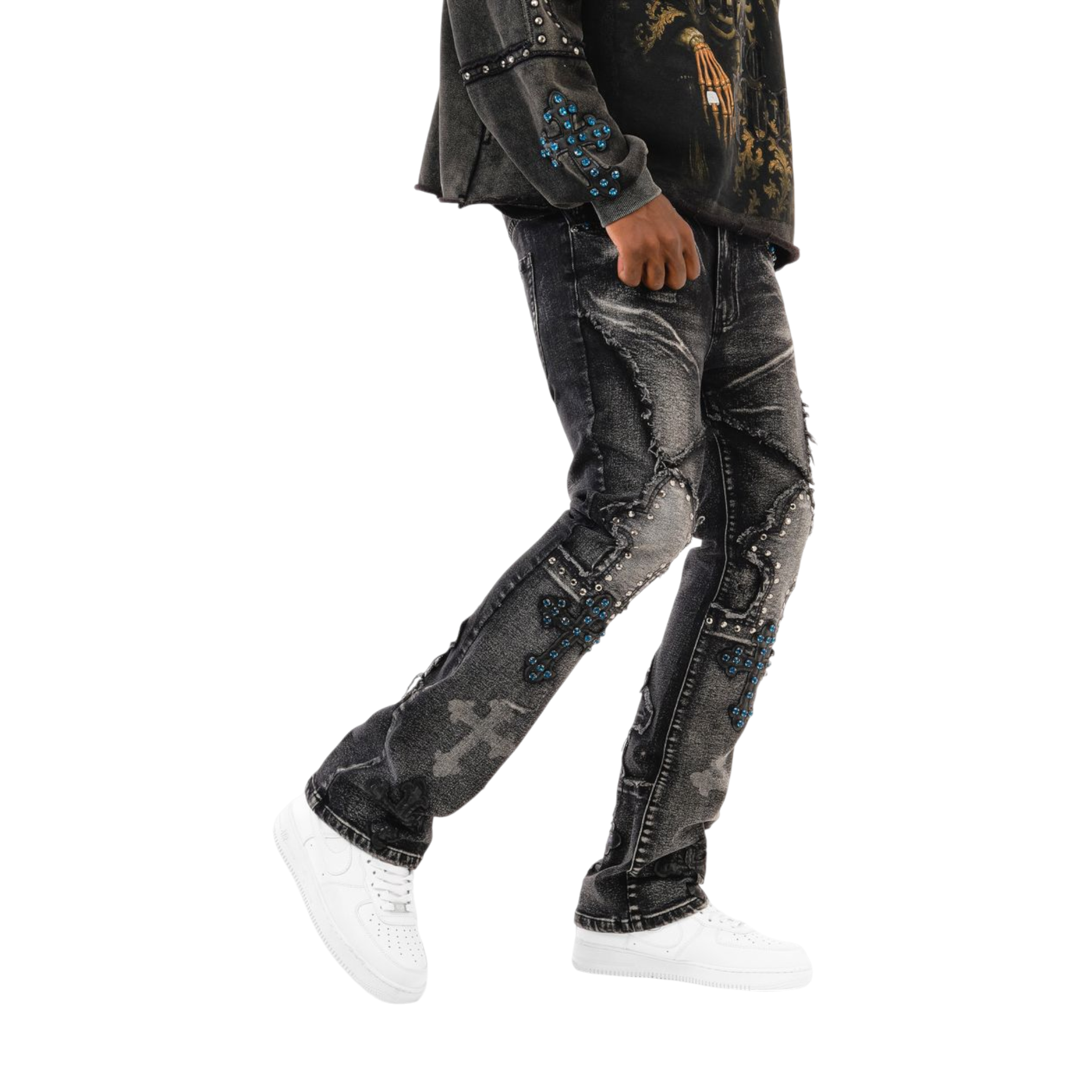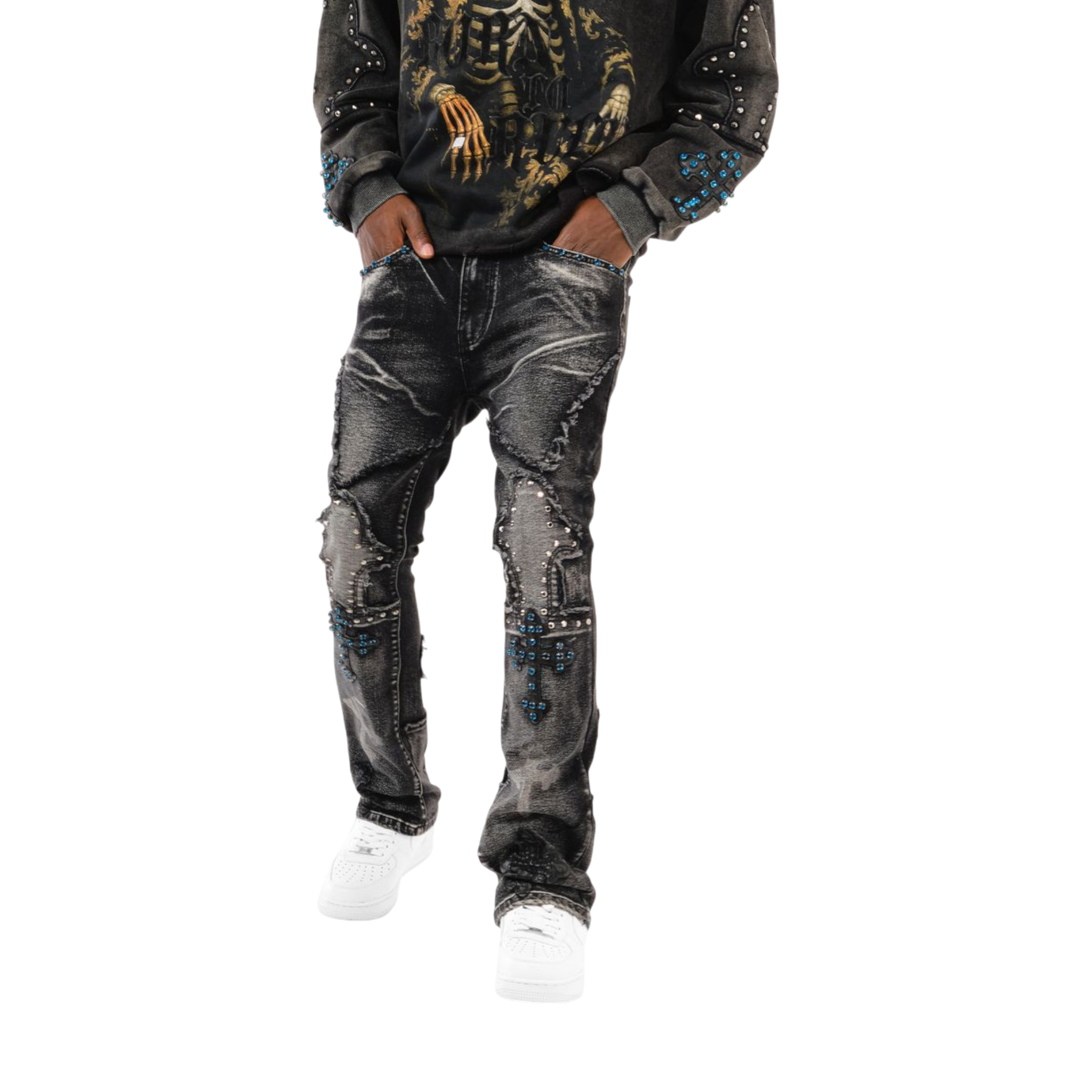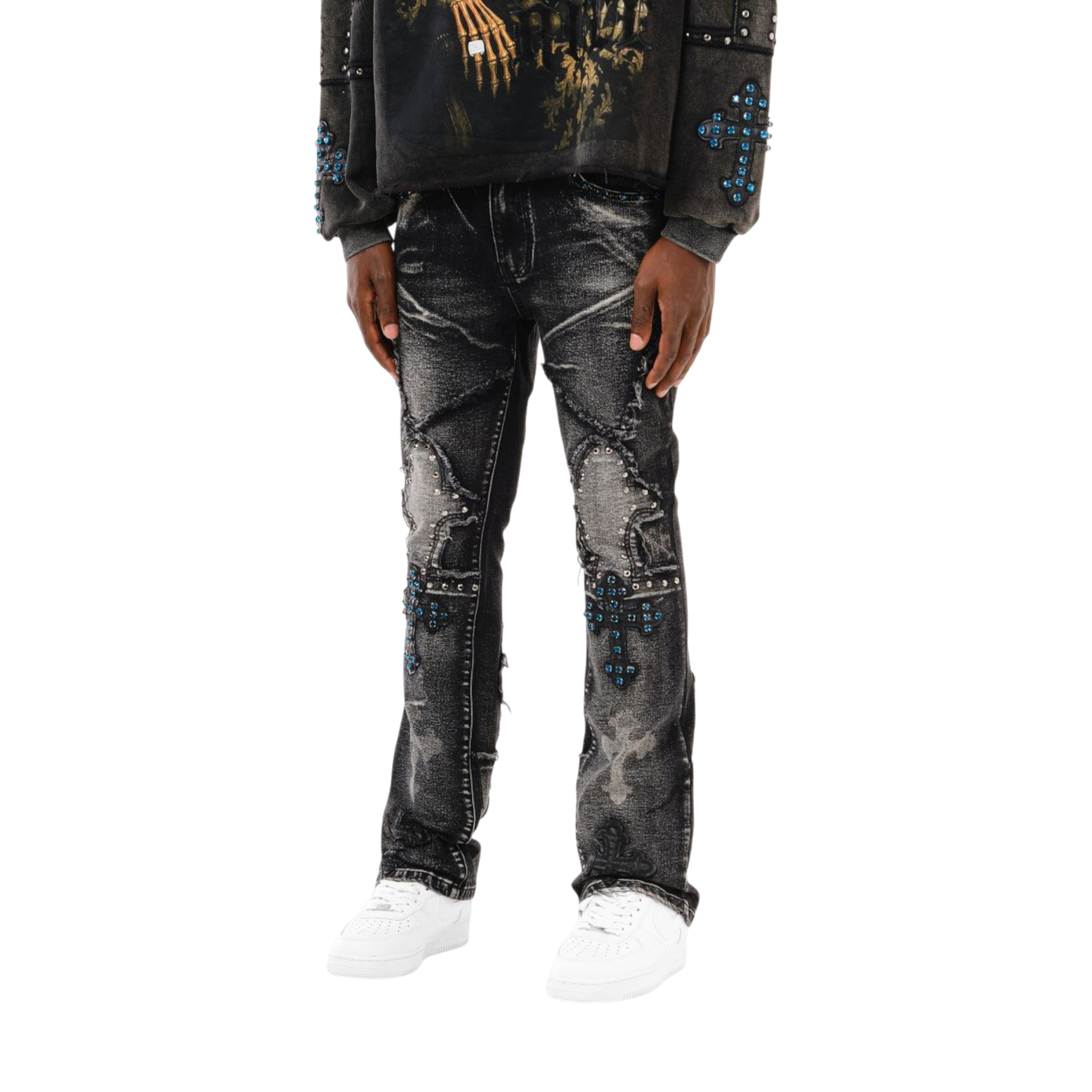 Hidden Treasures Rhinestone Embellished Stacked Flare Jeans
