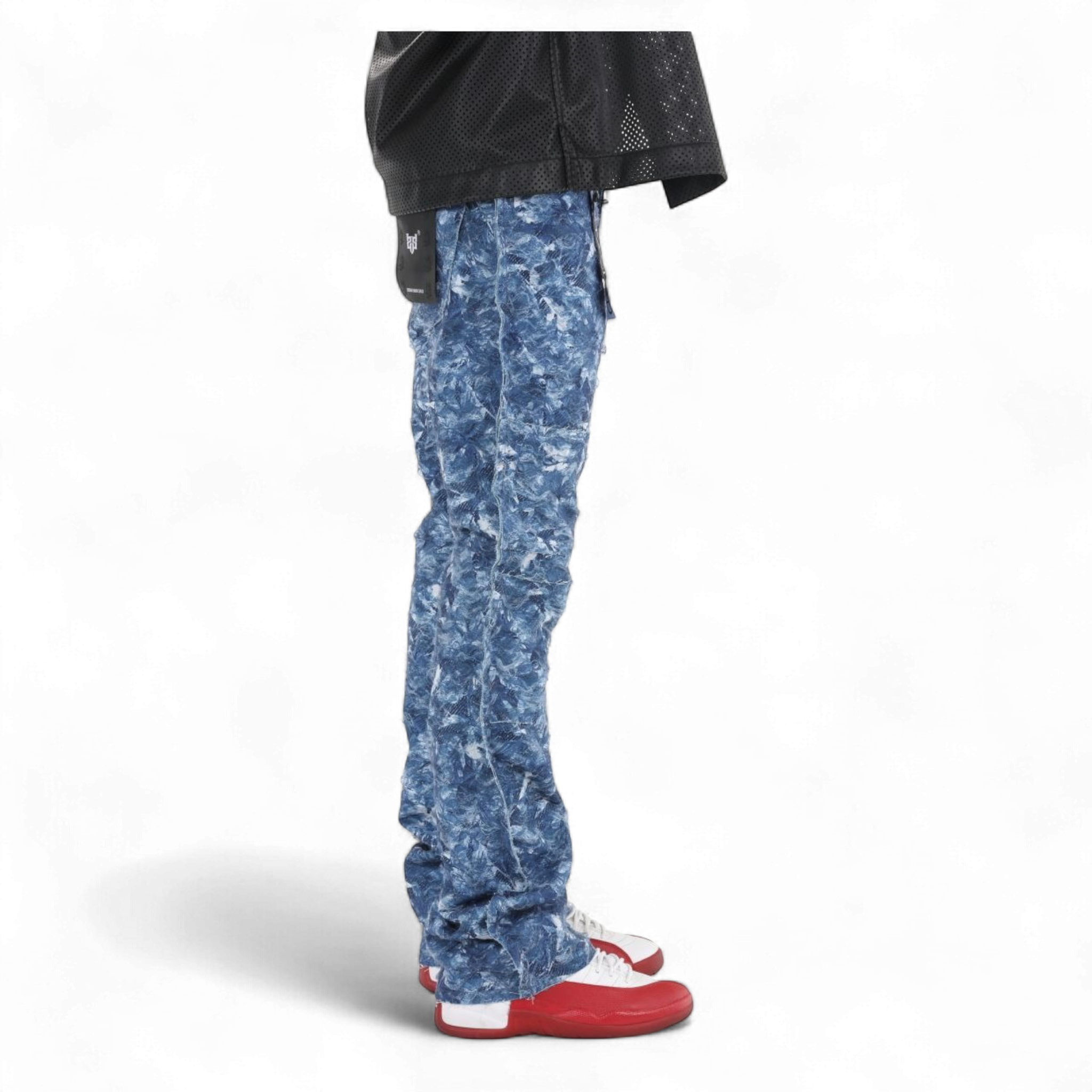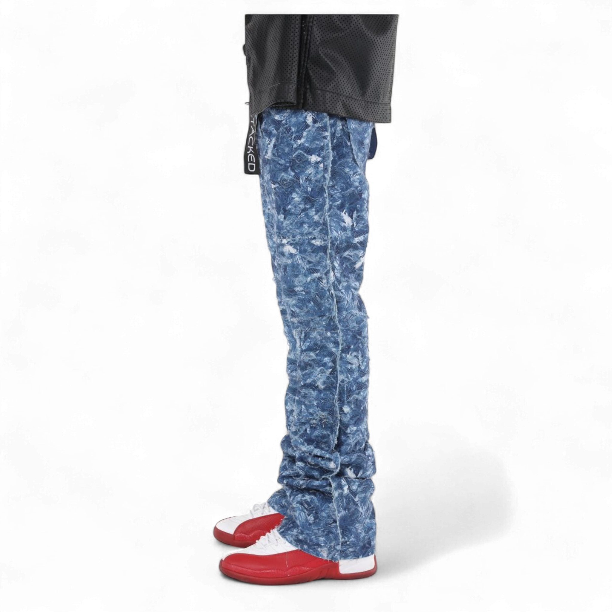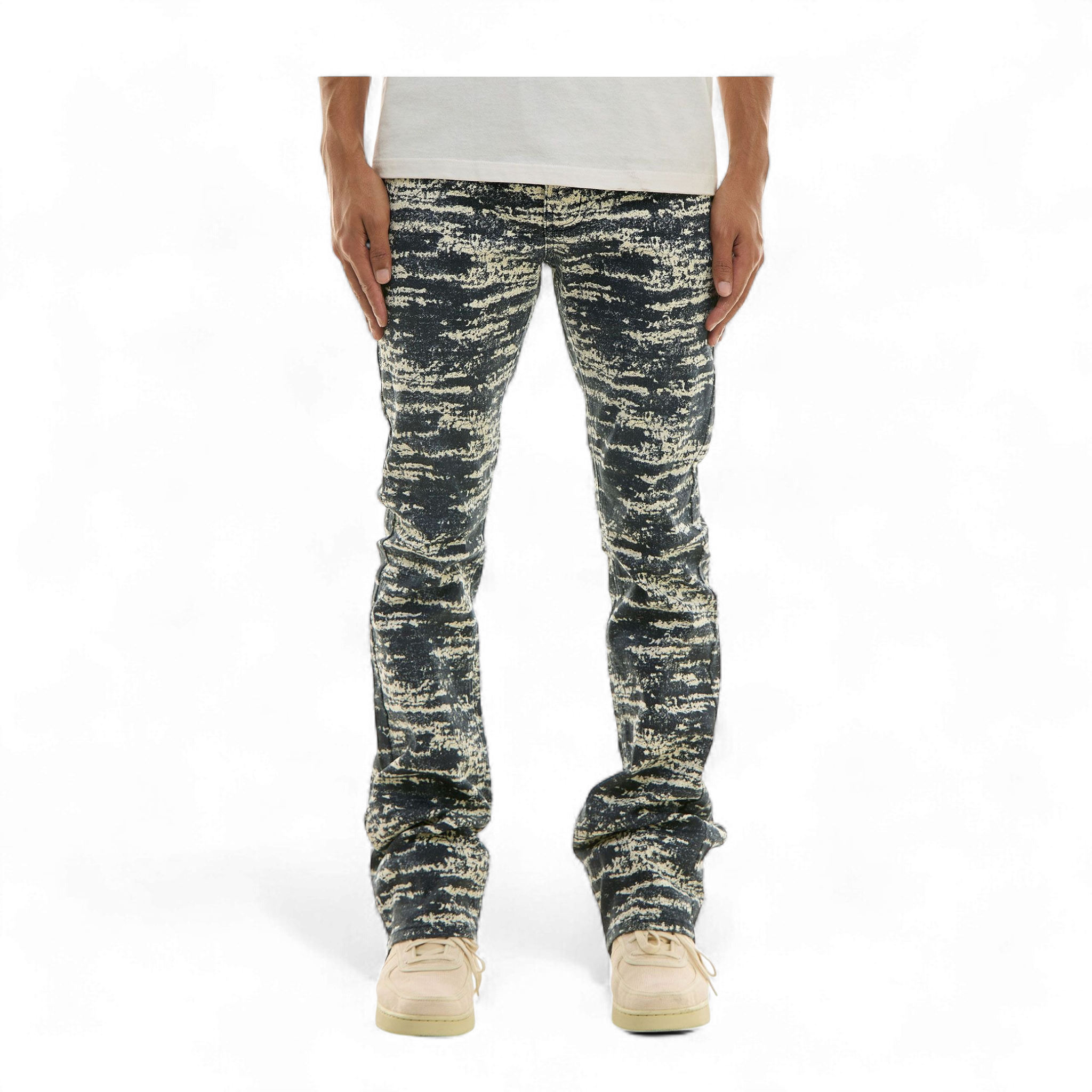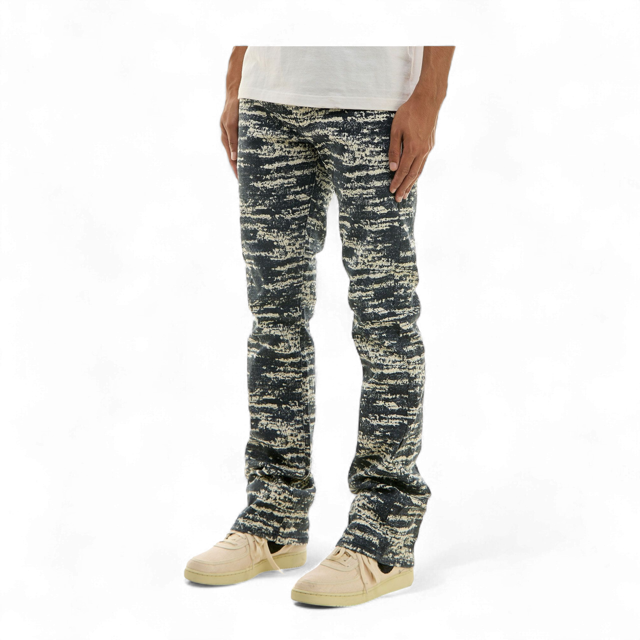 Hidden Treasures Distressed Abstract Stacked Skinny Flare Pants