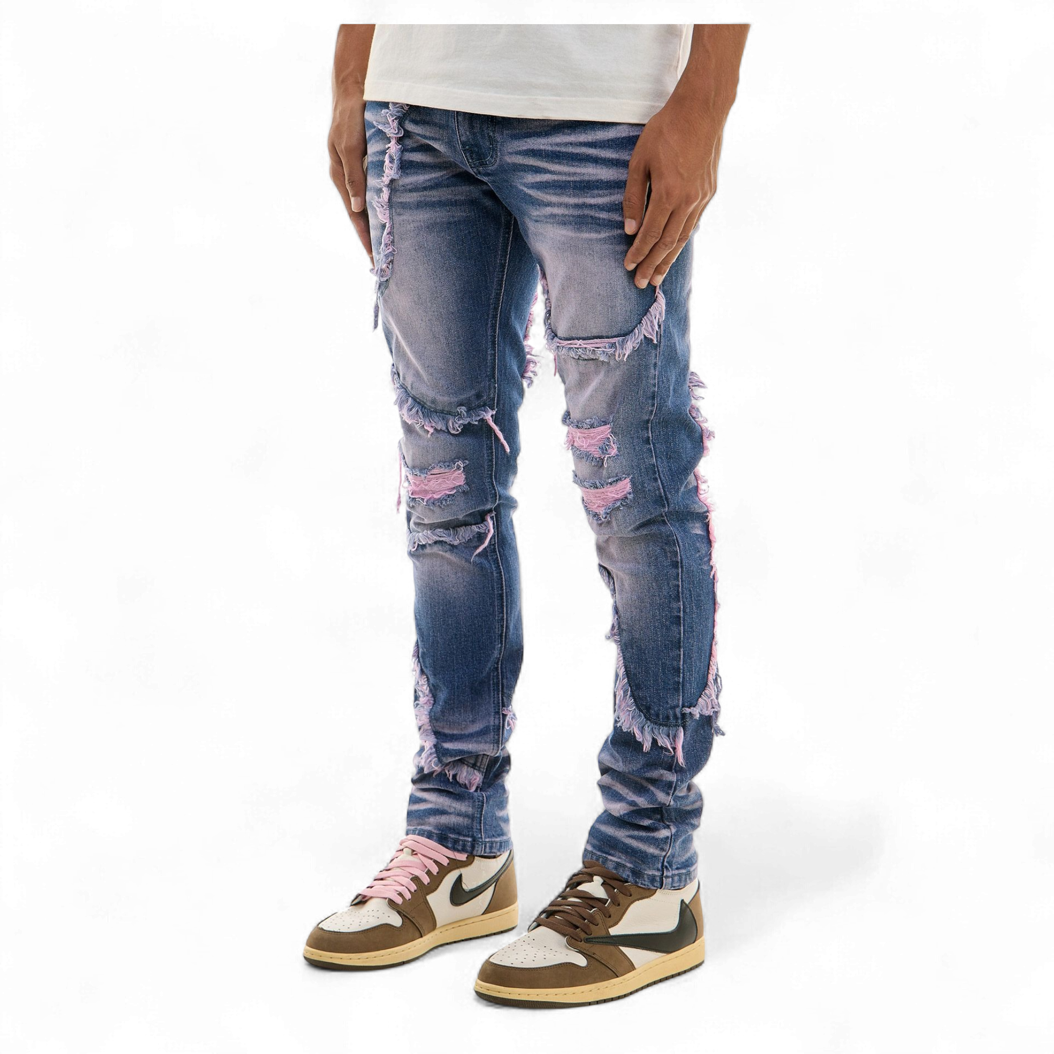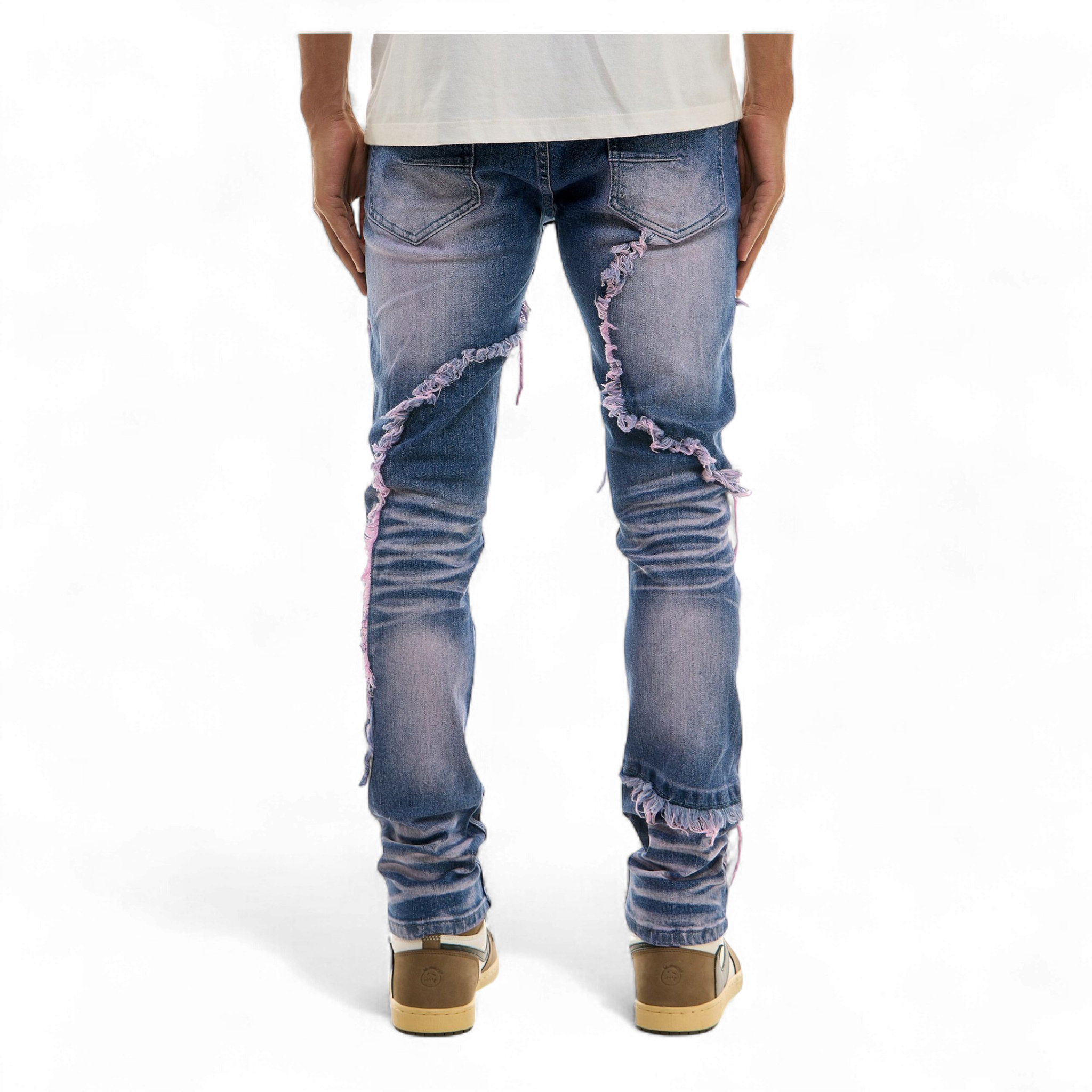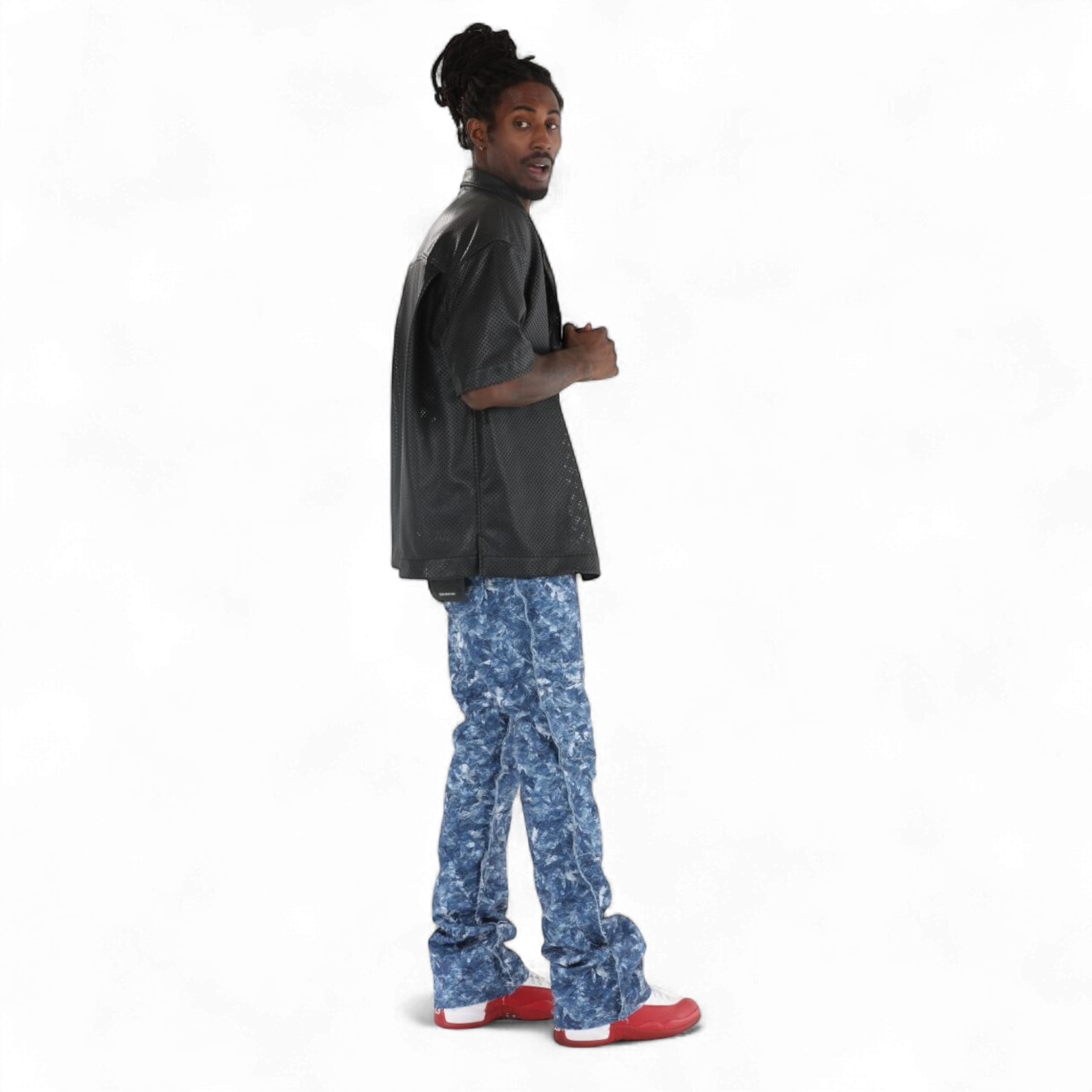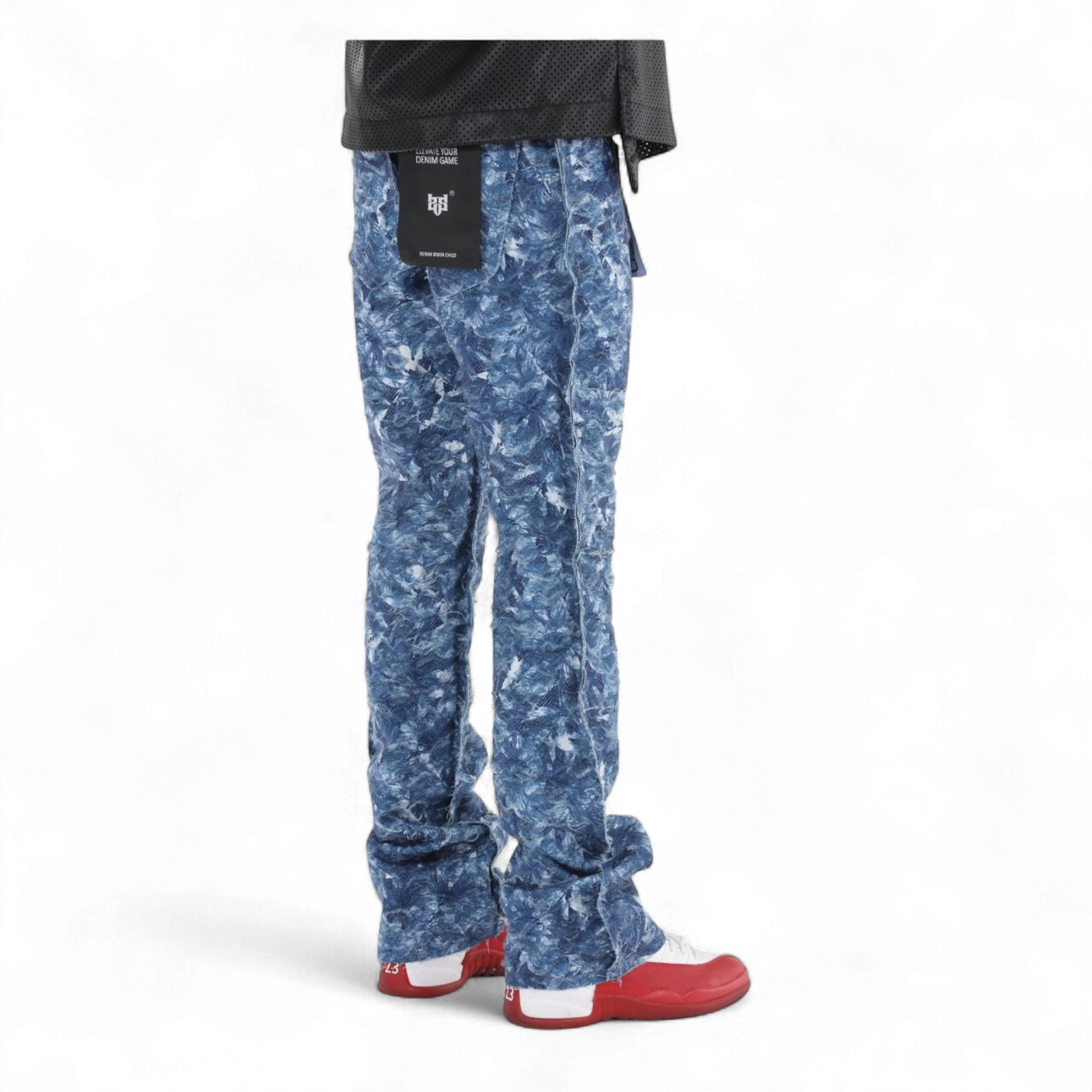Hidden Treasures Distressed Abstract Stacked Skinny Flare Pants