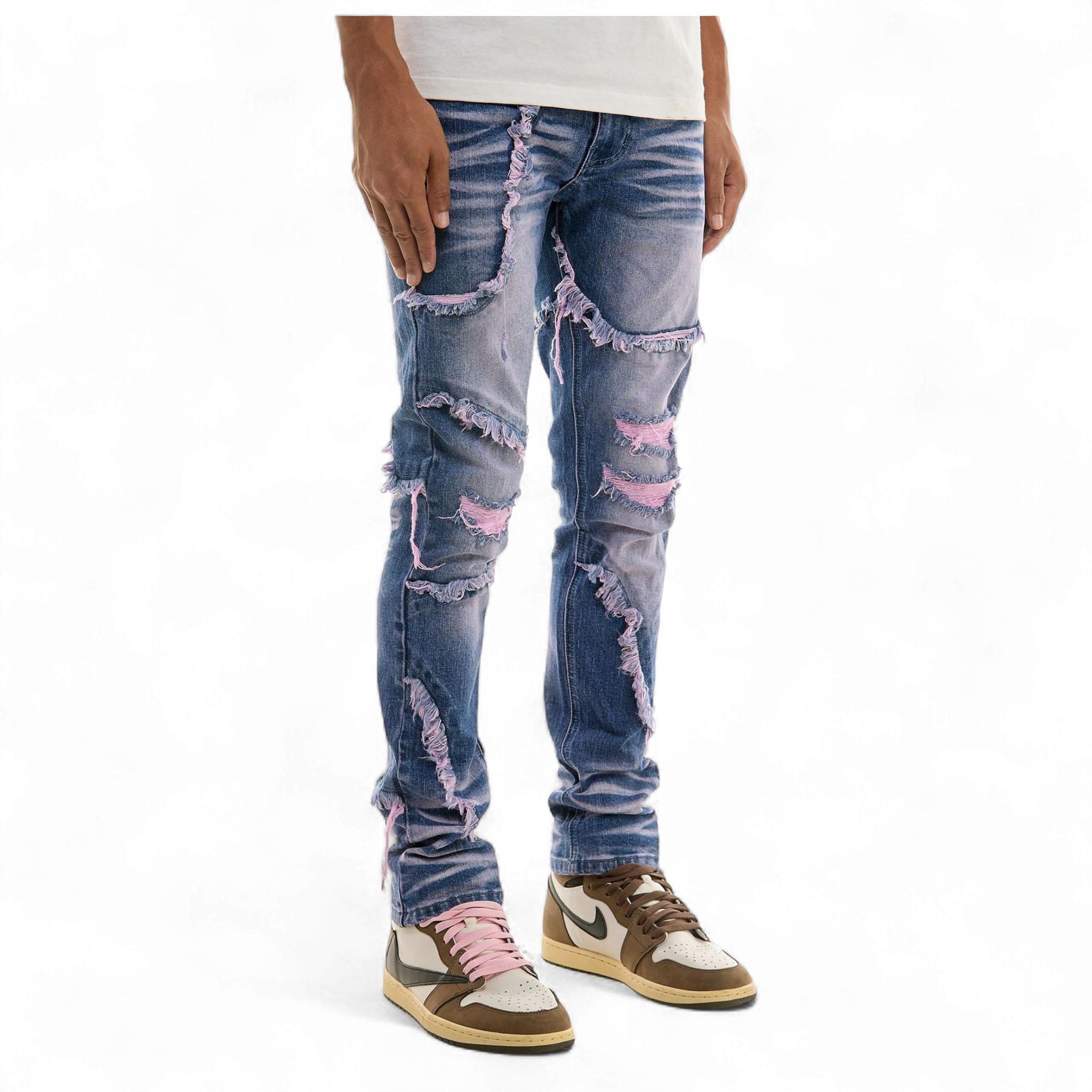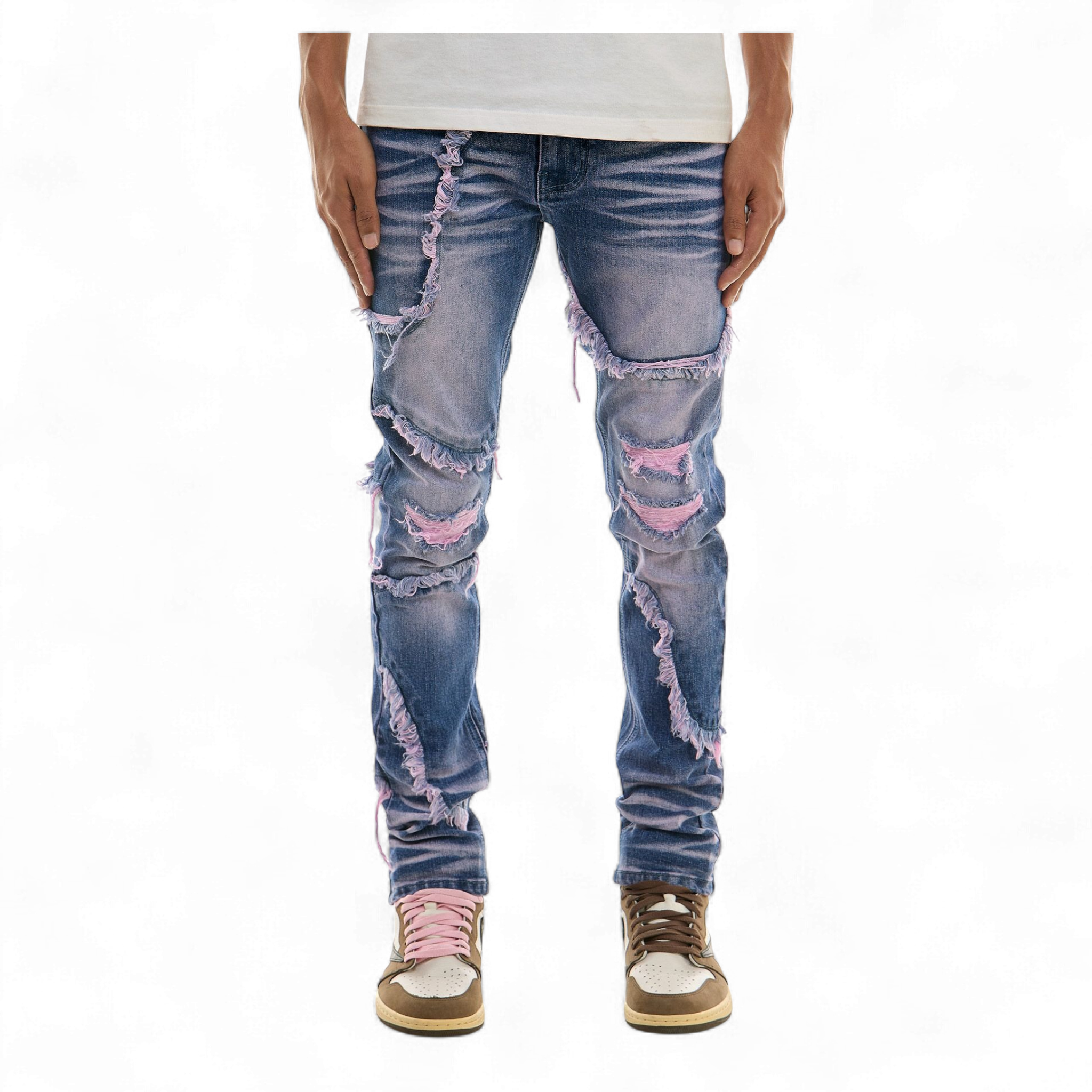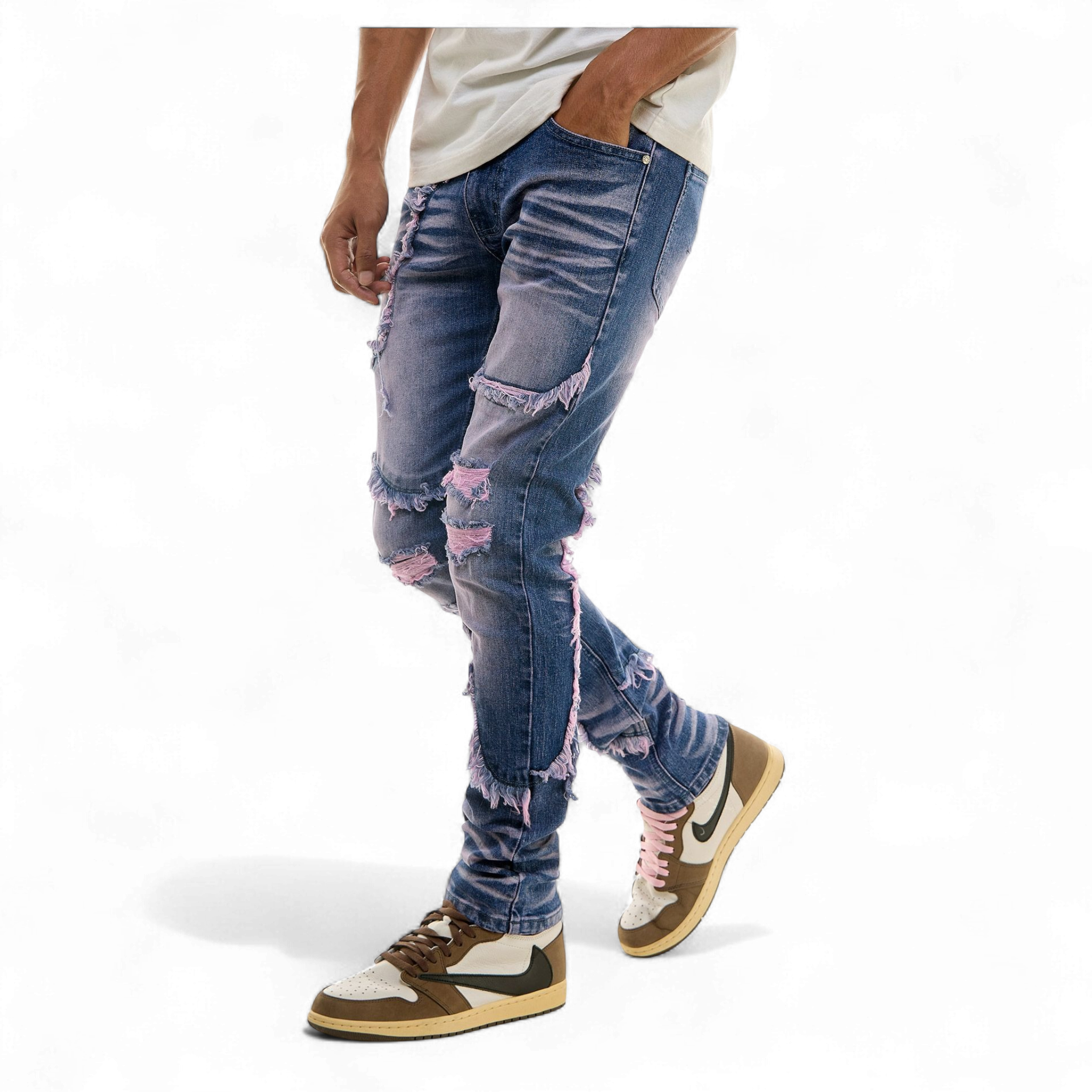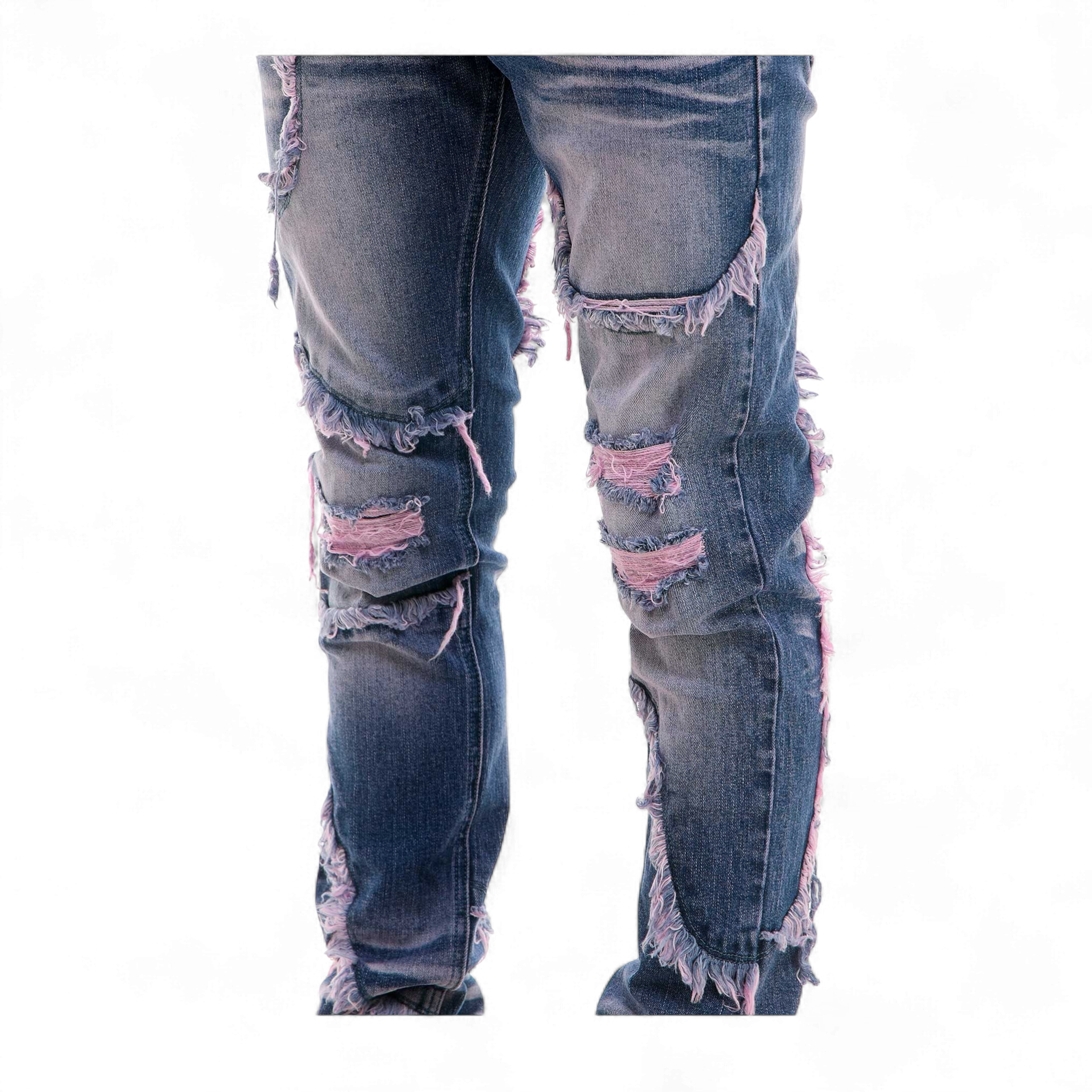 Hidden Treasures Distressed Abstract Stacked Skinny Flare Pants