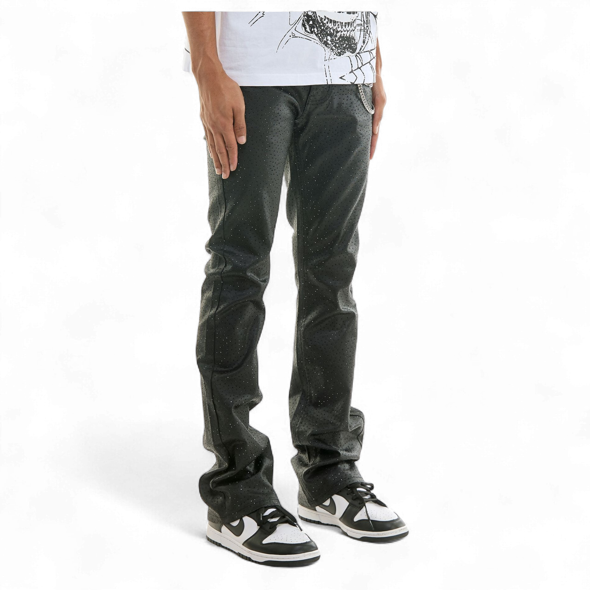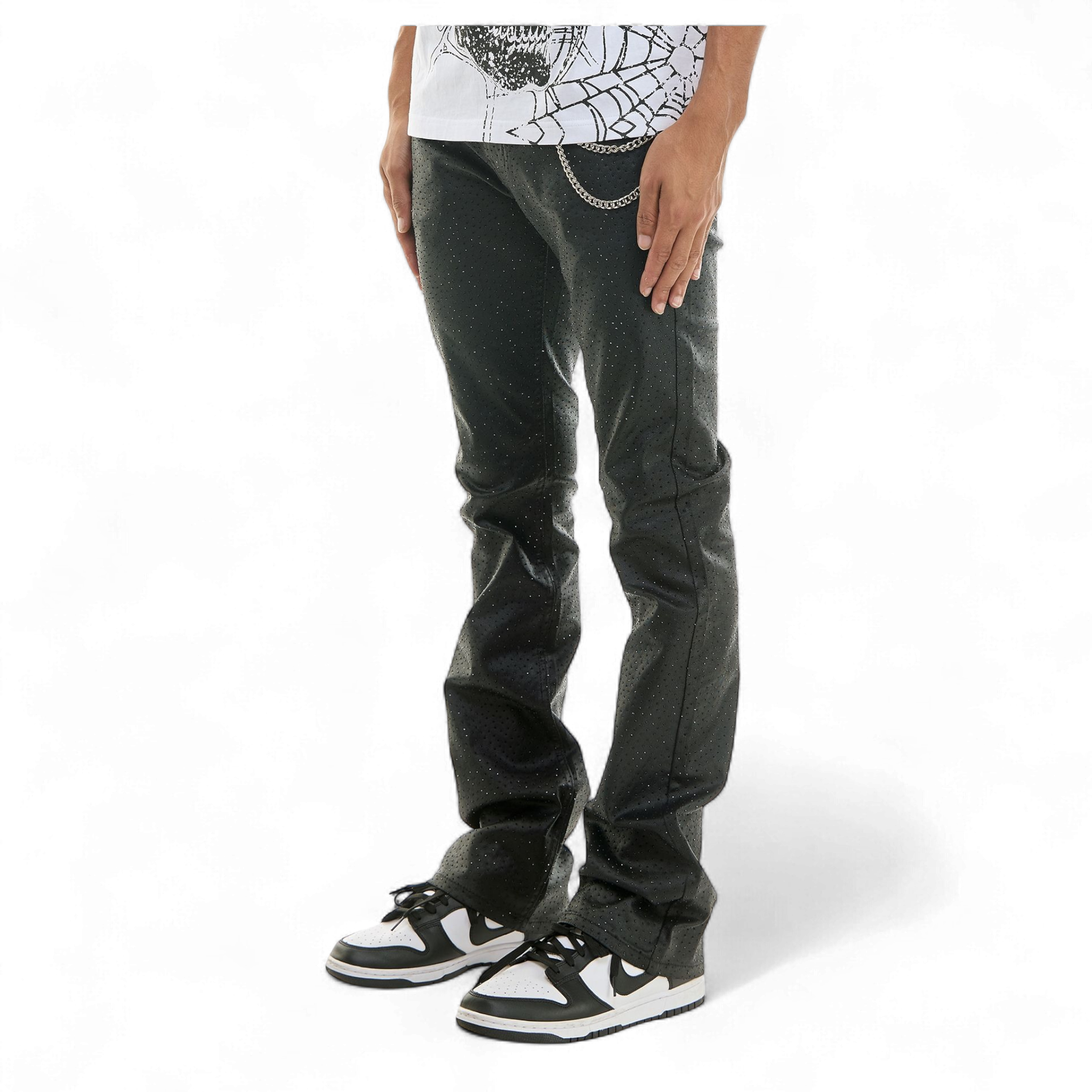 Hidden Treasures Waxed Embellished Stacked Skinny Flare Pants